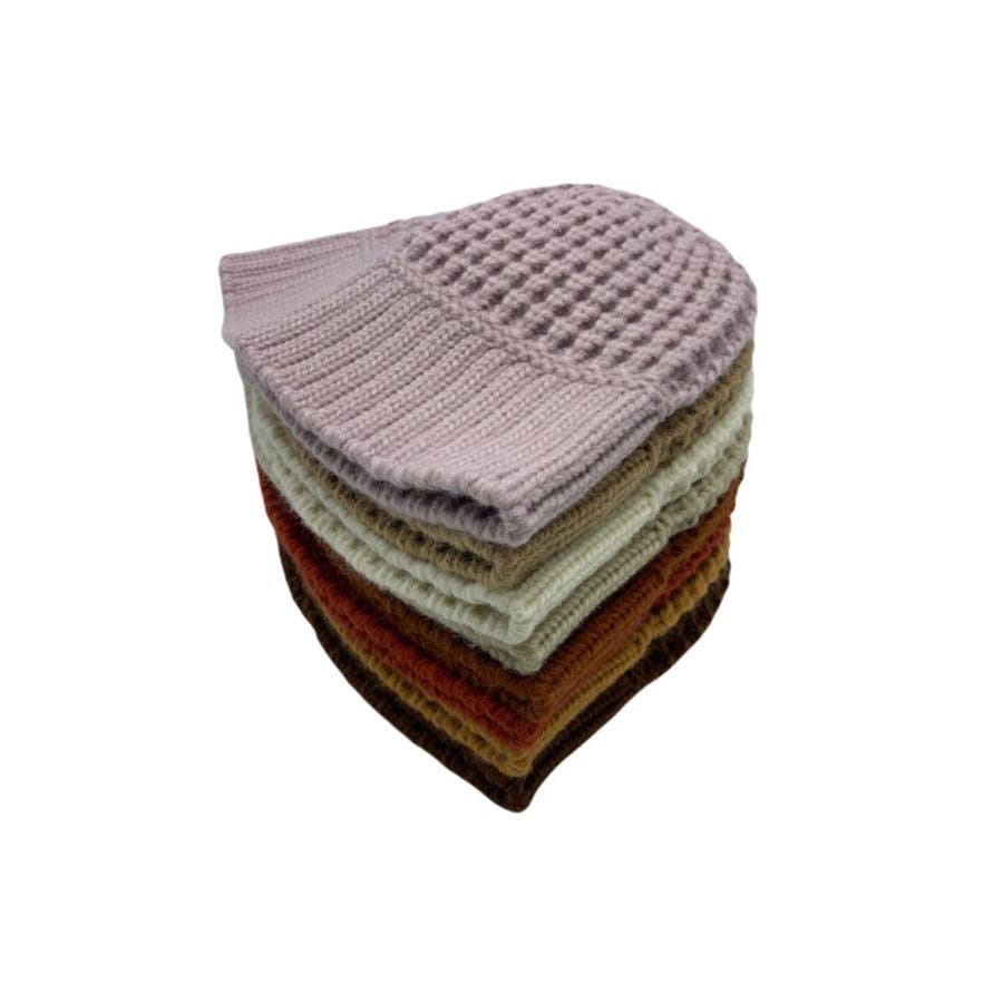 * 厚手の編み地で寒さを防ぎます。広めのつばが、冷たい風から顔や首を守りつつ、ファッションアイテムとしても魅力的◎