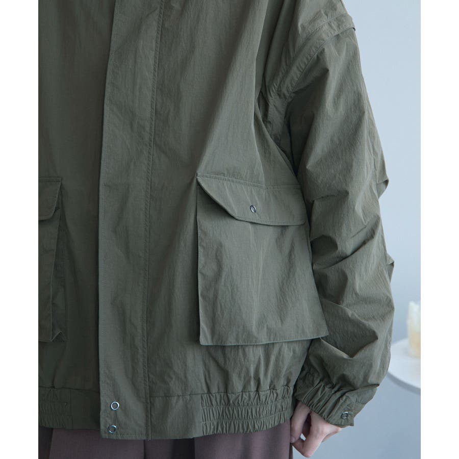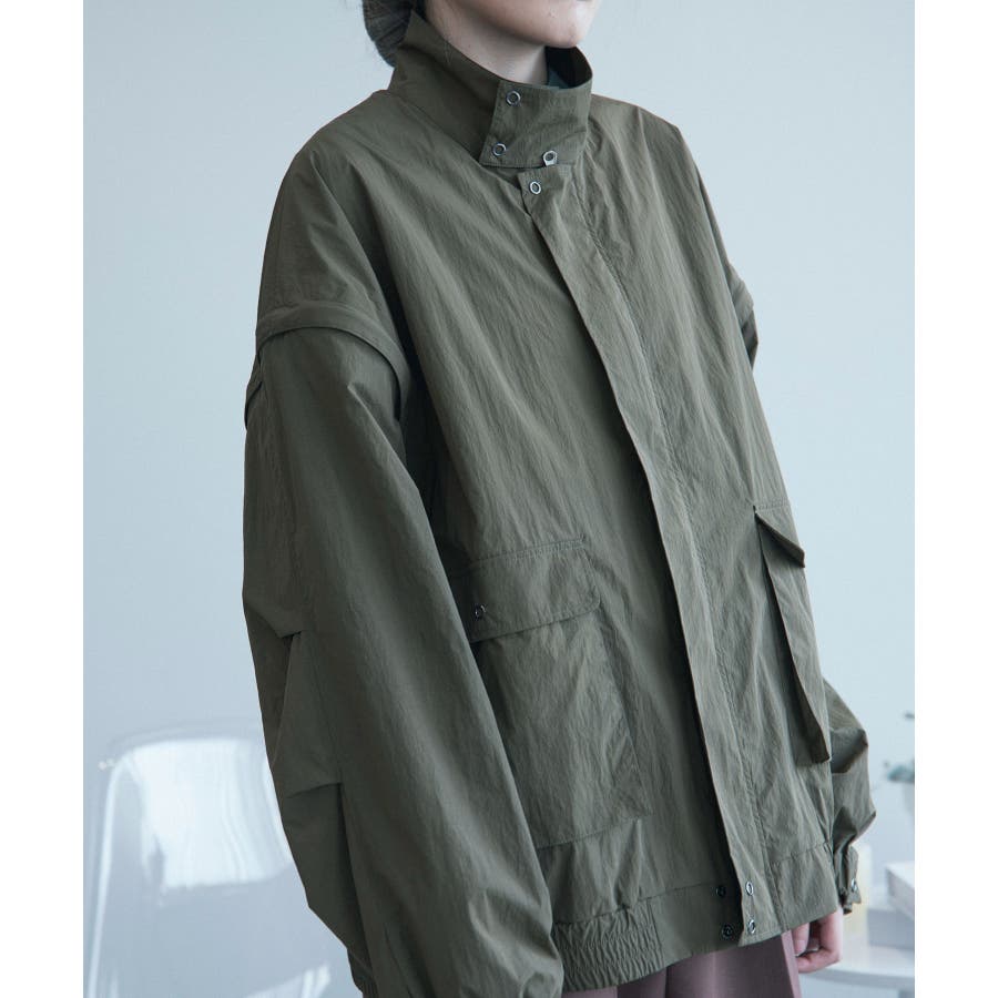 袖が取り外しできる2WAYブルゾンが登場!スタイリッシュな外観と多機能性を兼ね備えたアウターウェアです。スタンドカラーのクラシックな外観と、着脱可能な袖のデザインが特徴で、さまざまなシーンに合わせて着用できます。高品質のナイロン生地で作られており、風や寒さに強く、軽量で快適な着心地です。薄手のデザインで、春から秋までの多くの季節で活用できます。袖の着脱により、季節の変化に対応。