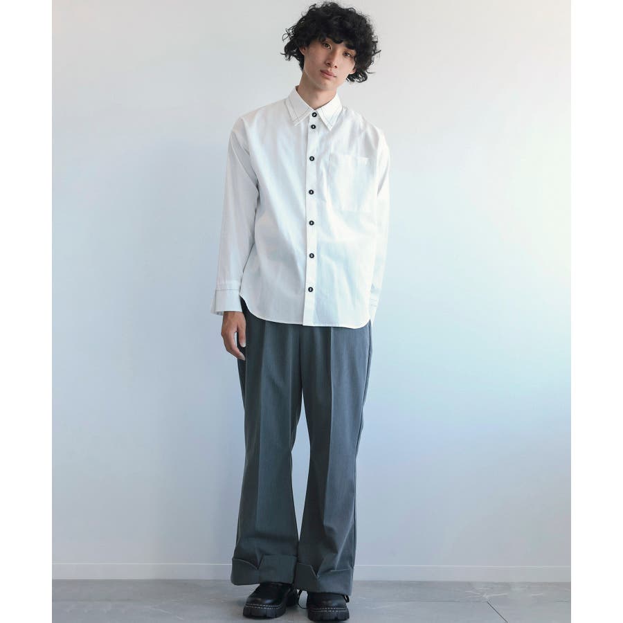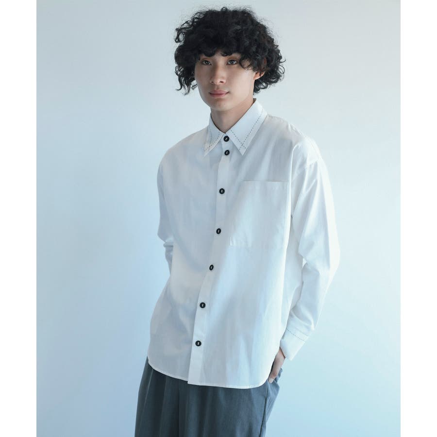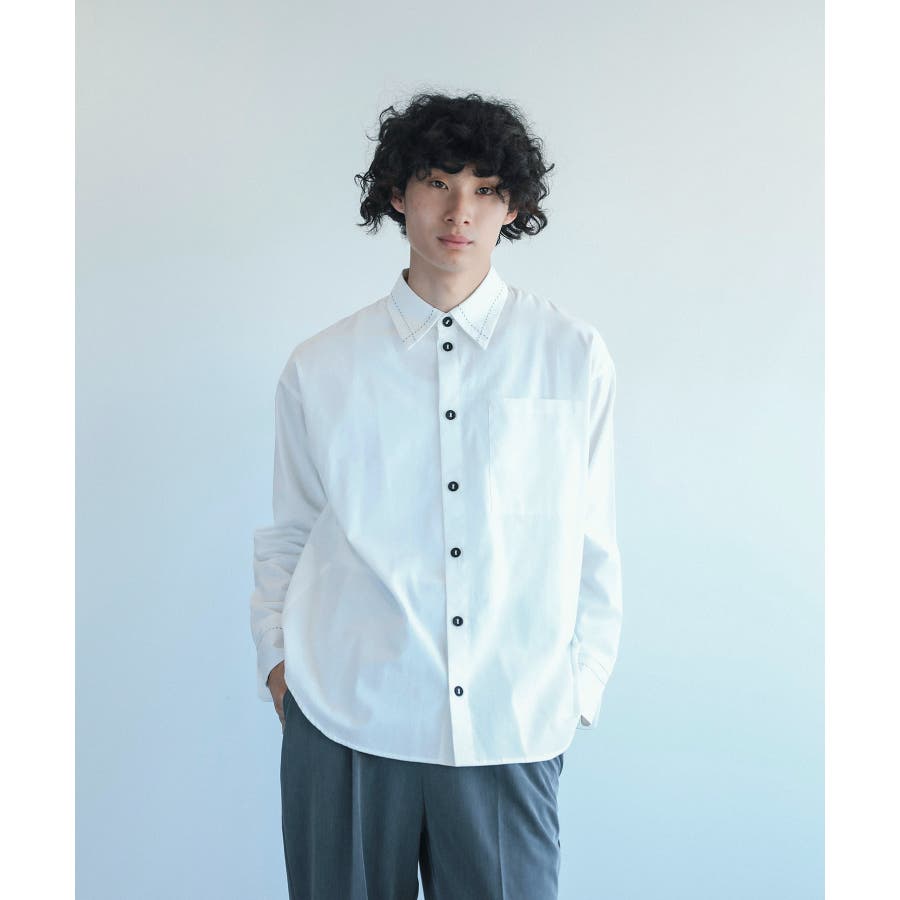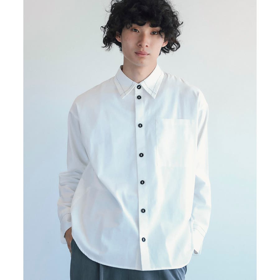 * ステッチデザイン: シャツの襟、袖、ボタン周りなどに独特のステッチデザインで、シンプルなシャツに遊び心をプラスします。