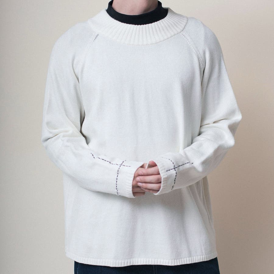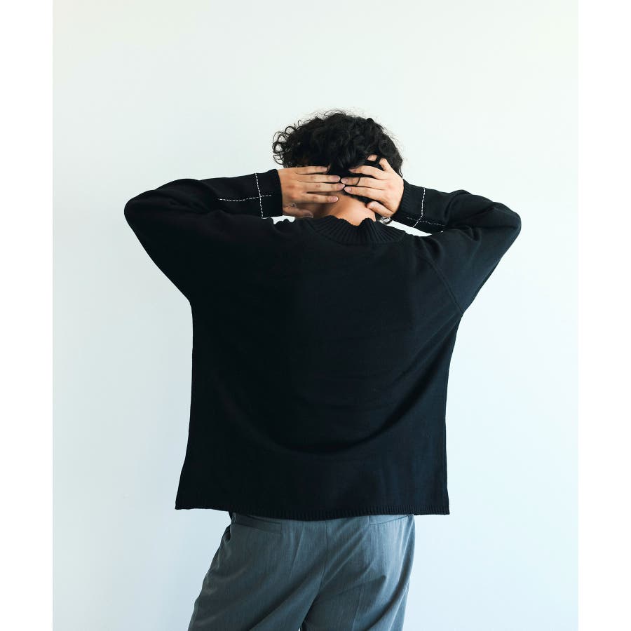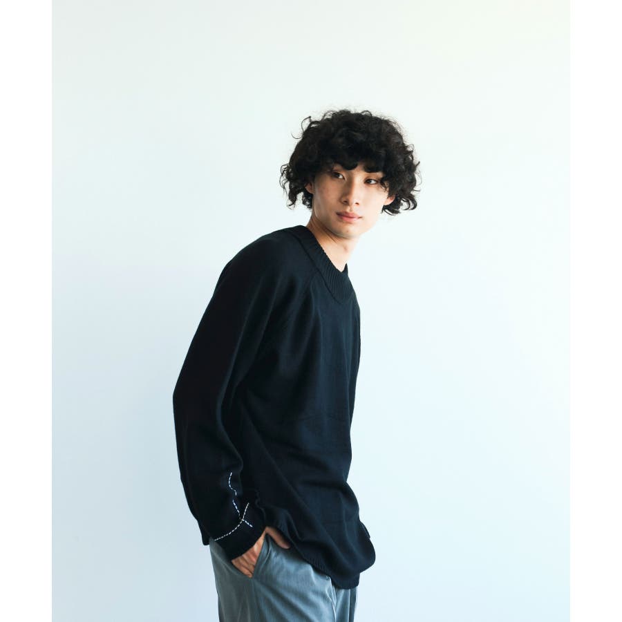 aimoha men スリーブ十字ステッチオーバーサイズセーター ニット