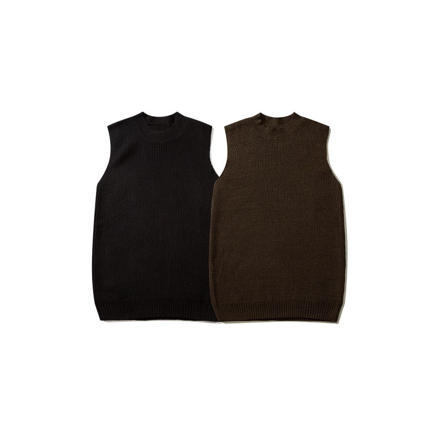 *ベストのデザインには独特のテクスチャがあり、視覚的にも魅力的です。リブ装飾はゆったりとしたボディと裾部分にも採用され、全体のスタイルに特別感をプラスします。
