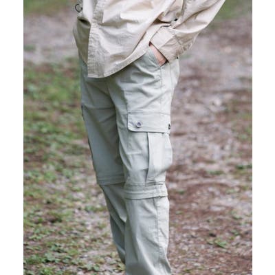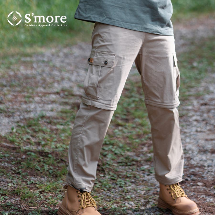 ●吸水速乾性やUVカット機能、接触冷感生地を採用して、夏のアウトドア生活に快適!●高いストレッチ性ある生地を使用しており、動いてもストレスフリー。●膝部分から下をファスナーで切り離すことができるカーゴパンツ。●1着でロングパンツとショートパンツの2役をこなし、さまざまなシーンで活躍します。●ファスナーを途中まで開ければ、ベンチレーションとしても機能。●ウエストはウェビングベルトで無段階調整が可能。【S’more Apparel】 キャンプする時だっておしゃれしたい![機能性]×[ファッショナブル]に拘った 女性も着やすい柔らかい雰囲気、スタイリングを楽しめるアイテムを展開。ユニセックスなので、リンクコーデも楽しめちゃう!キャンプ初心者の方、キャンプウェアに初めて手を出す方、サラッと着られて、おしゃれに普段使いもしたい方に向けた、手の届きやすいウェアをお届け♪【商品名】nylon pants 2way ( ナイロンパンツ2way )【サイズ(cm)】【S】総丈99cm ヒップ97cm 股上32cm 股下67cm もも周り30cm【M】総丈101cm ヒップ101cm 股上33cm 股下68cm もも周り31cm【L】総丈103cm ヒップ105cm 股上34cm 股下69cm もも周り32cm【XL】総丈105cm ヒップ109cm 股上35cm 股下70cm もも周り33cm※単位、採寸サンプルの平均値を表記。※1点1点サイズ・ニュアンスが多少異なります。【素材】コットン68%、ナイロン28%、スパンデックス4%【透け感】なし【伸縮性】あり【生産国】China【モデル情報】・(MEN)身長179cm 着用:ベージュ Mサイズ・(WOMEN)身長171cm 着用:カーキ Lサイズ