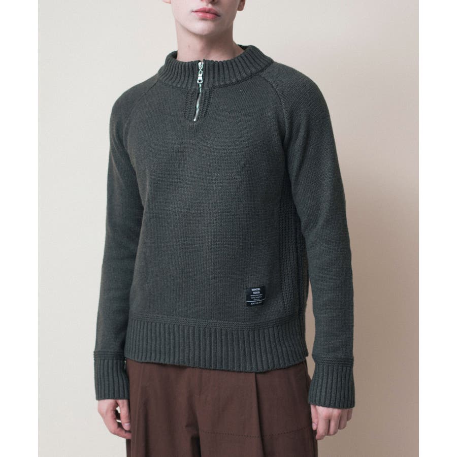 aimoha MENS/エルボーパッチ ハーフジッパーセーター