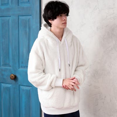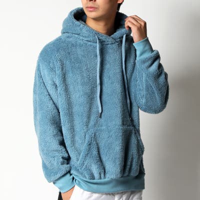 優しい肌触りのふわふわ もこもこシャギーボア素材を使用し保温性が高く、軽くて暖かいプルパーカーの登場。