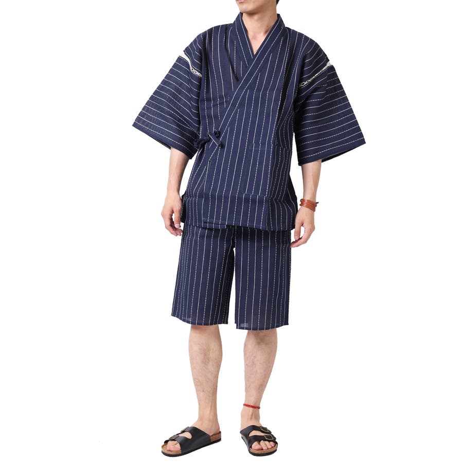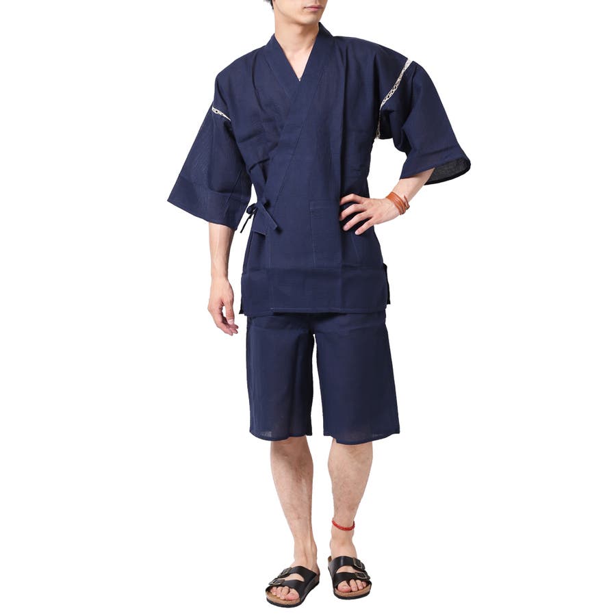 凹凸感のあるしじら織りが肌につかず清涼感を保つ夏涼しい甚平