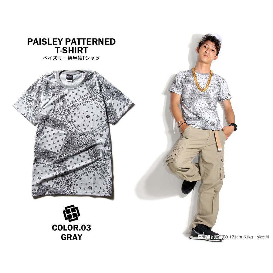 さわやかなカラーがおしゃれなペイズリー柄の半袖Tシャツです。