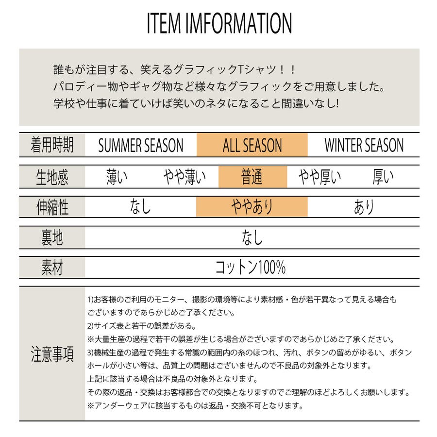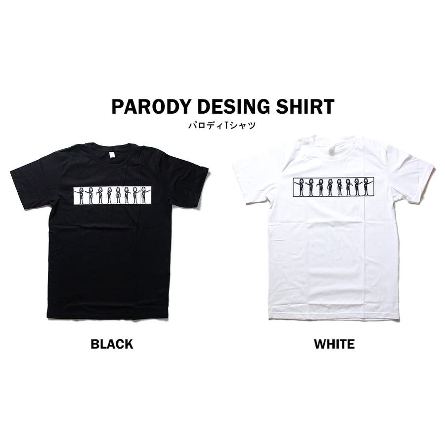 | 街中で一際目を引くパロディーTシャツ。誰でもご存知の有名なキャラクターや企業、偉人に至るまで大胆にパロディーしました。 学校や仕事場、ライブなど様々な場面で大活躍!みんなの注目の的になること間違いなし! |