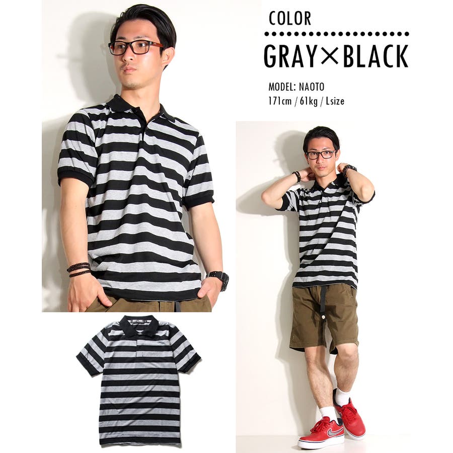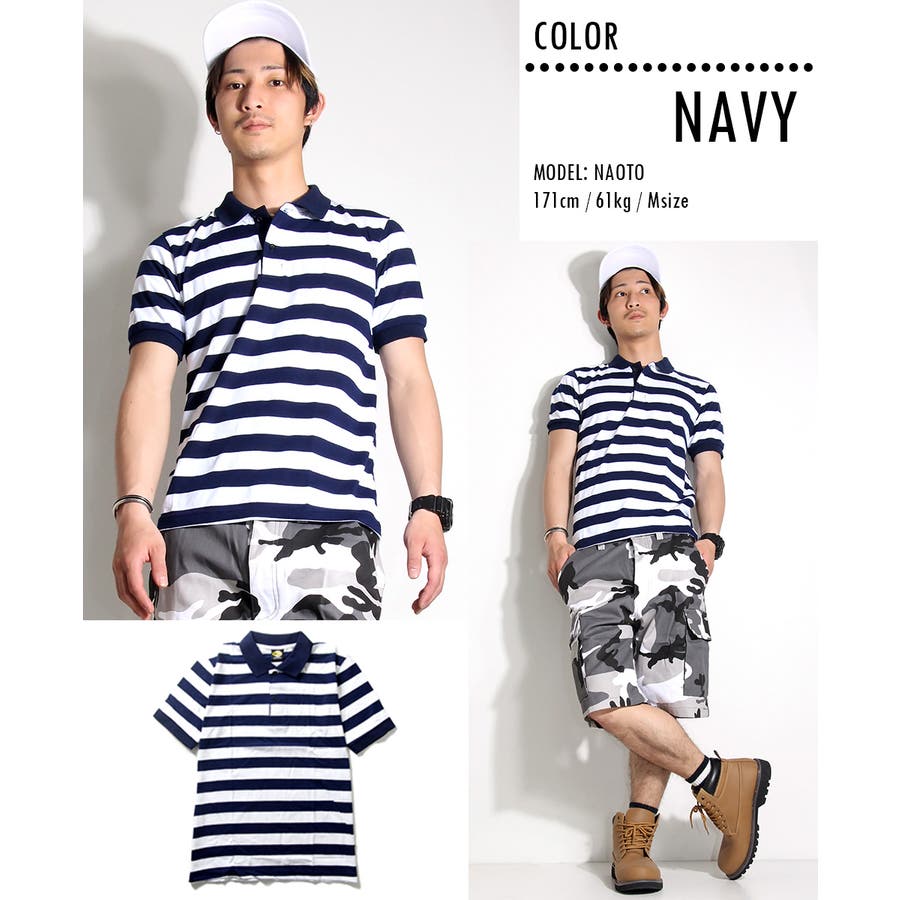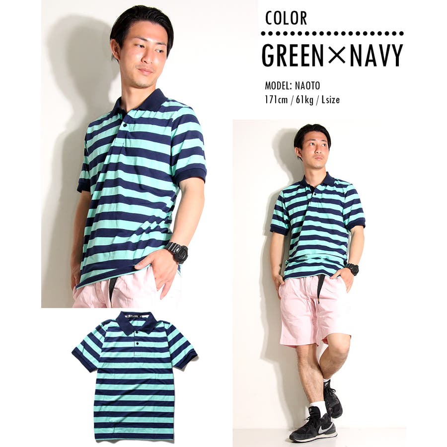 夏にピッタリのボーダー柄の半袖ポロシャツです。
