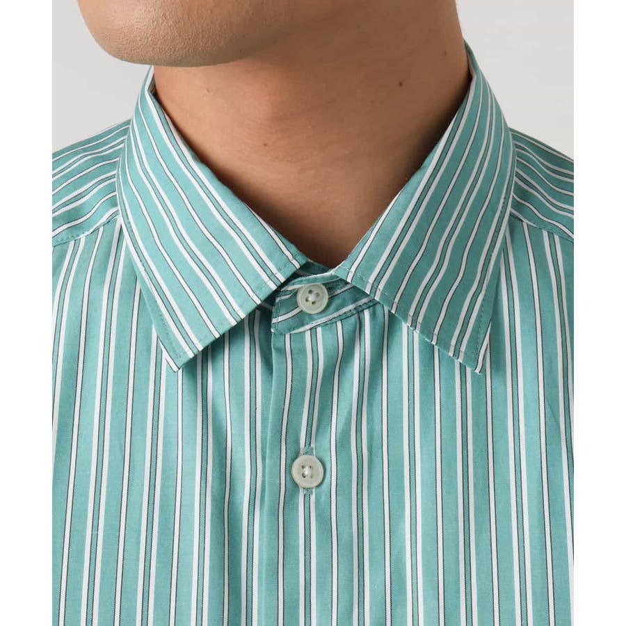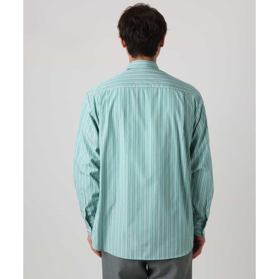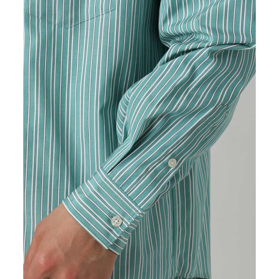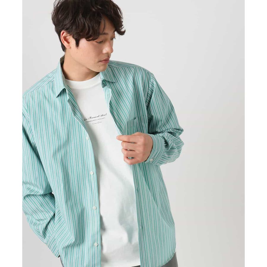 春らしい爽やかな印象のストライプ柄シャツ。
