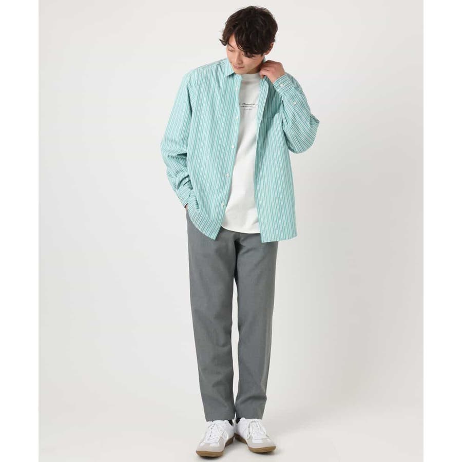 ニットやカーディガンのインナーに着ることで、首元や裾のさり気ないレイヤードスタイルが演出できる汎用性の高いシャツです。