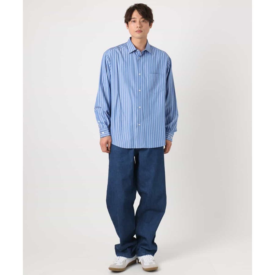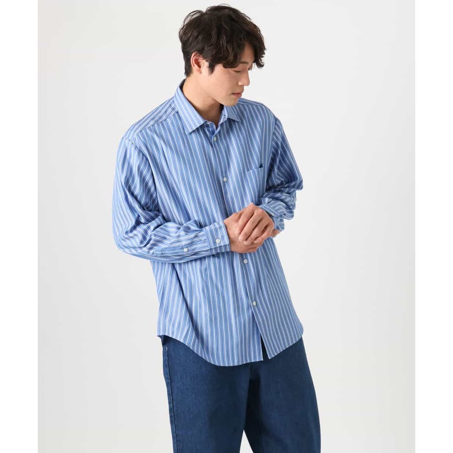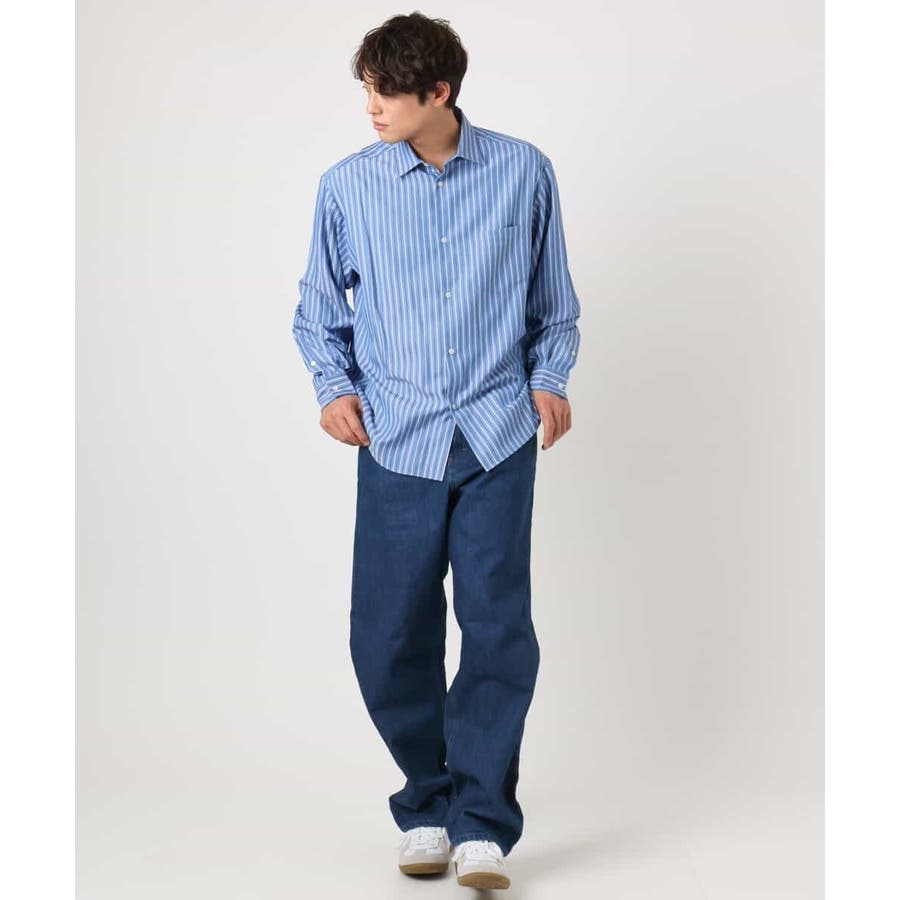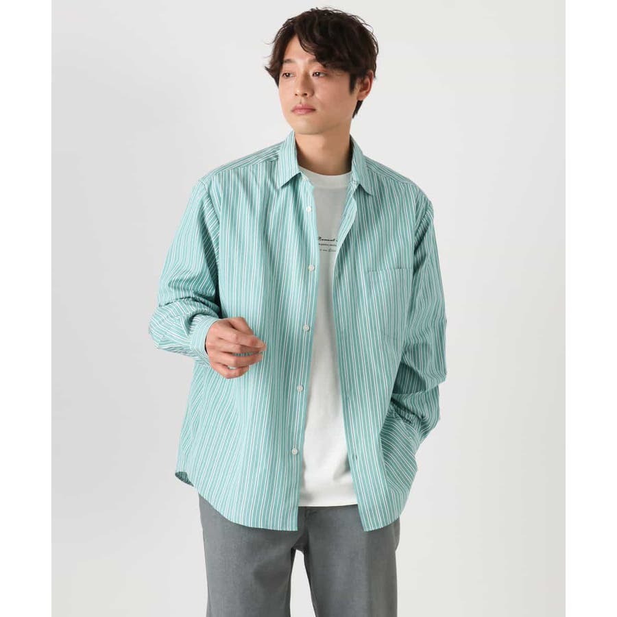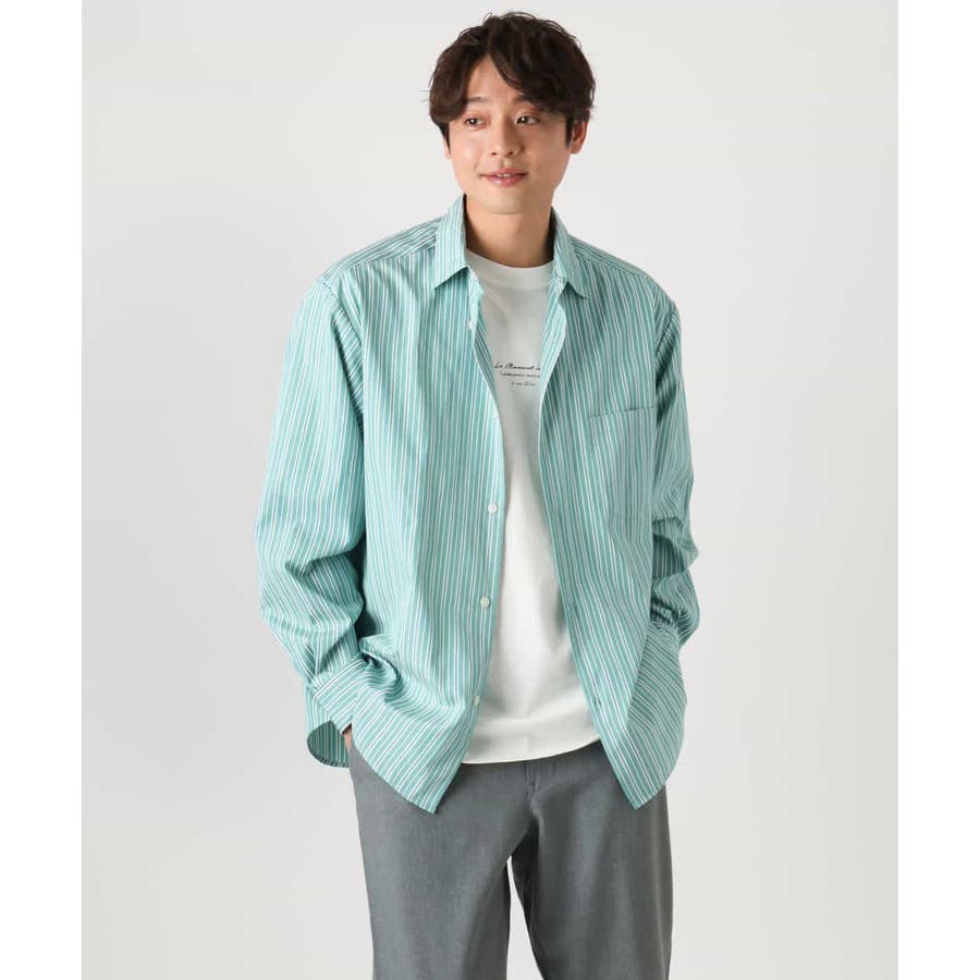 【イージーケア】カラーストライプワイドシルエットシャツ