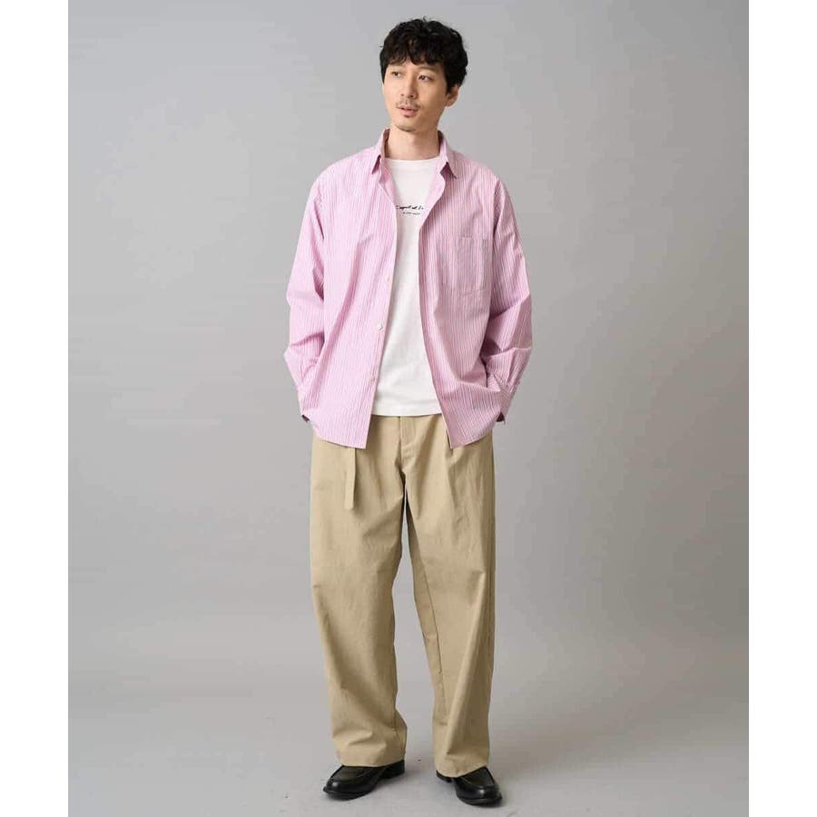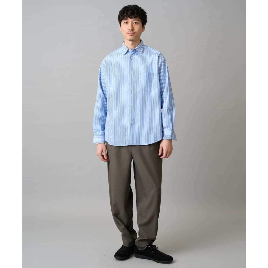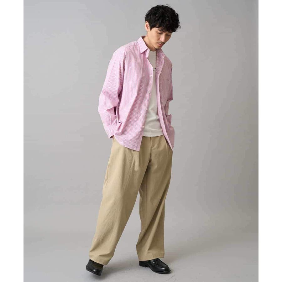 シルエットはややゆとりのあるワイドシルエットで、気負わずリラックスして着用できるレギュラーカラーデザインの一着。