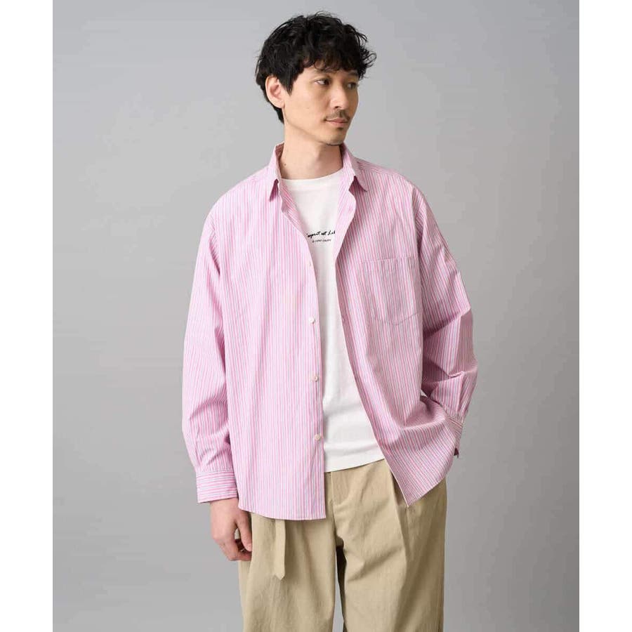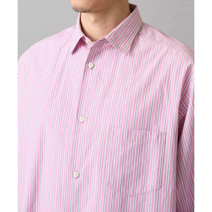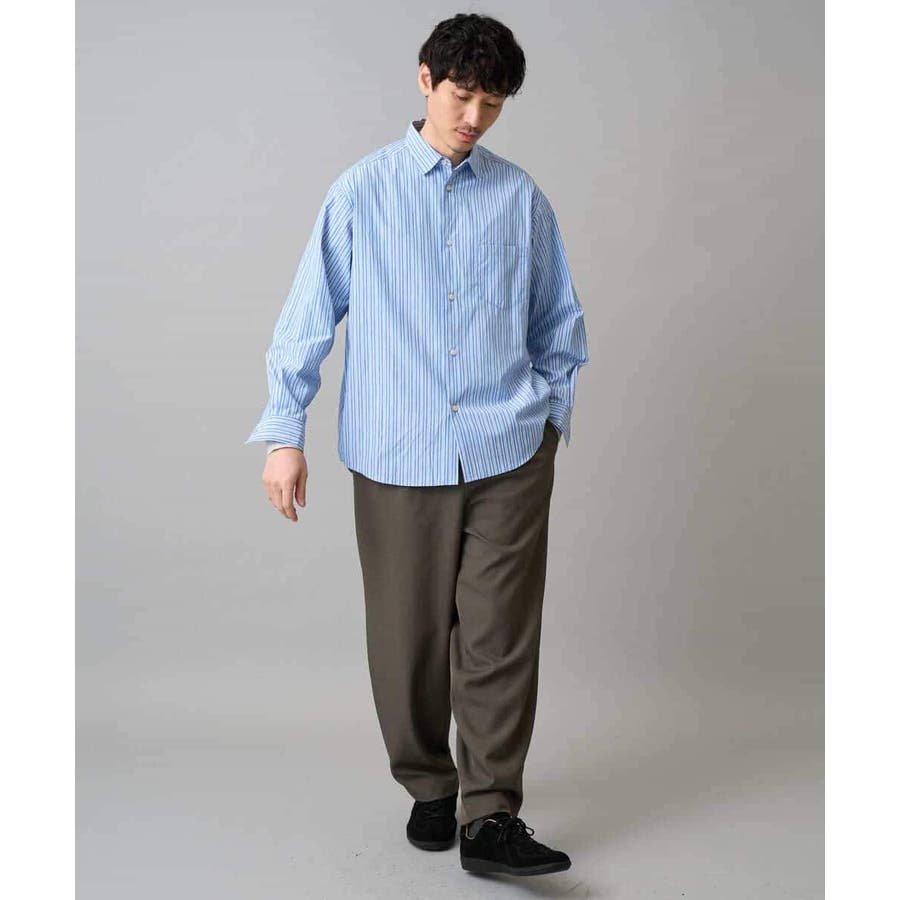 ◆ワイドシルエットのレギュラーカラ―シャツ。