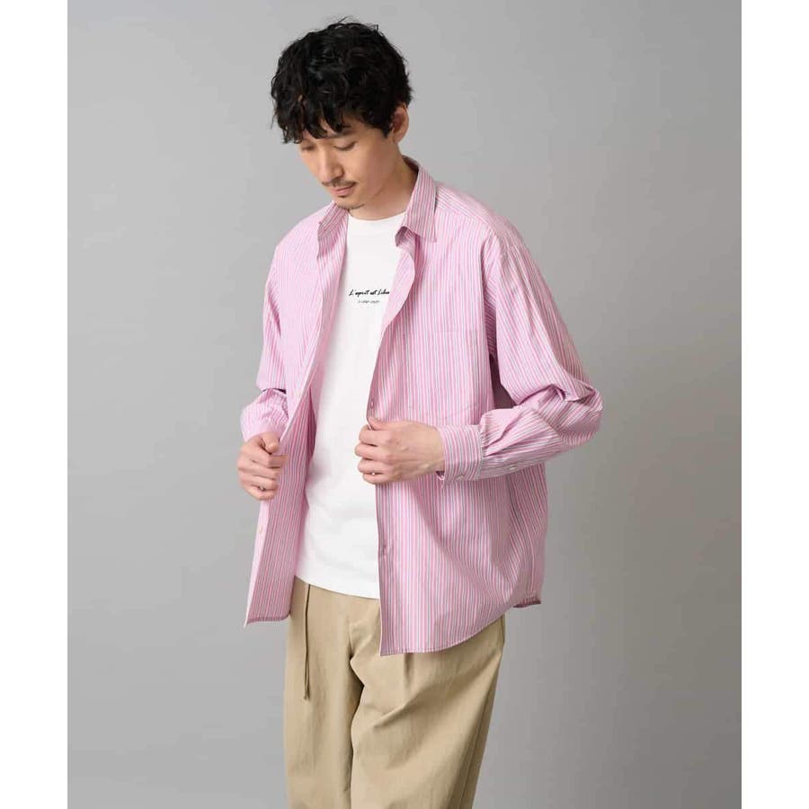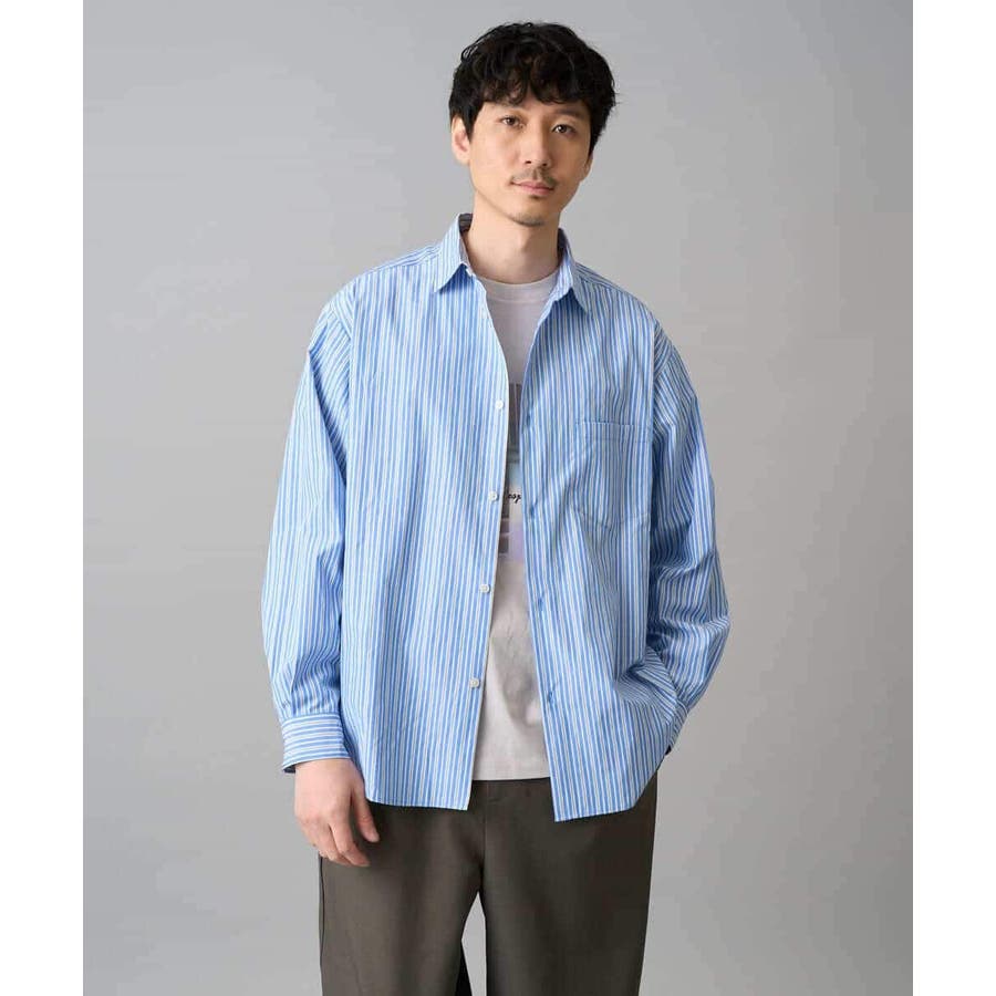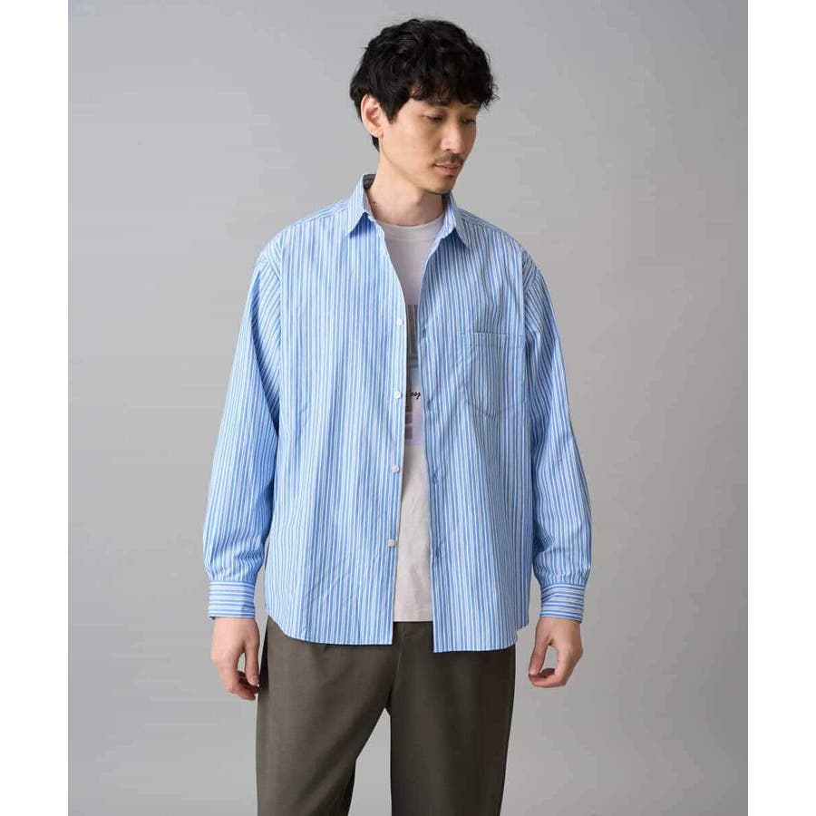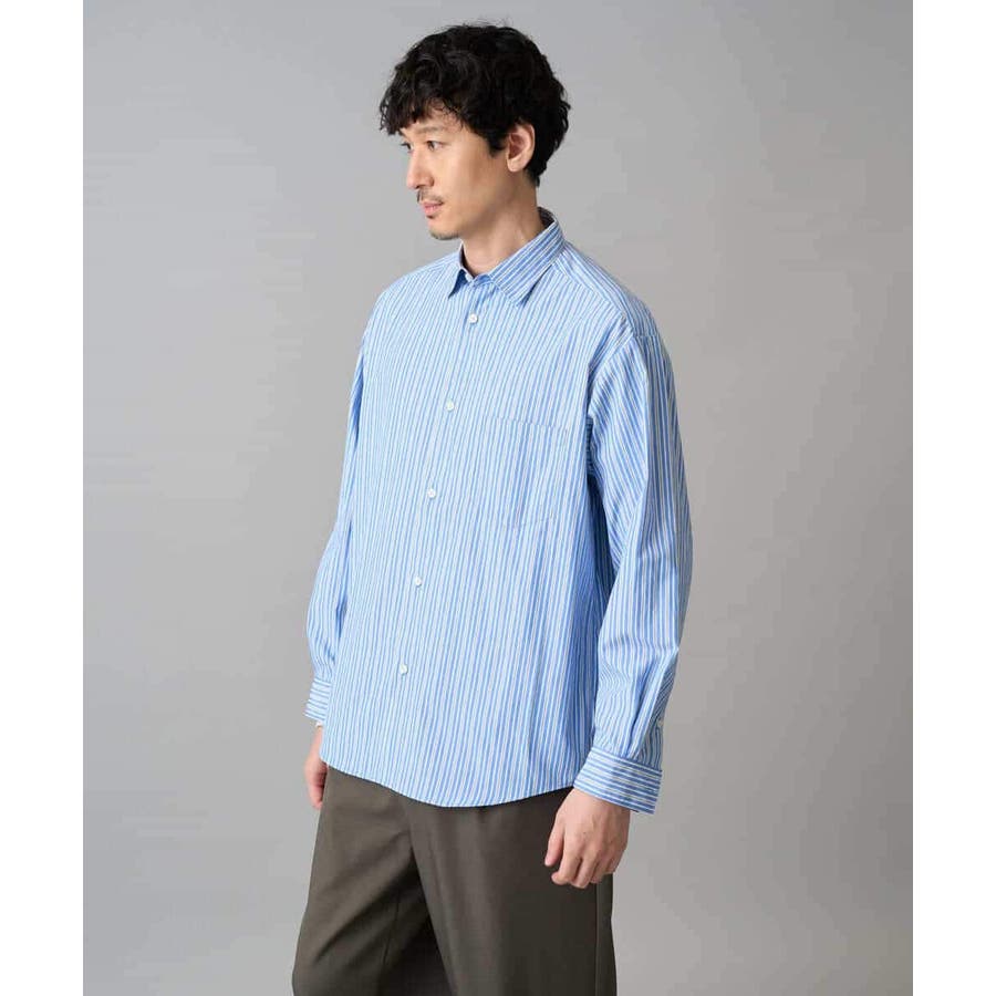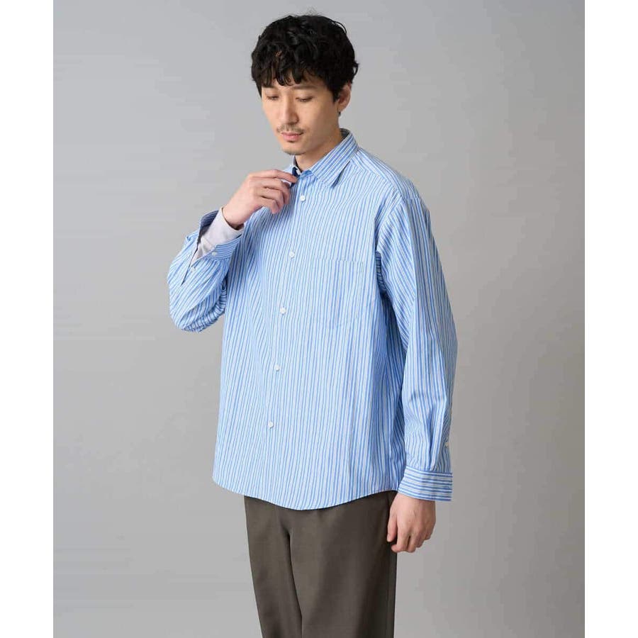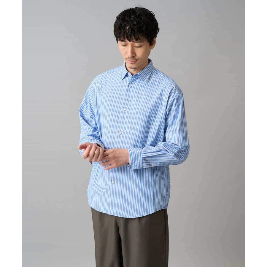 【洗濯機で洗える/毛玉になりにくい】ワイドストレッチストライプシャツ