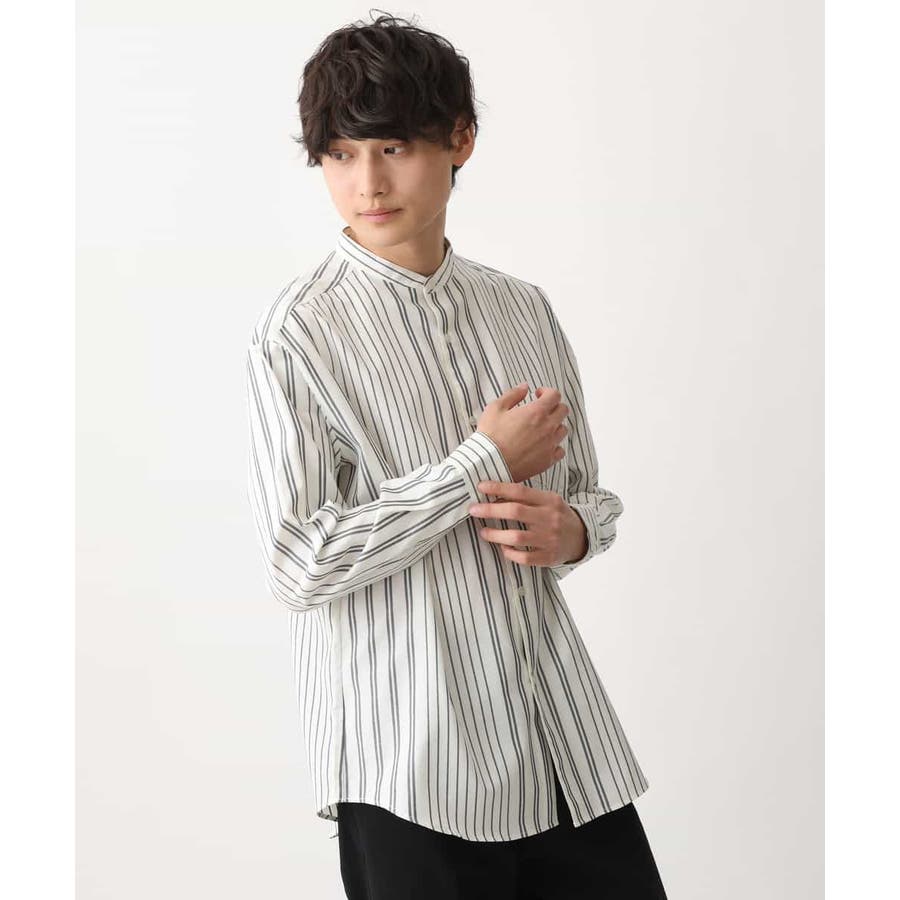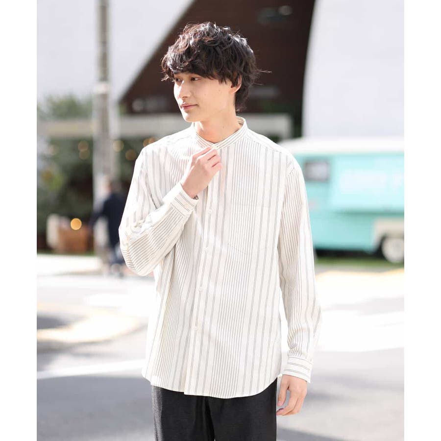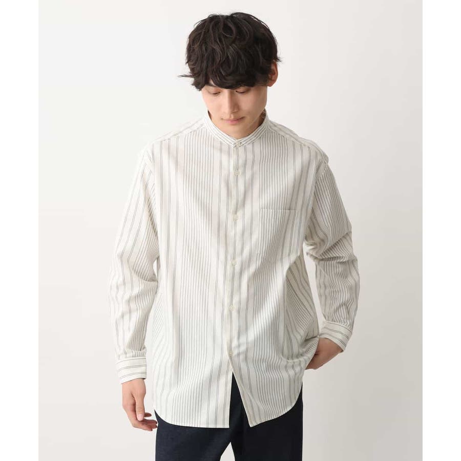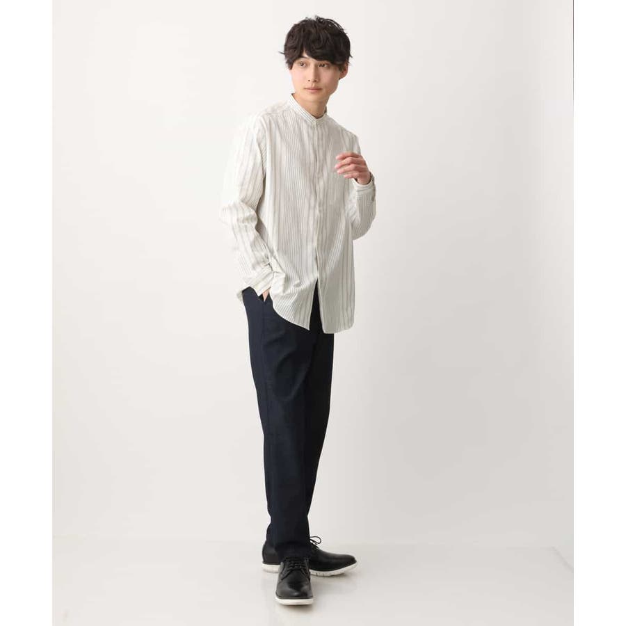 インナーでも1枚着としても着回しやすいバンドカラ―デザインのため、トレンド感を演出できる使いやすい1枚です。
