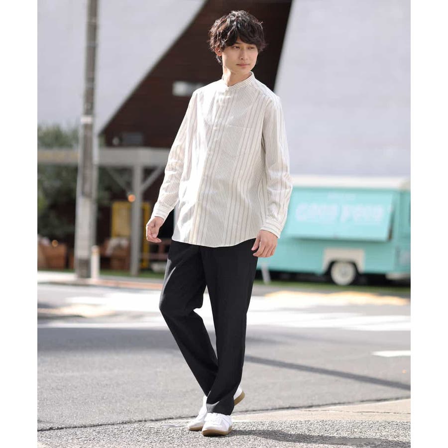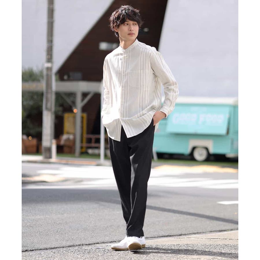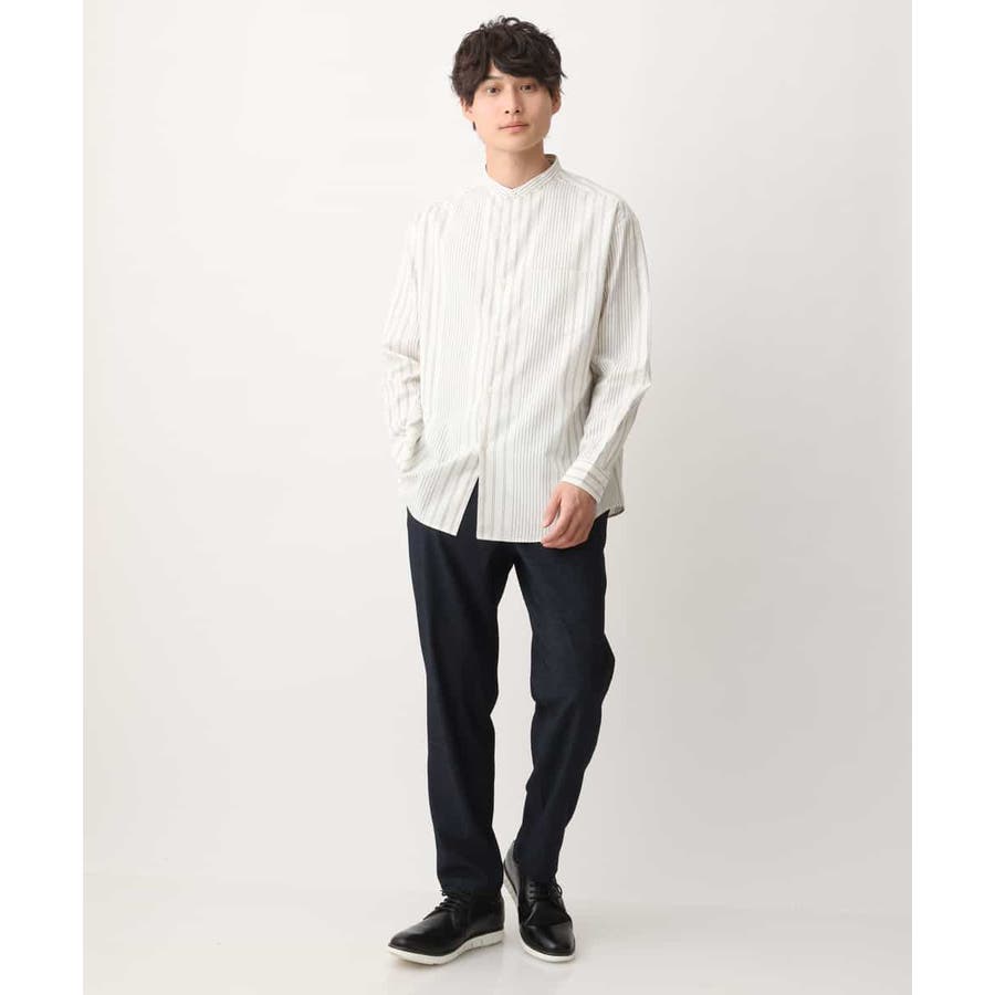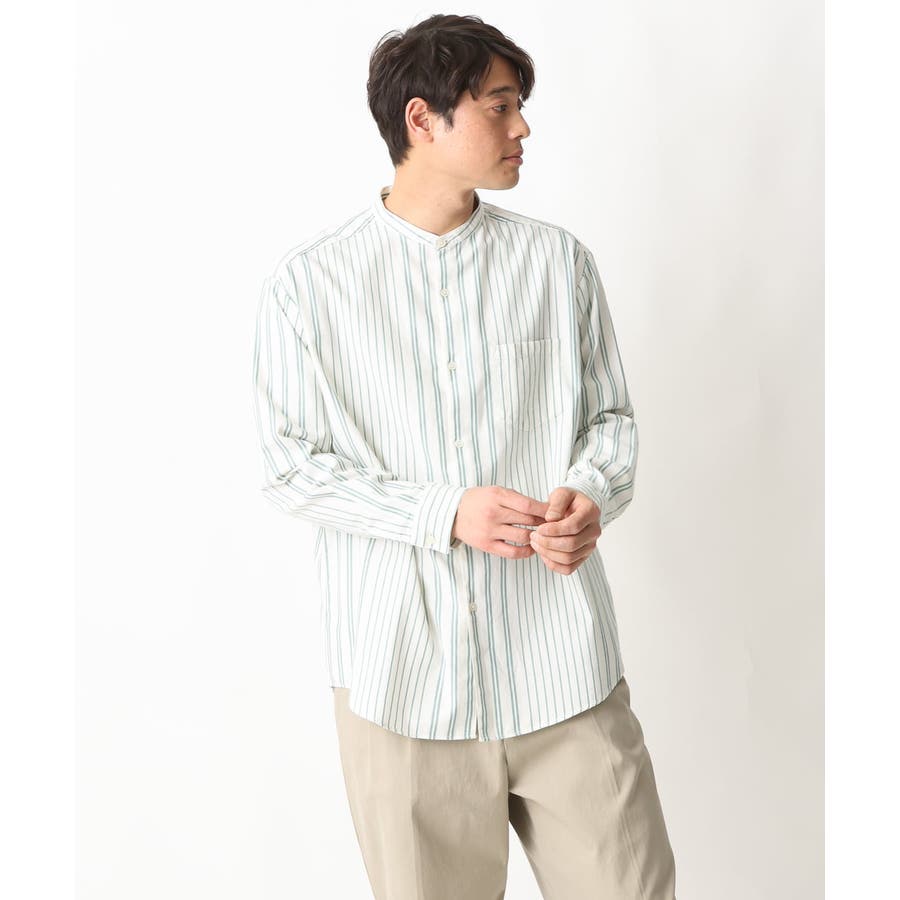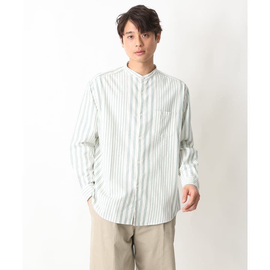 インナーでも1枚着としても着回しやすいバンドカラ―デザインのため、トレンド感を演出できる使いやすい1枚です。