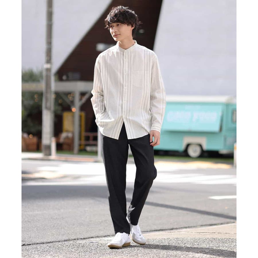 シルエットはややゆとりのあるセミワイドシルエットで、気負わずリラックスして着用できる一着。