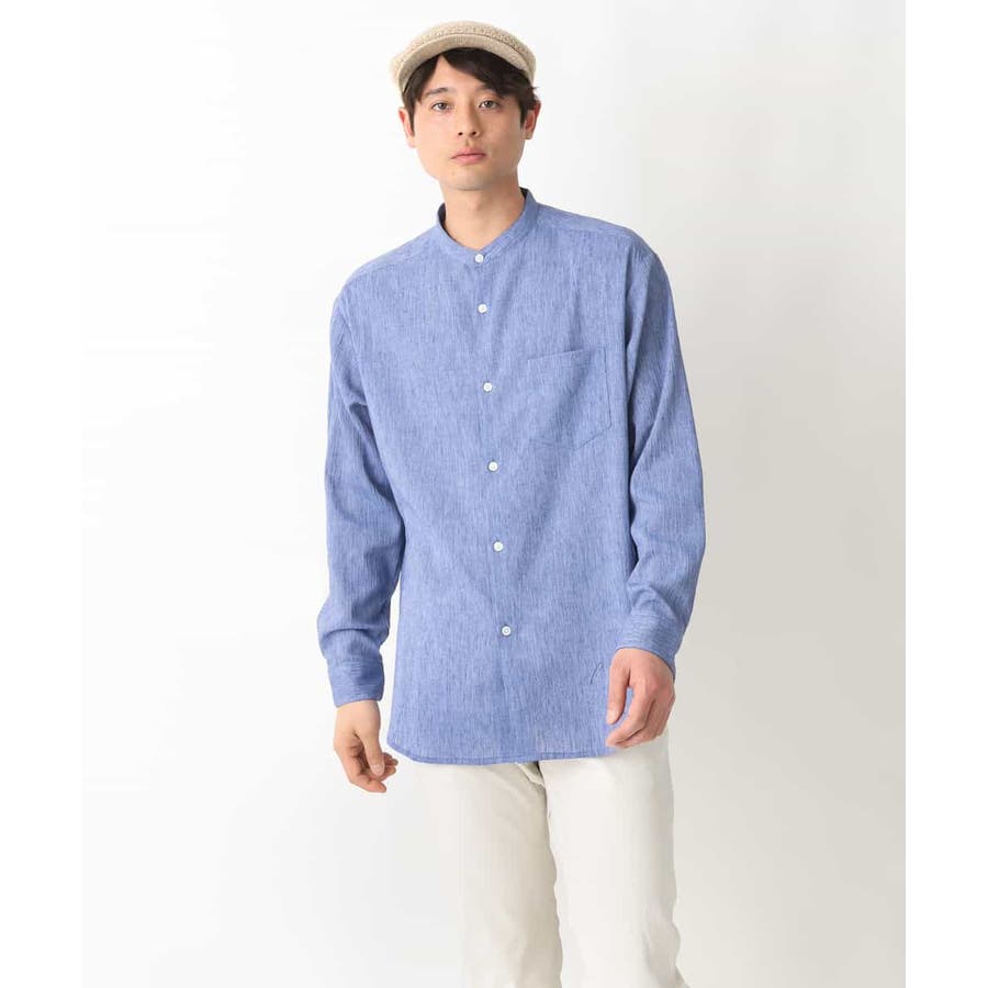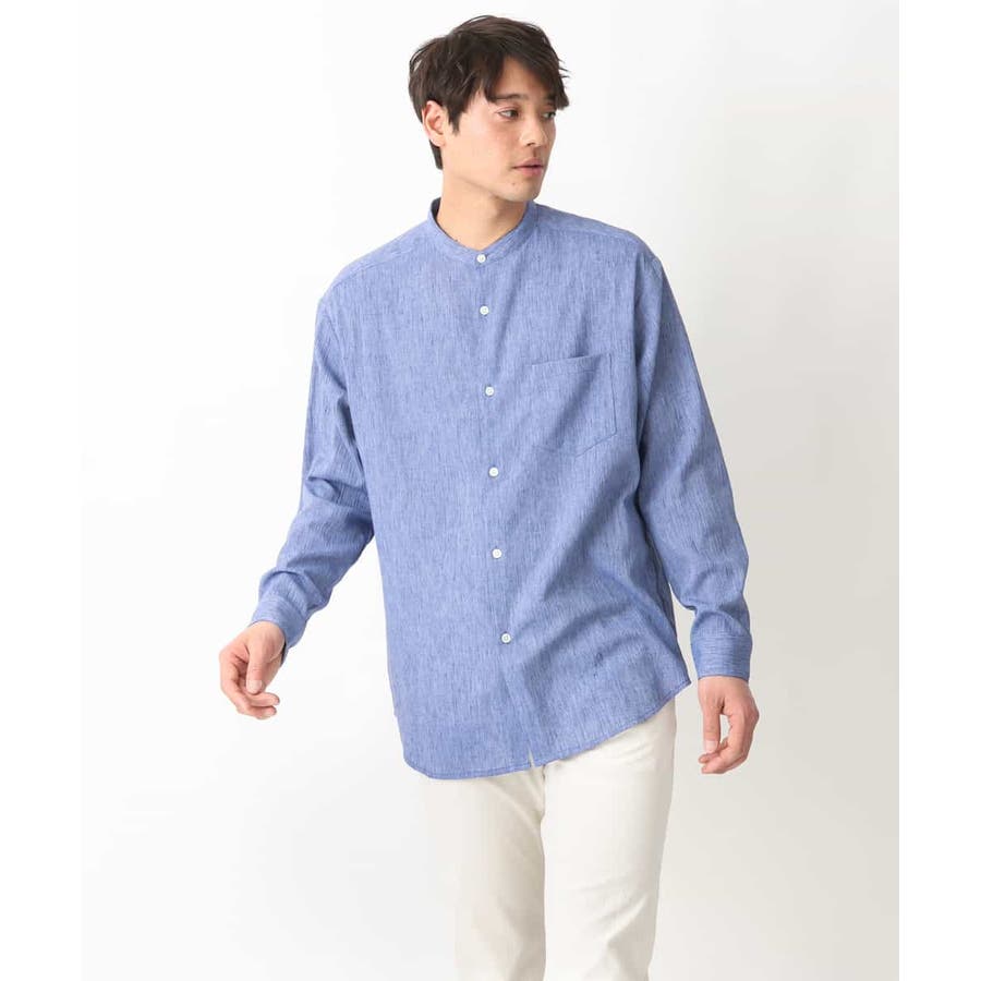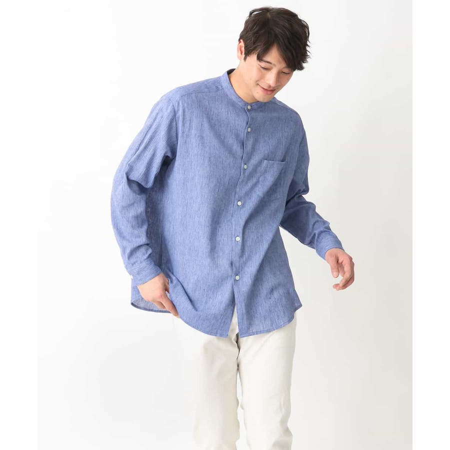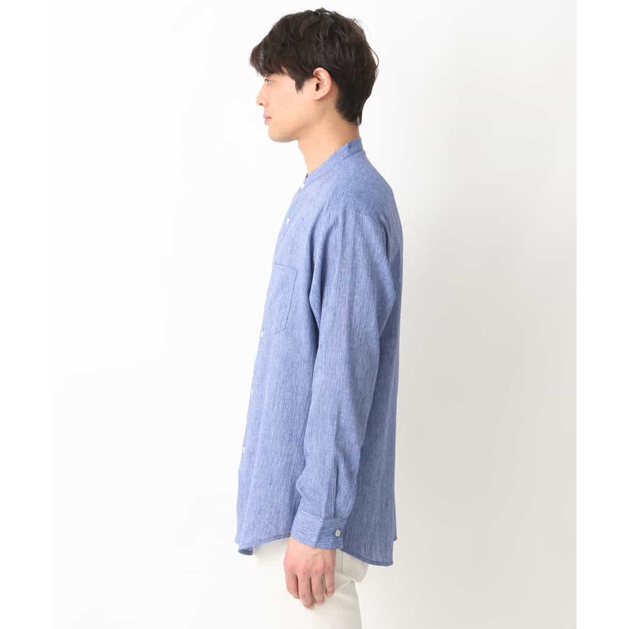 【リネン混】ワッシャーセミワイドバンドカラーシャツ