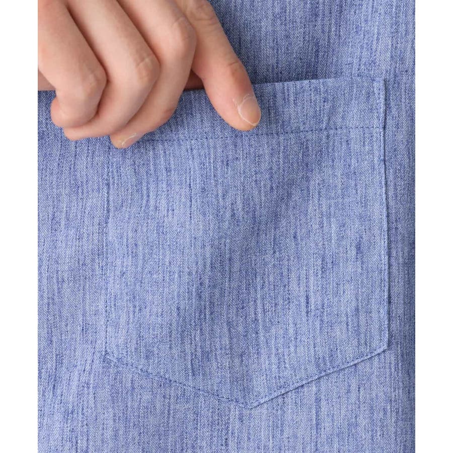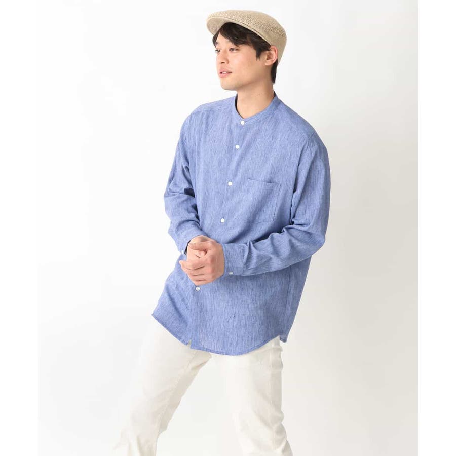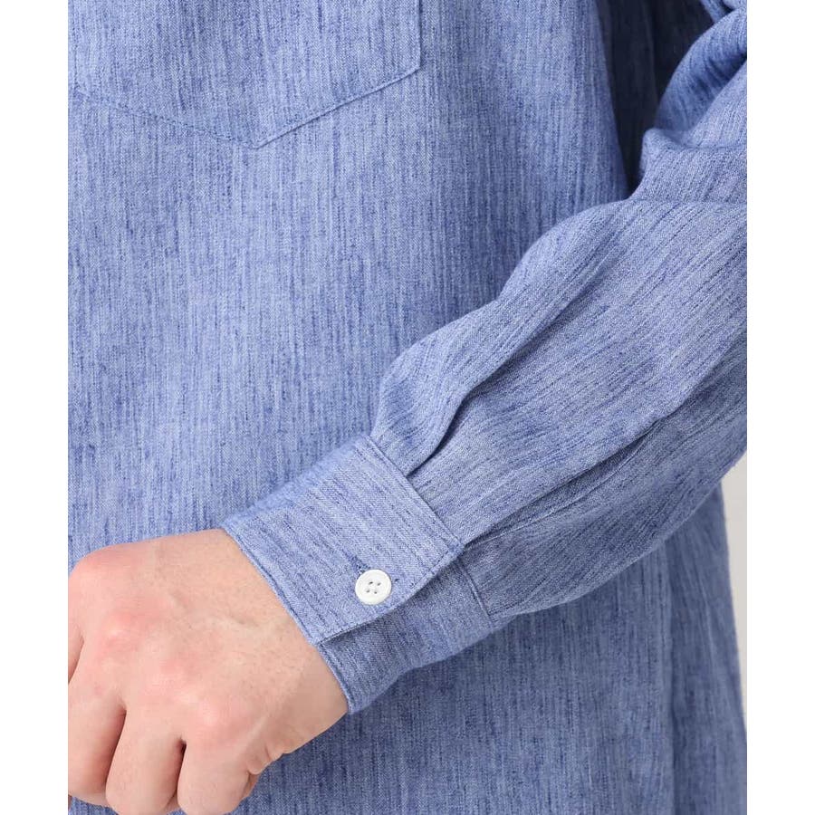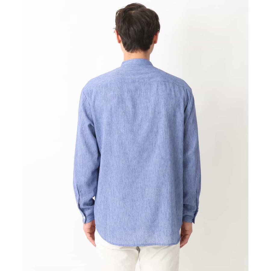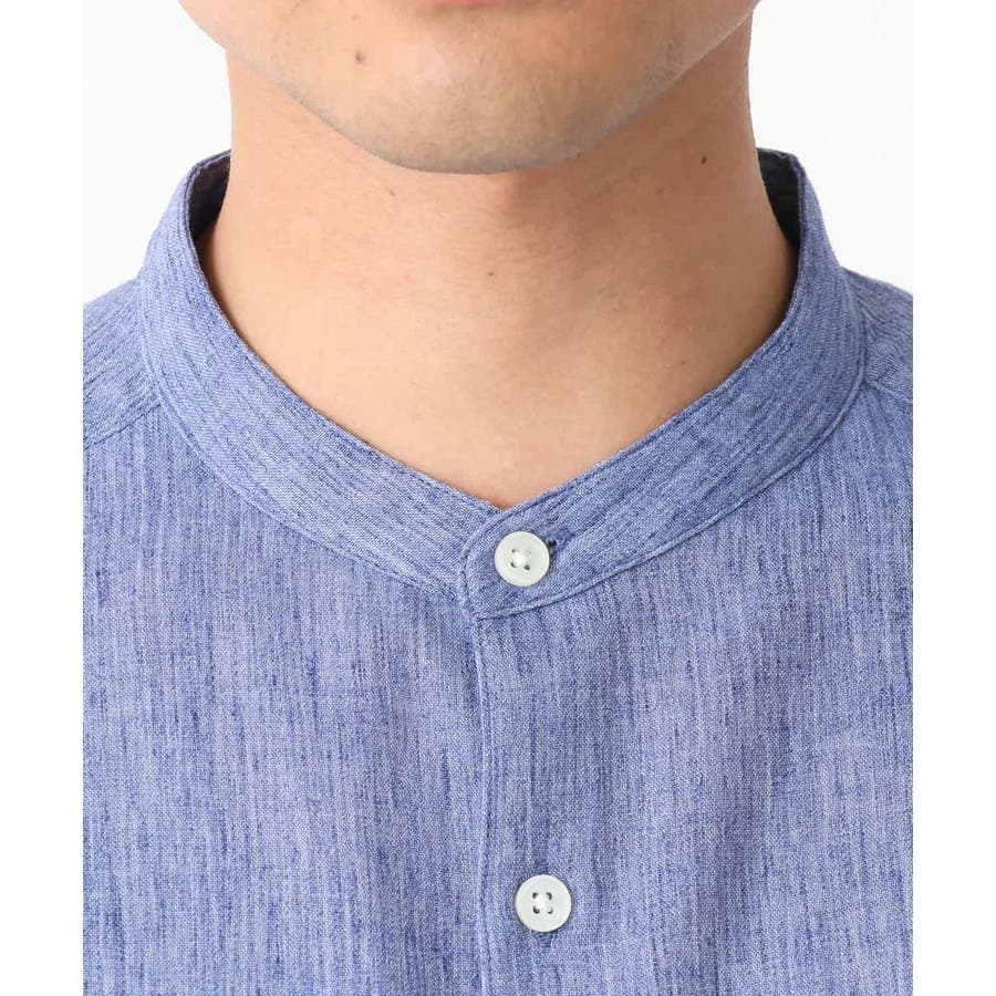 【リネン混】ワッシャーセミワイドバンドカラーシャツ