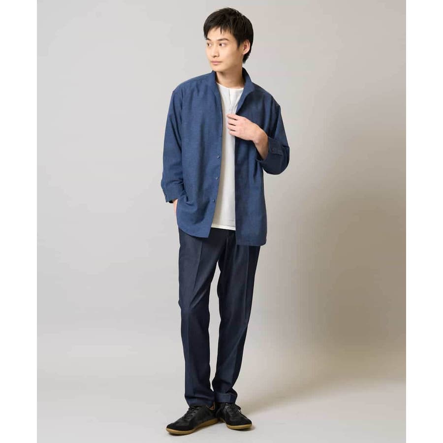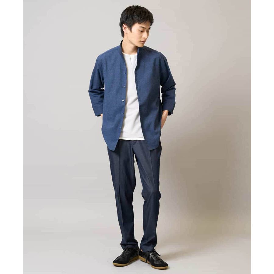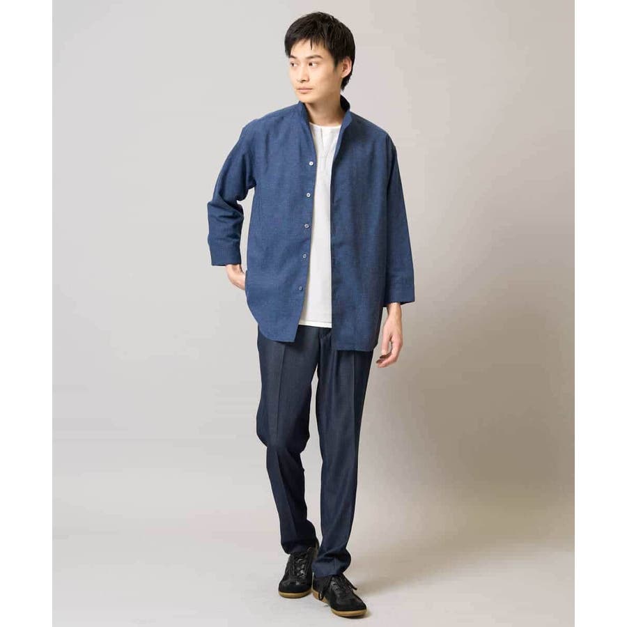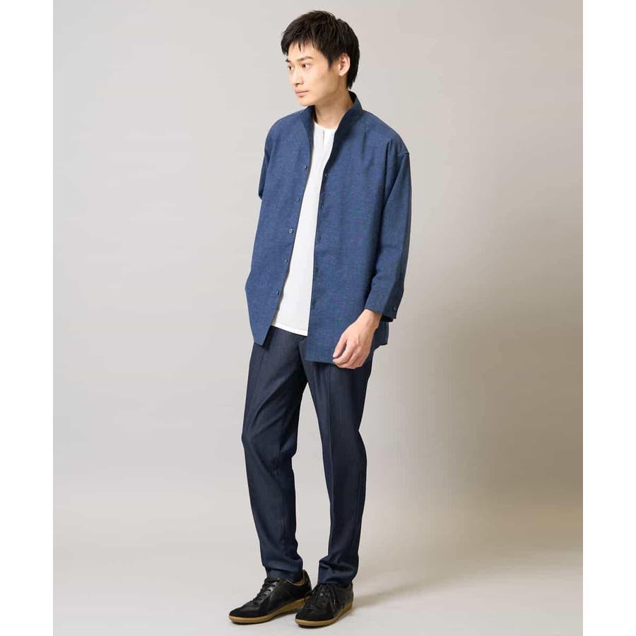上品な印象のスタンドカラーで、衿を立てたり寝かしたりとアレンジが効き、 首もとの印象をシャープに仕上げてくれます。