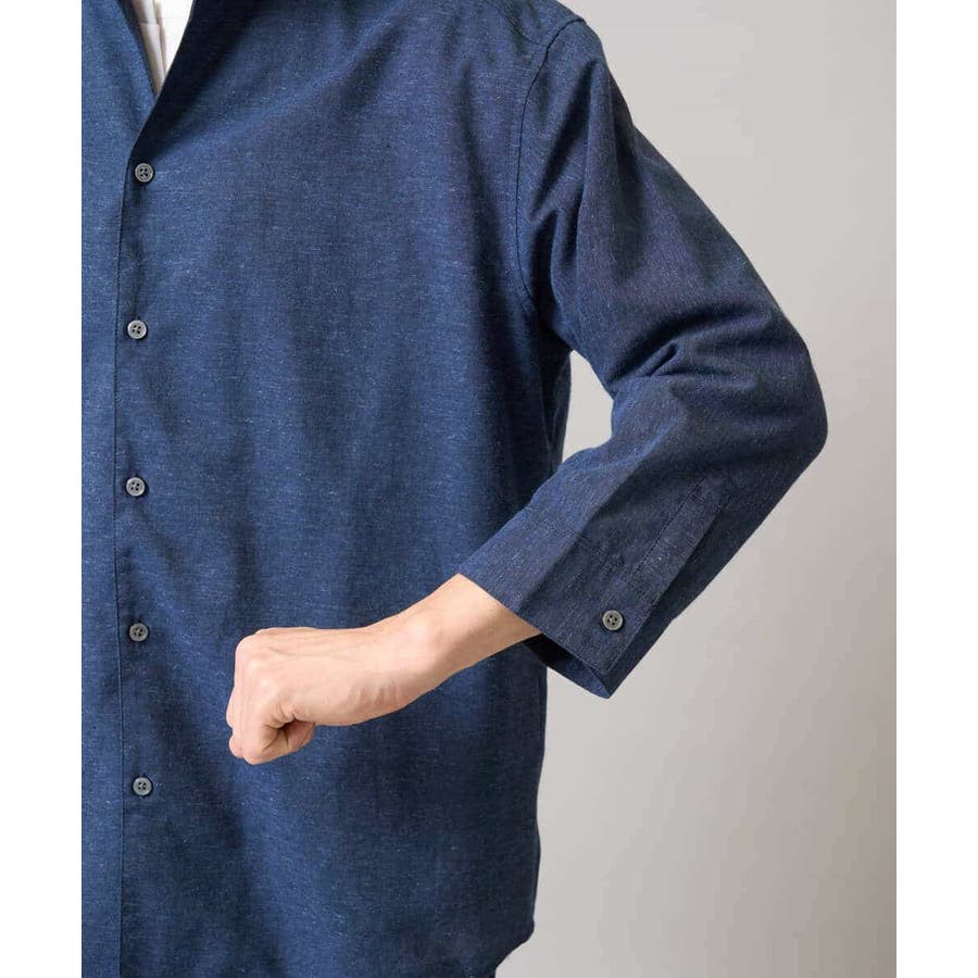 清涼感と快適機能を備えた高品質なリネン混七分袖シャツ◆