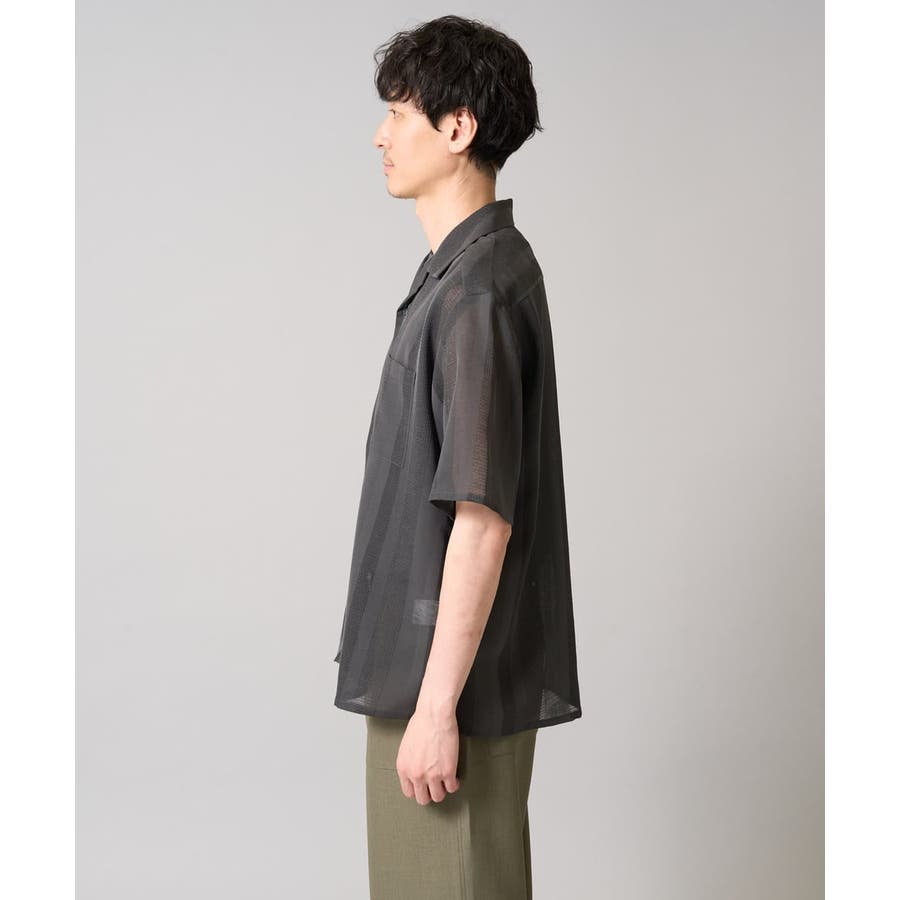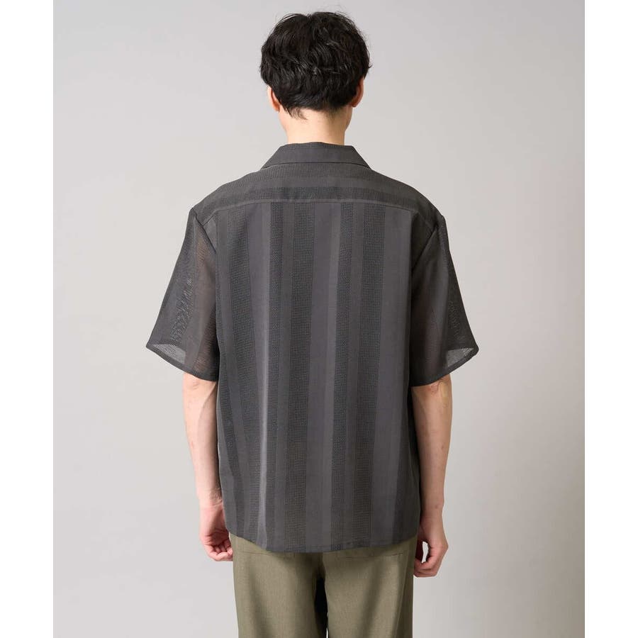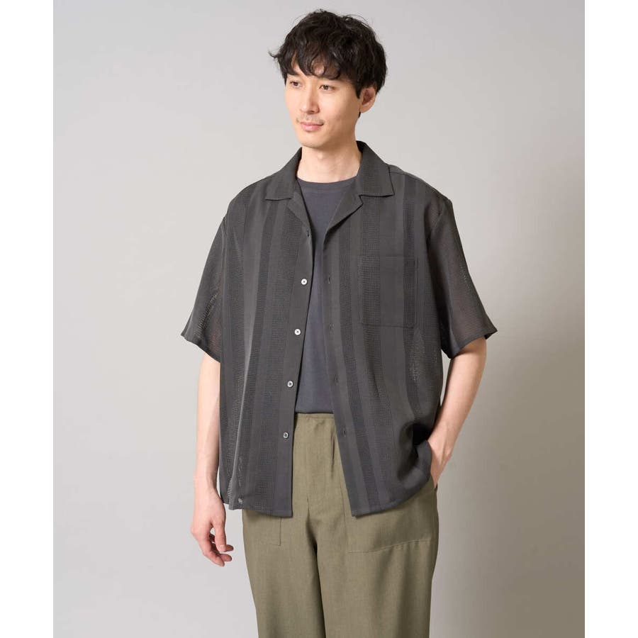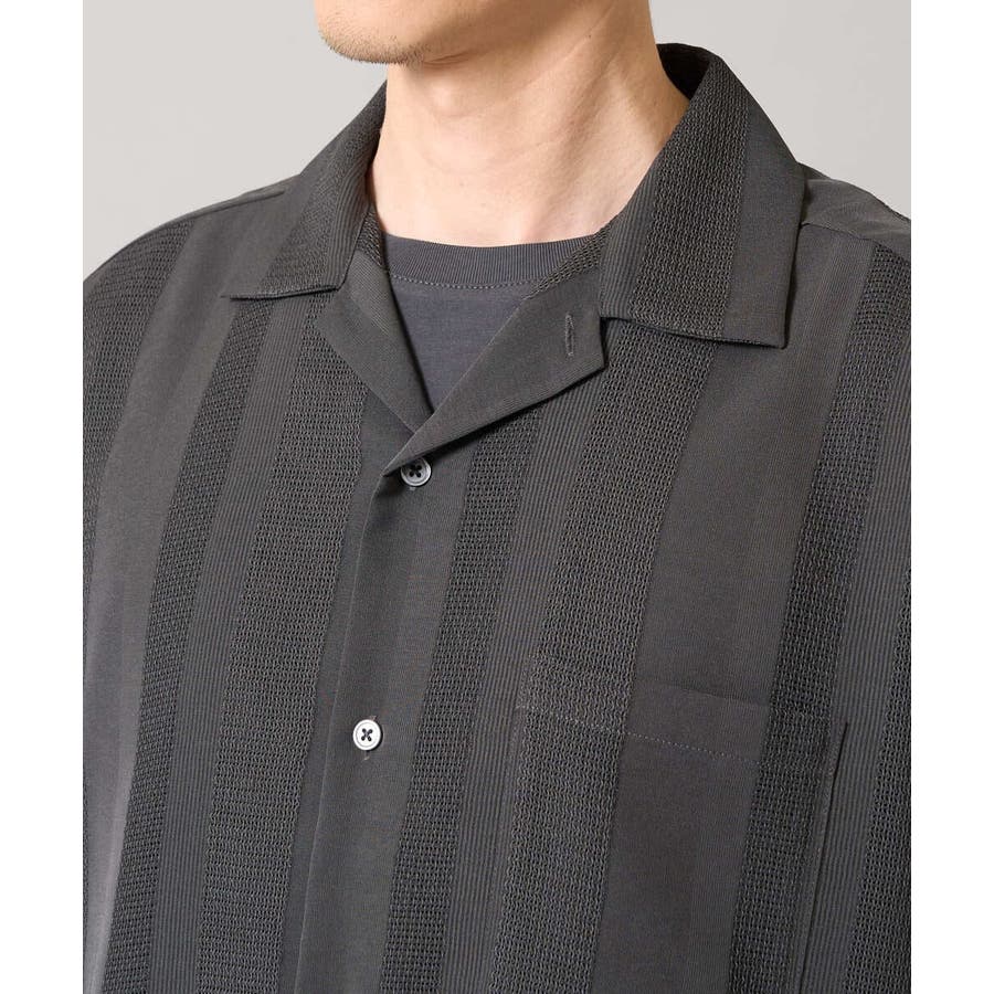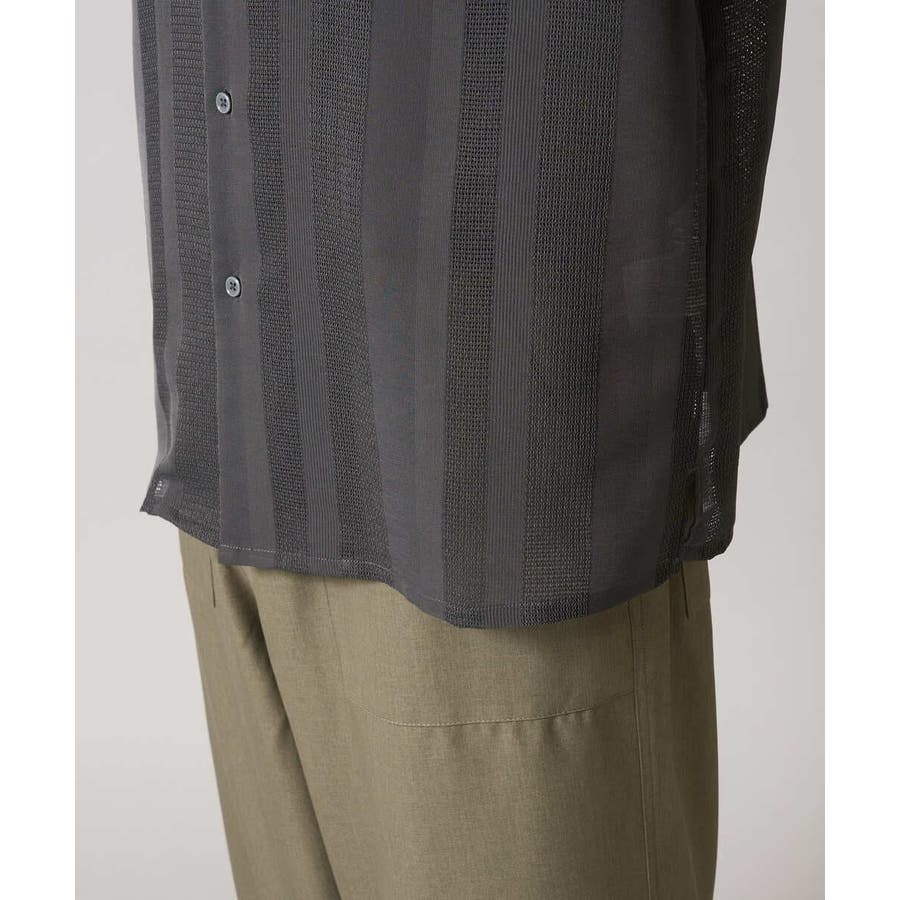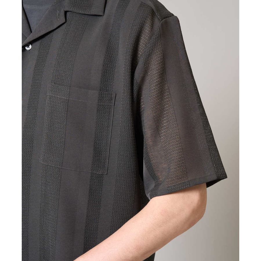 カラミ織り素材にランダムストライプを表現したオープンカラーシャツ◆