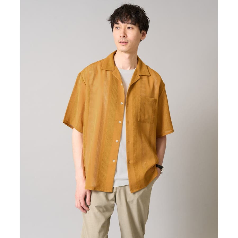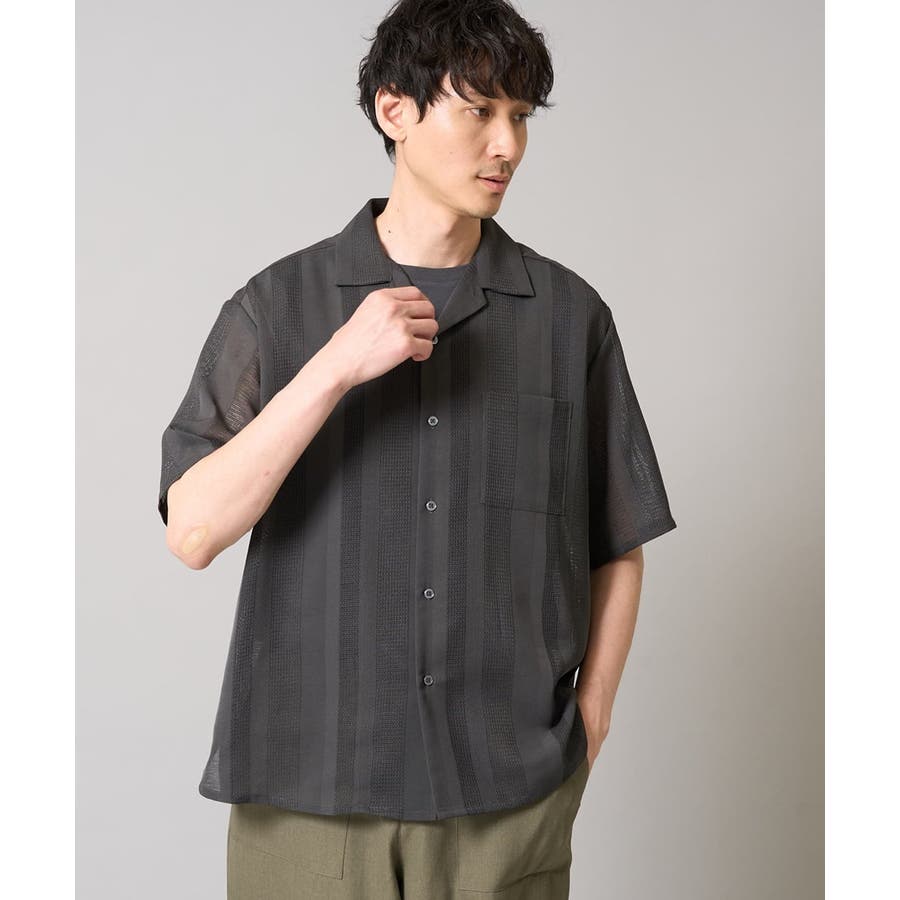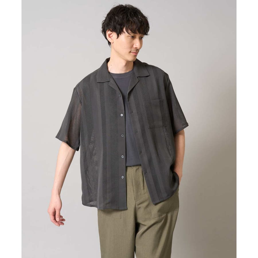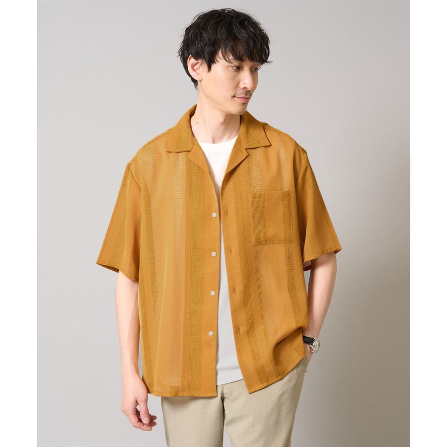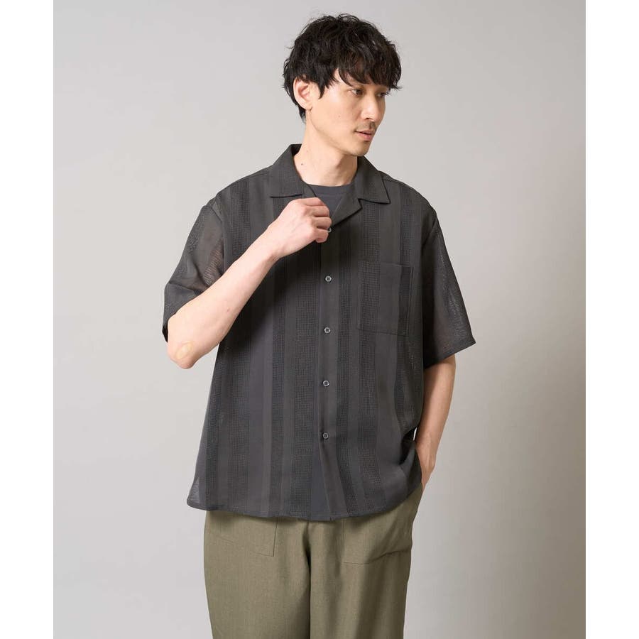 カラミ織り素材にランダムストライプを表現したオープンカラーシャツ◆