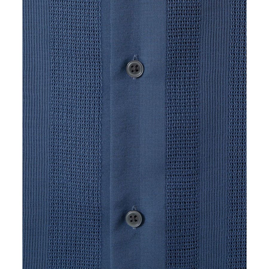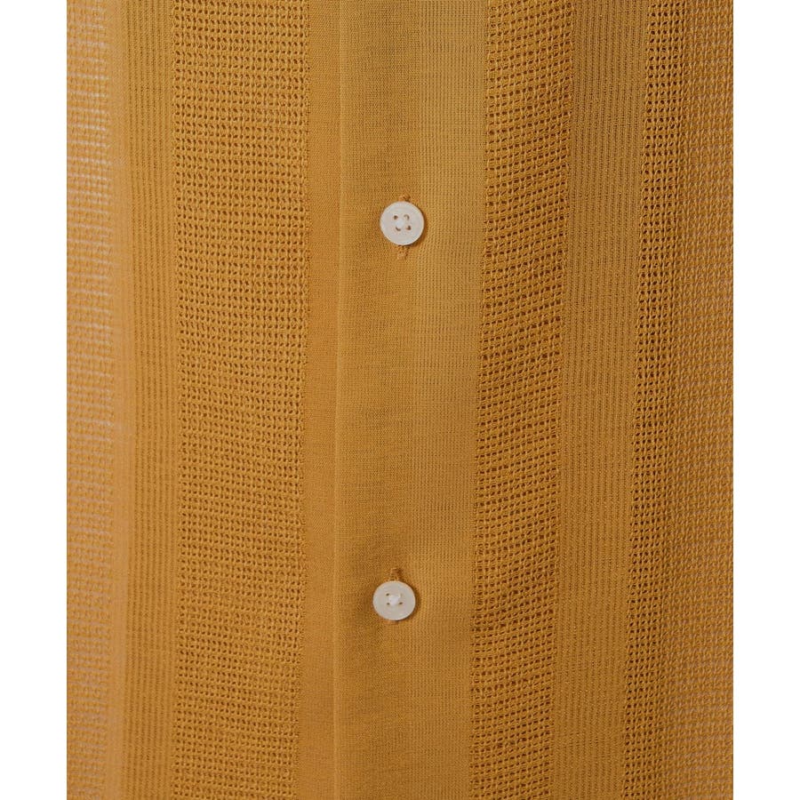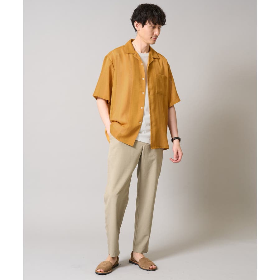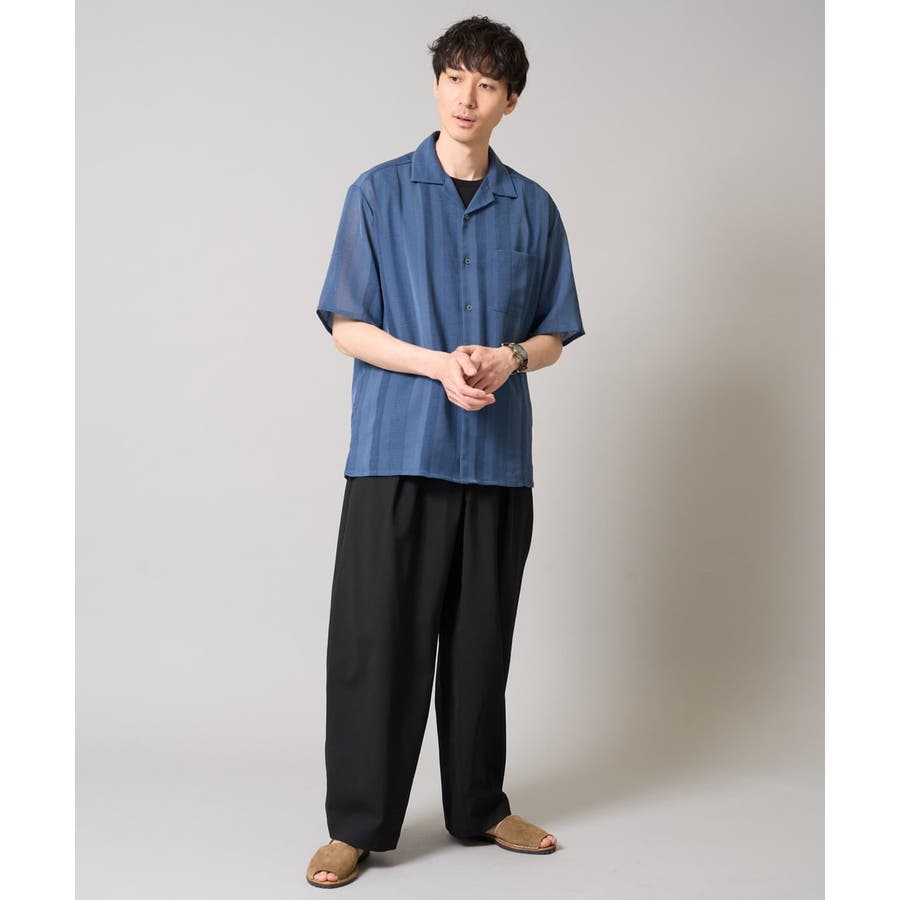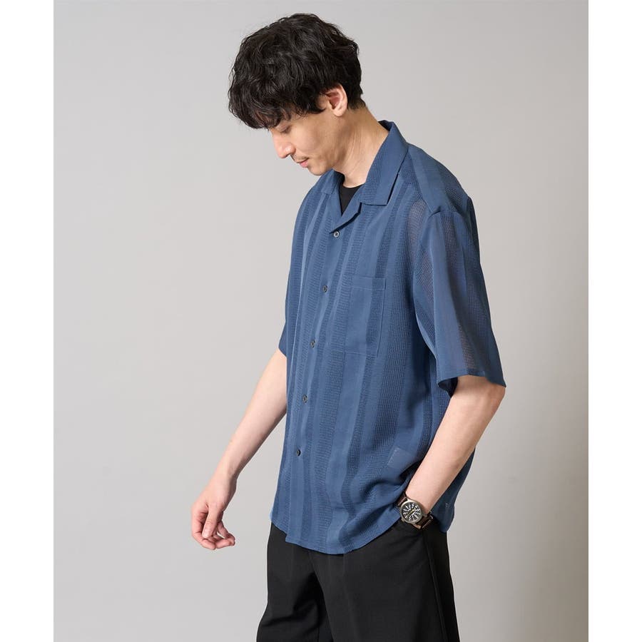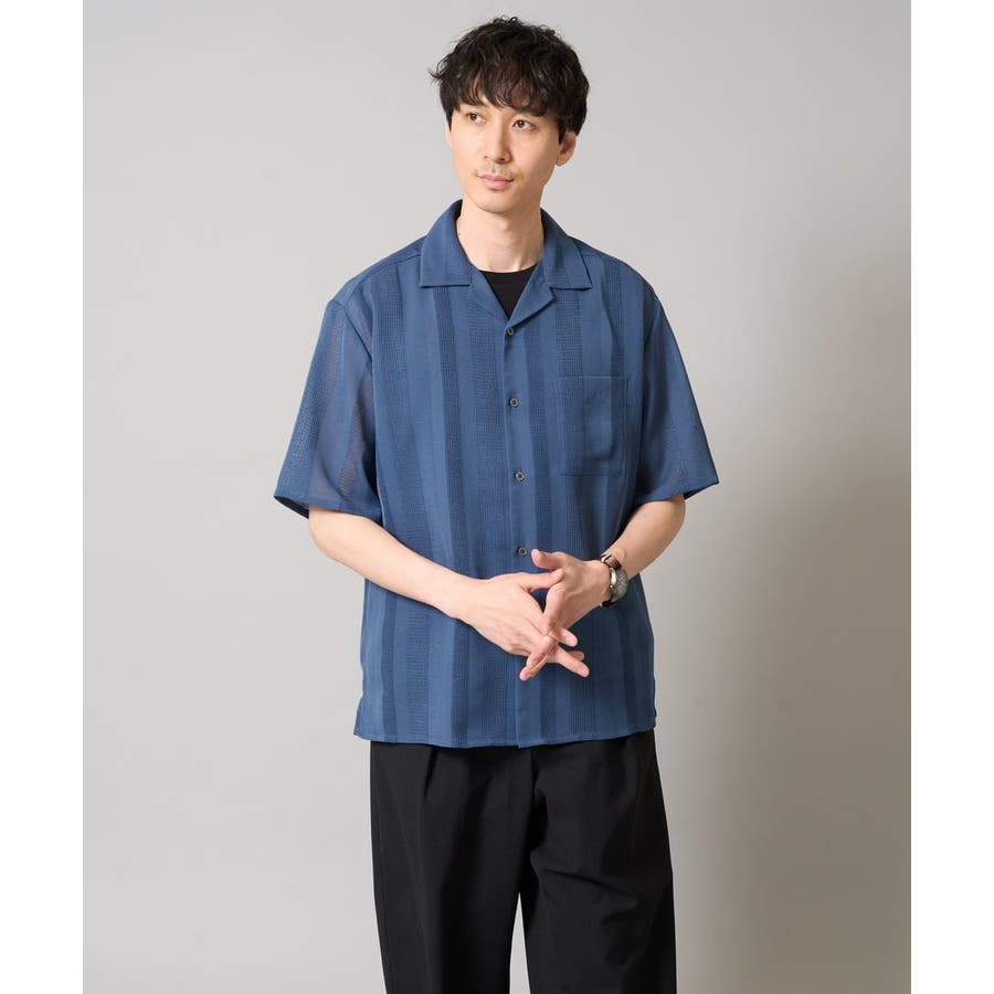 カラミ織り素材にランダムストライプを表現したオープンカラーシャツ◆
