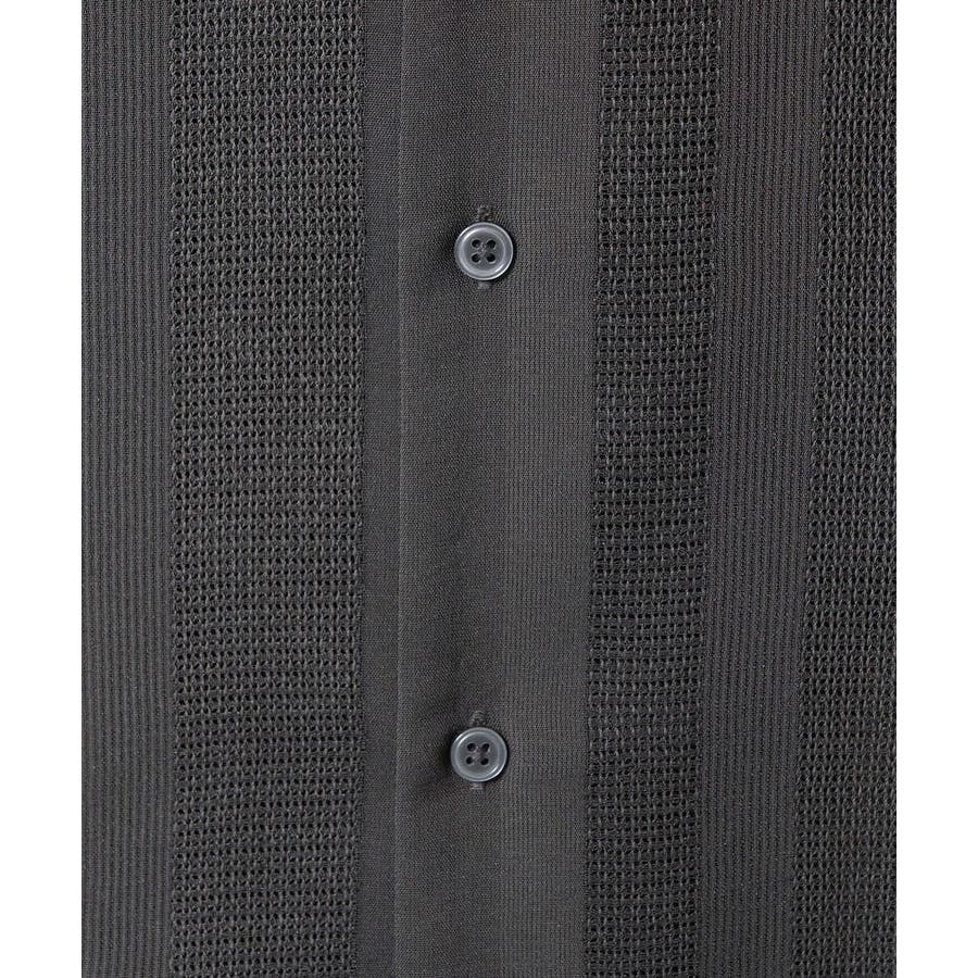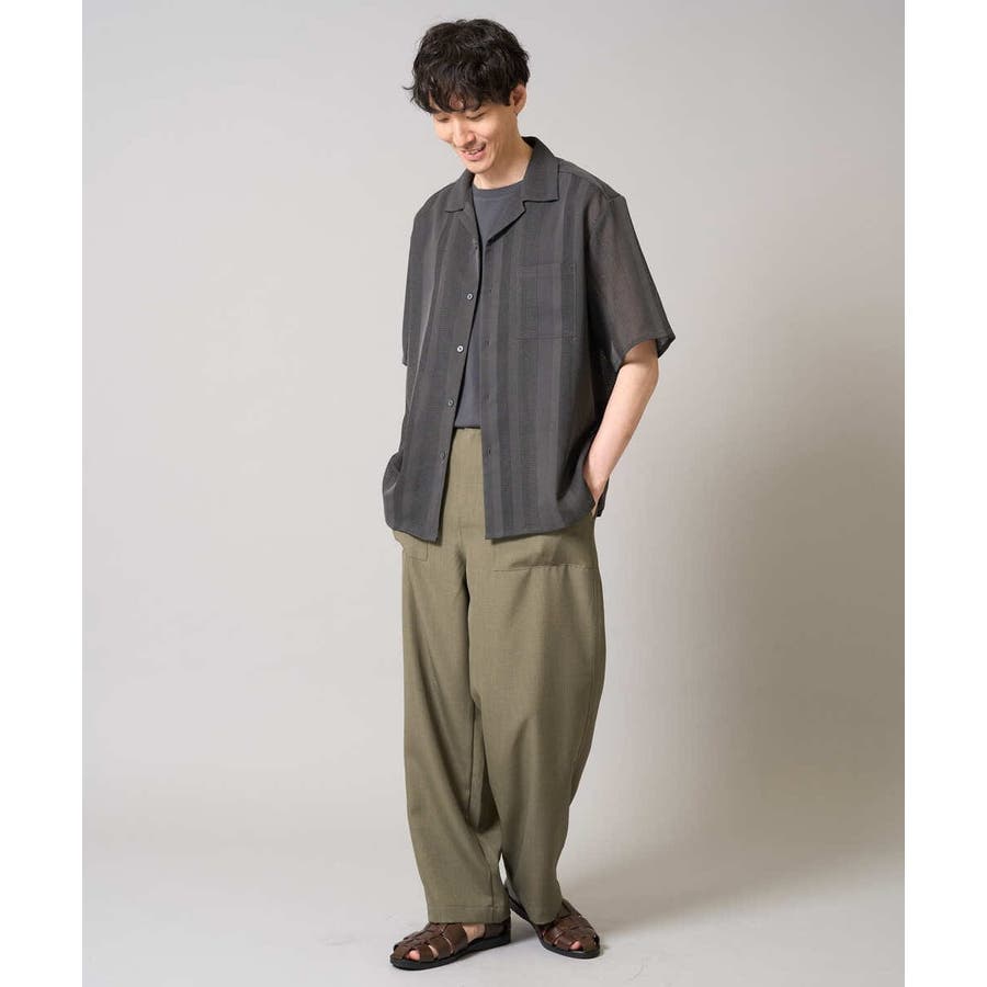 【接触冷感】カラミストライプ五分袖オープンカラーシャツ
