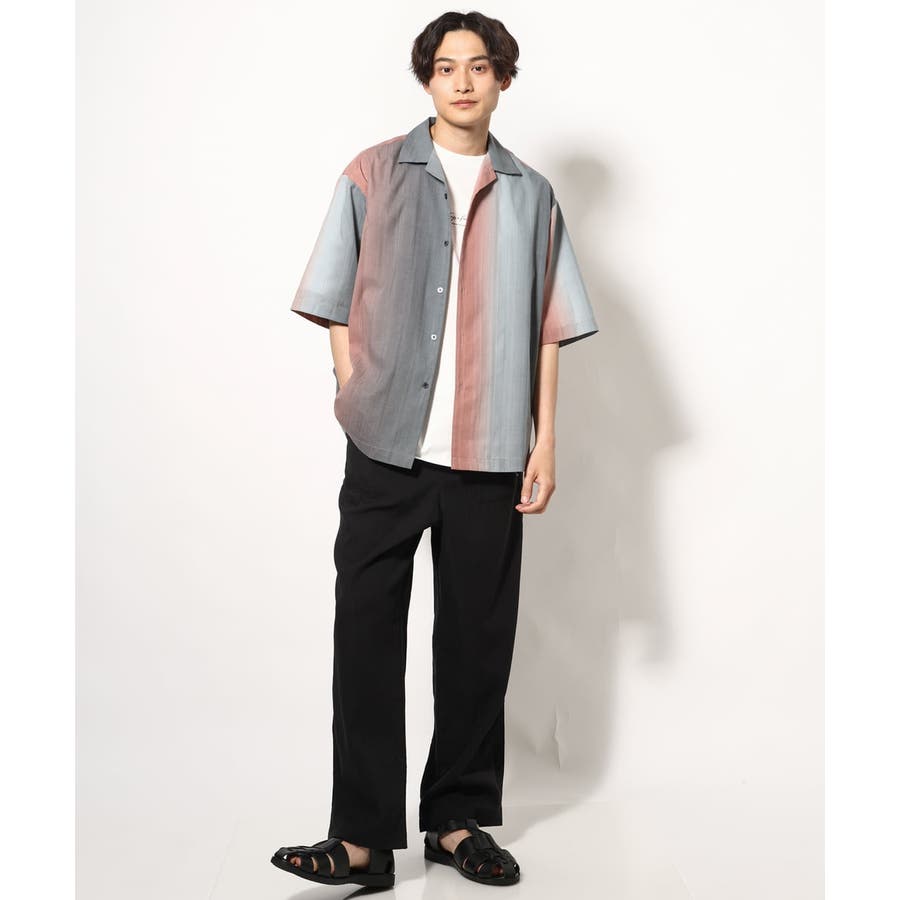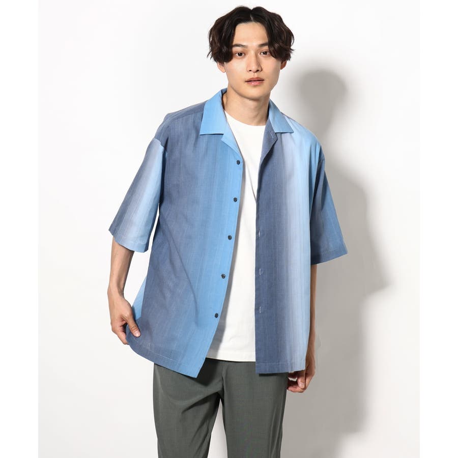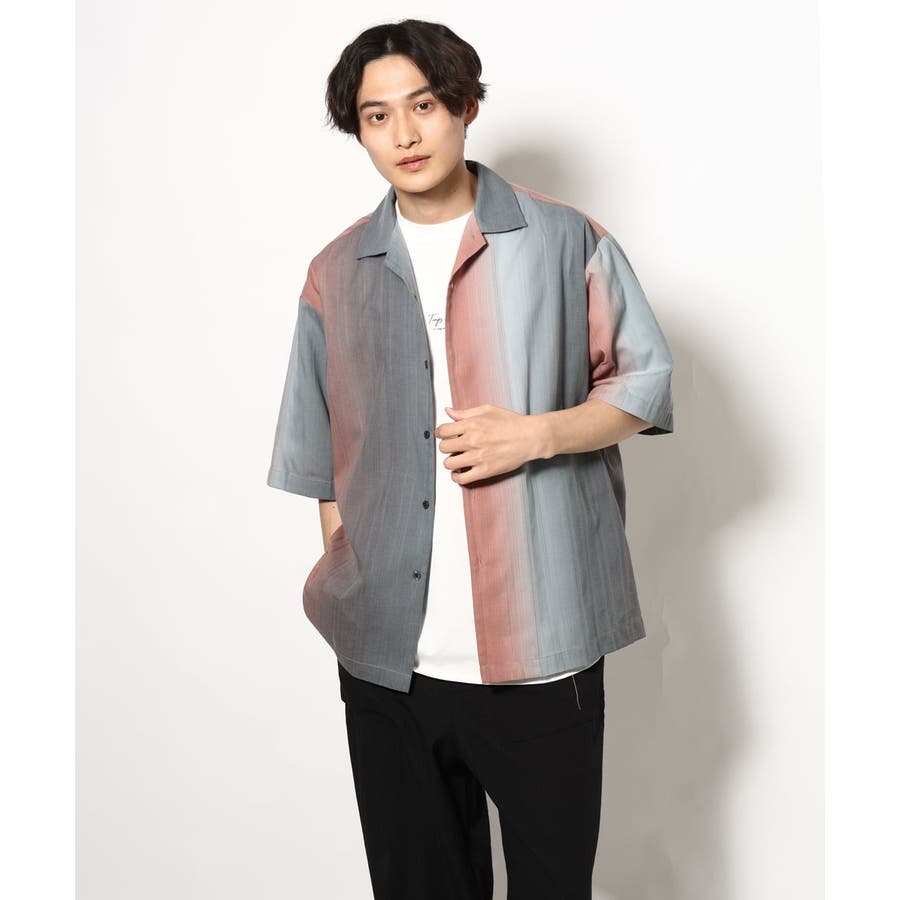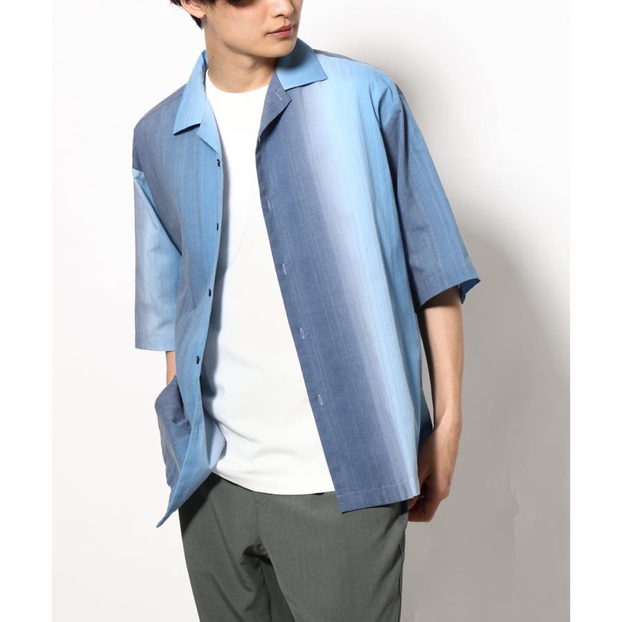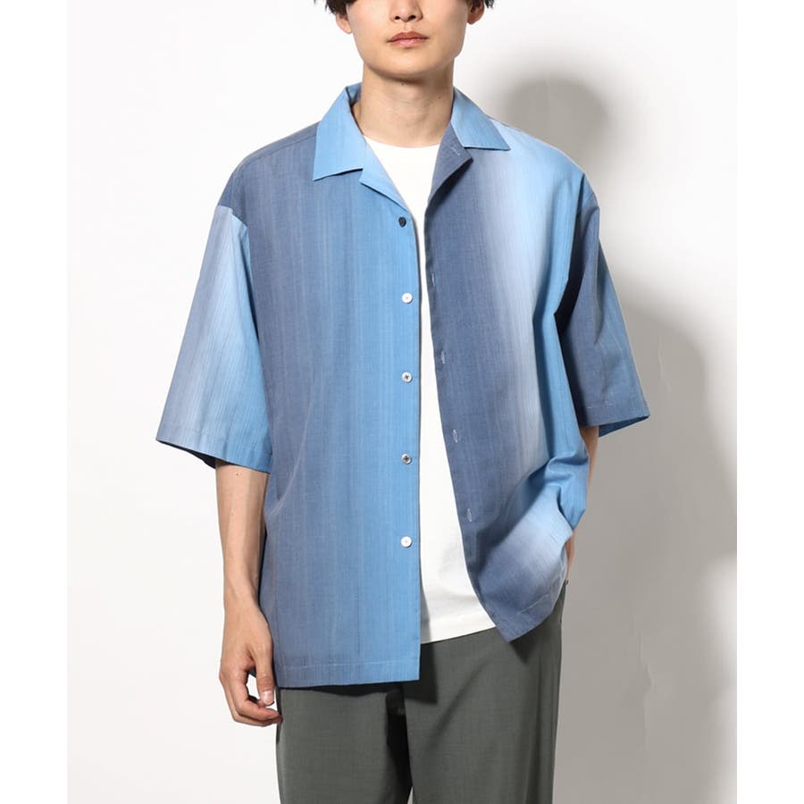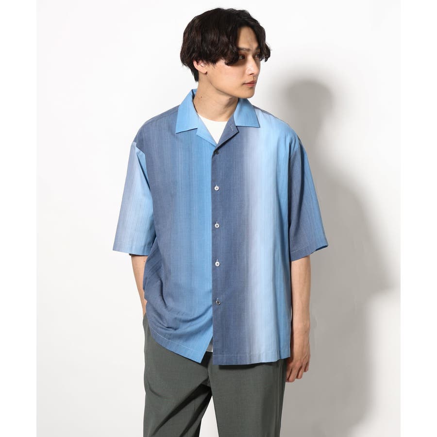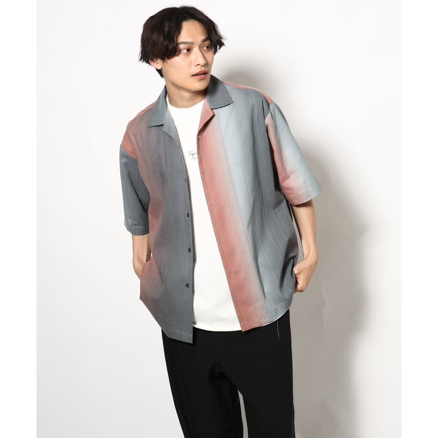 トレンドのグラデーション柄プリントを施したオープンカラ―シャツ。