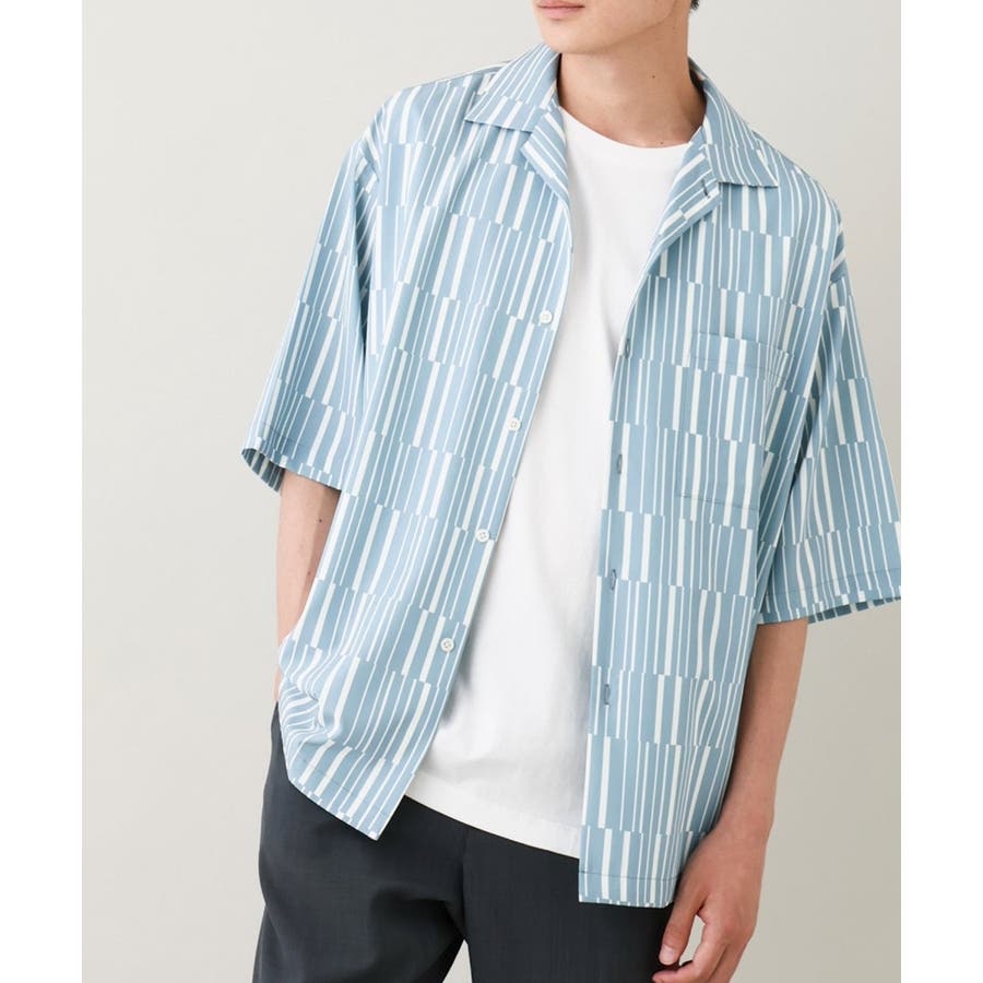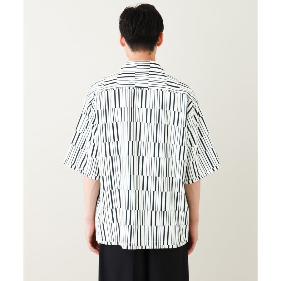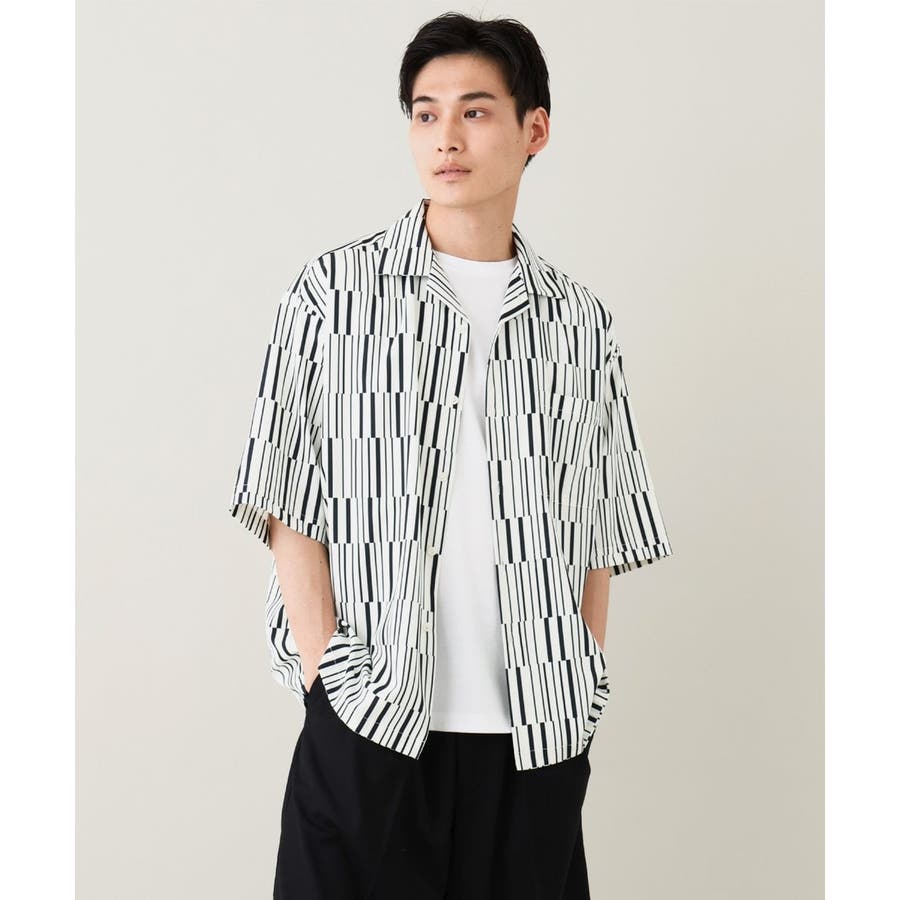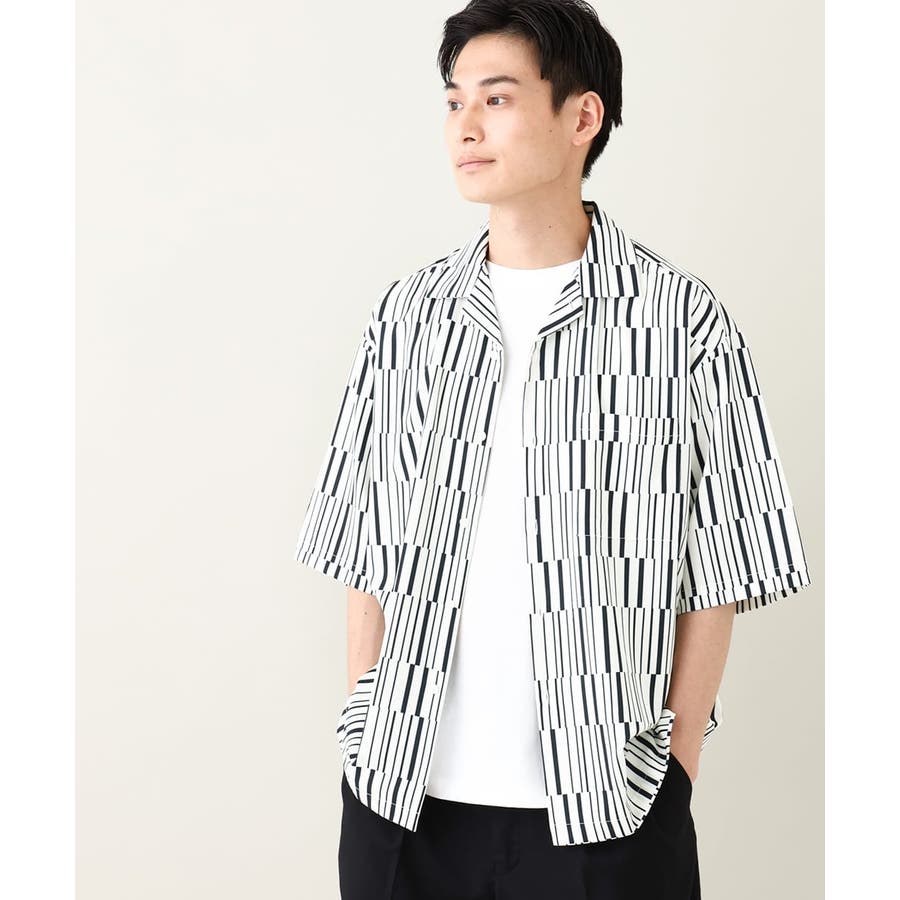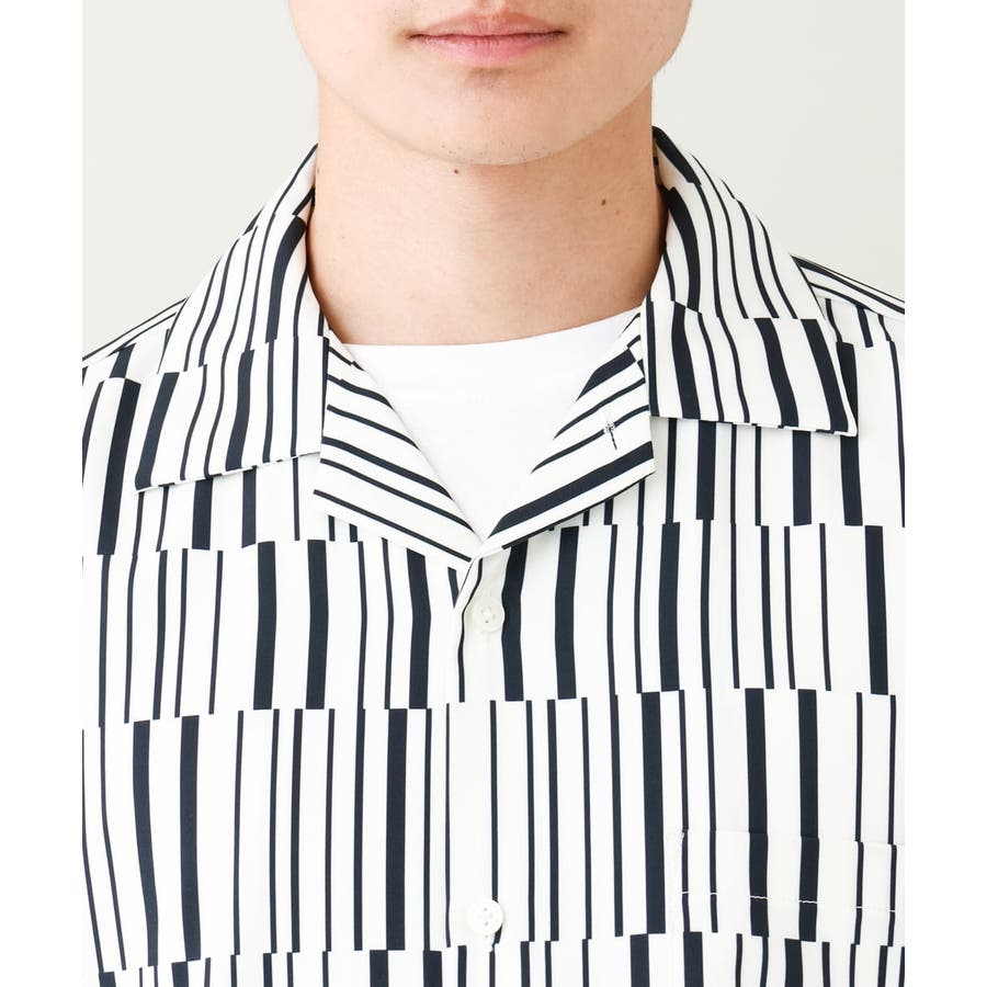 【イージーケア】幾何学ストライププリントオープンカラーシャツ