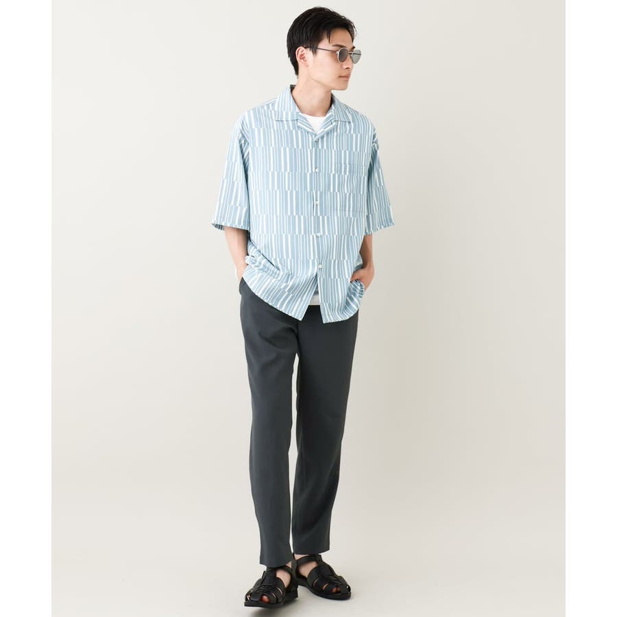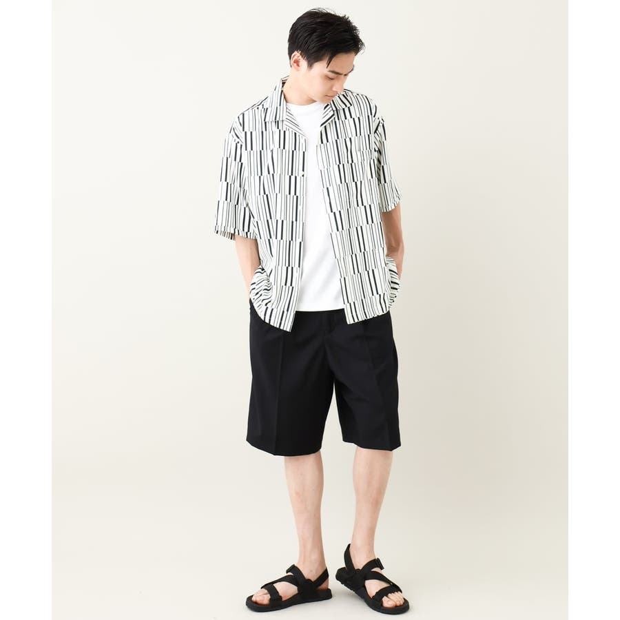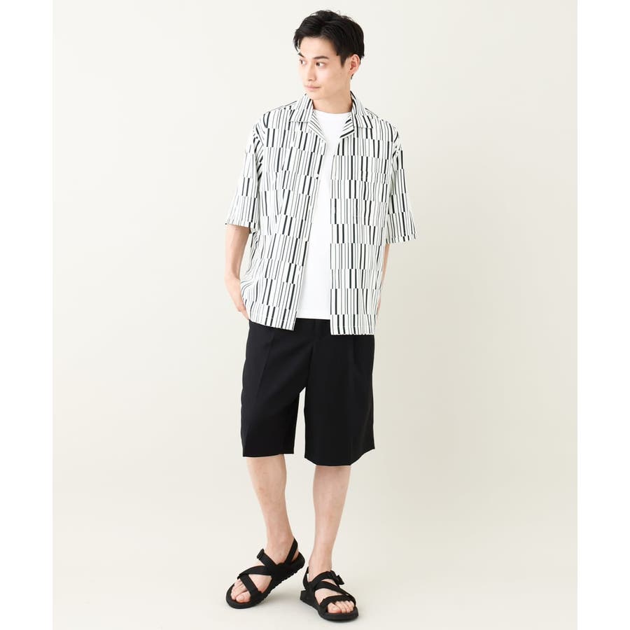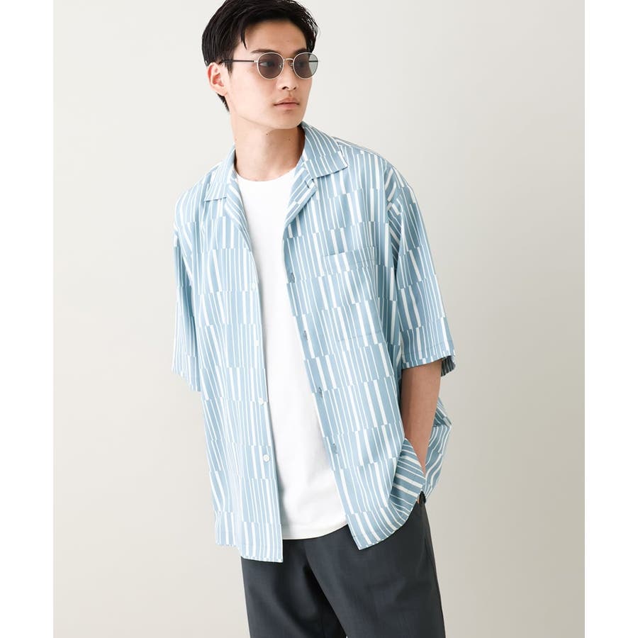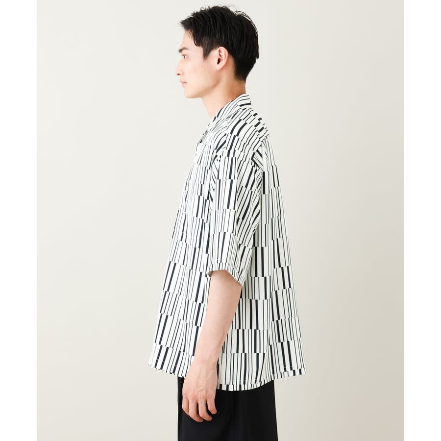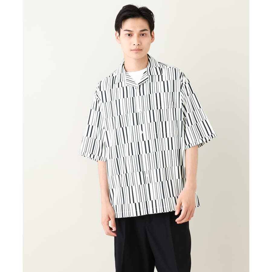 【イージーケア】幾何学ストライププリントオープンカラーシャツ