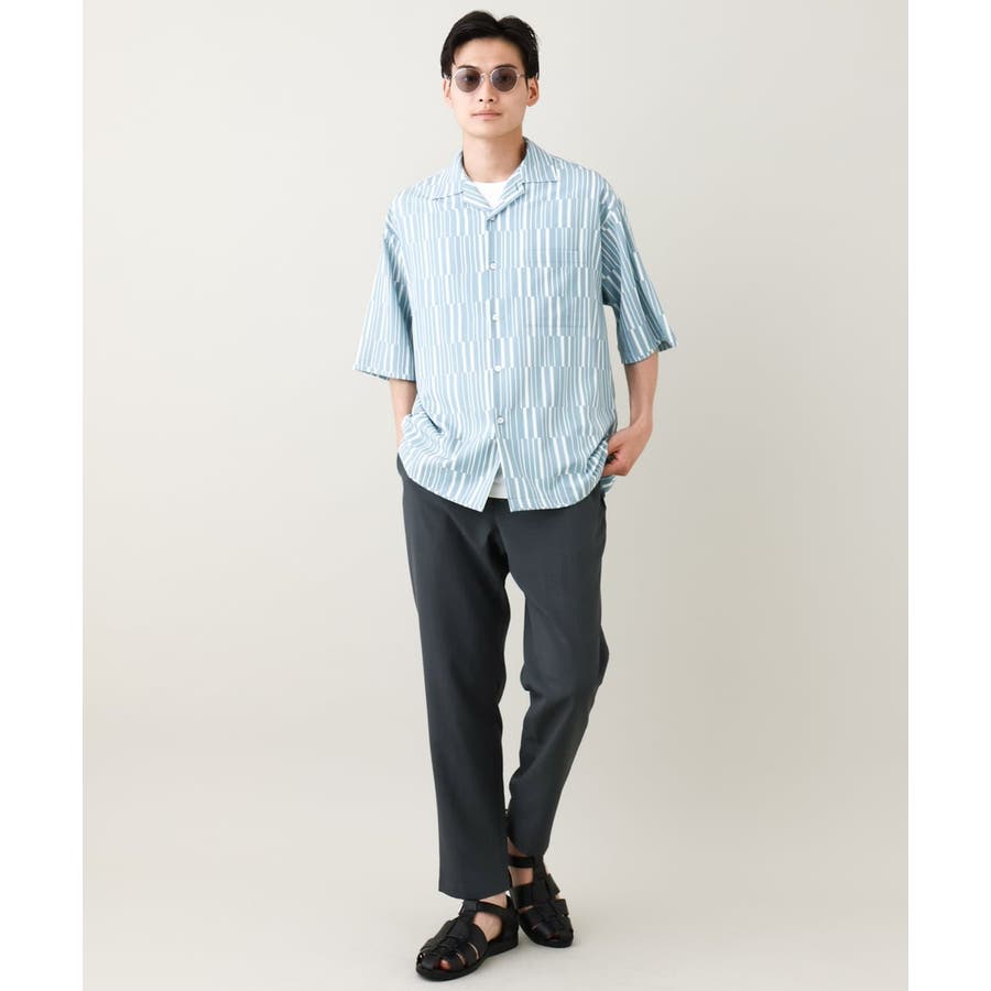清涼感のあるストライプ柄と軽い着心地でコーディネートを一気にアップデートしてくれるトレンドシャツです。