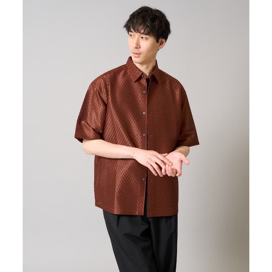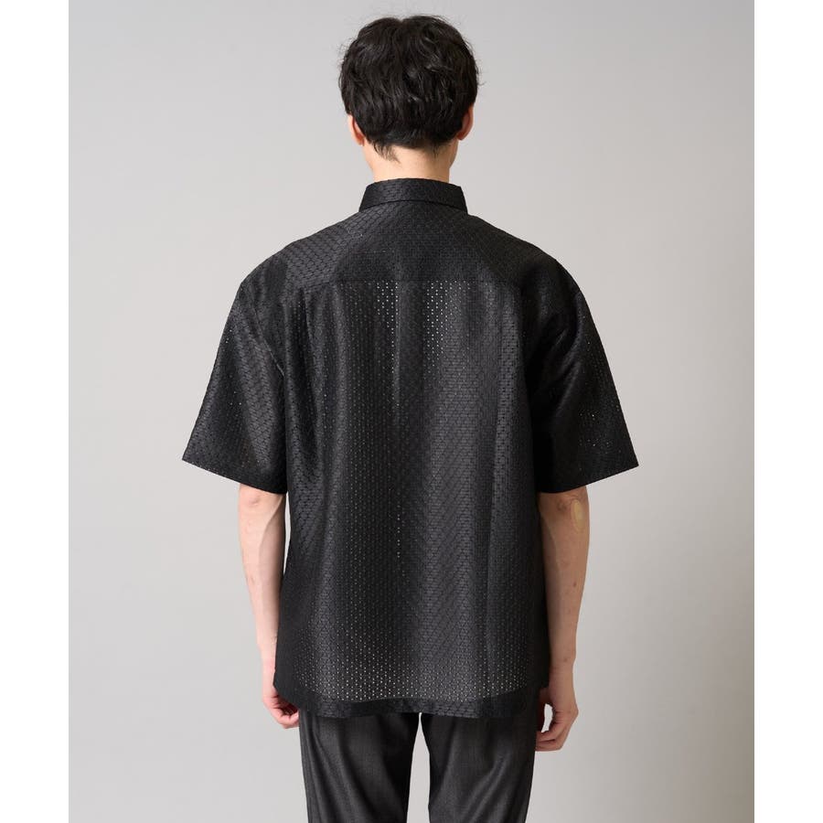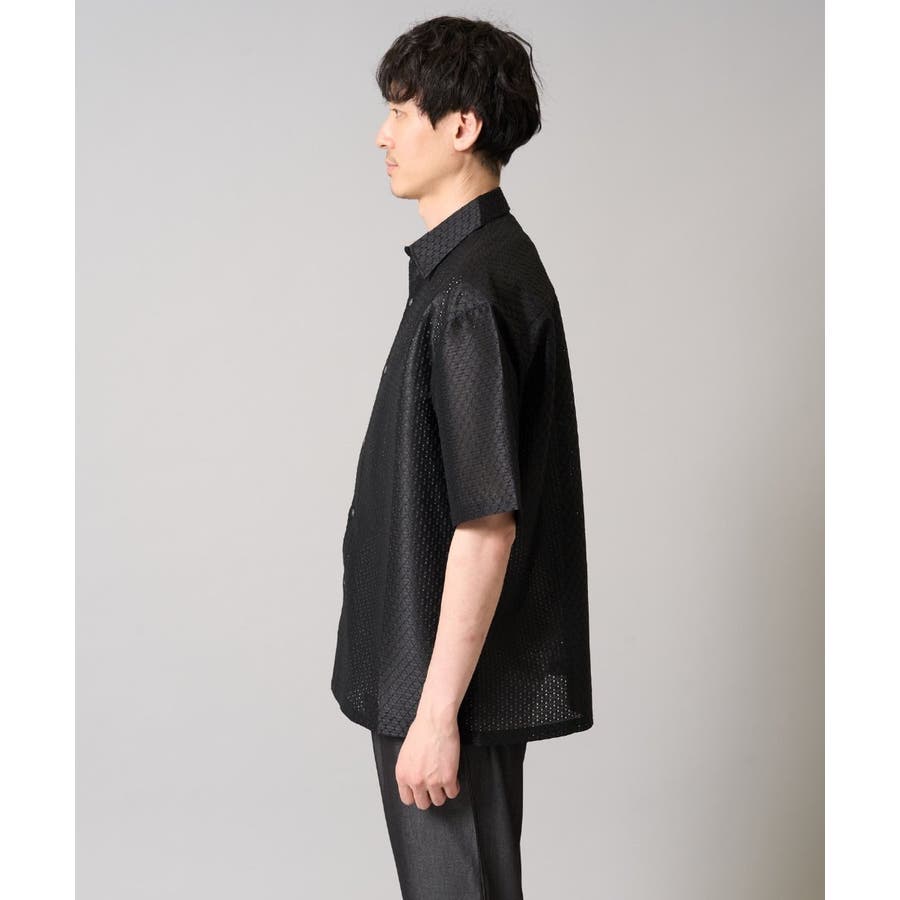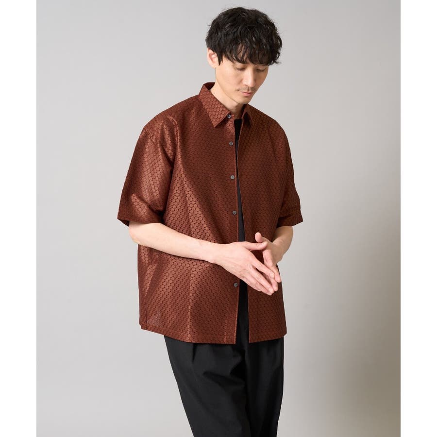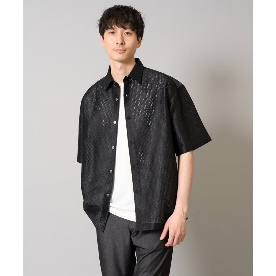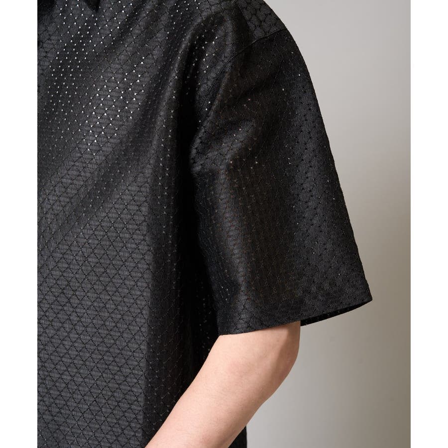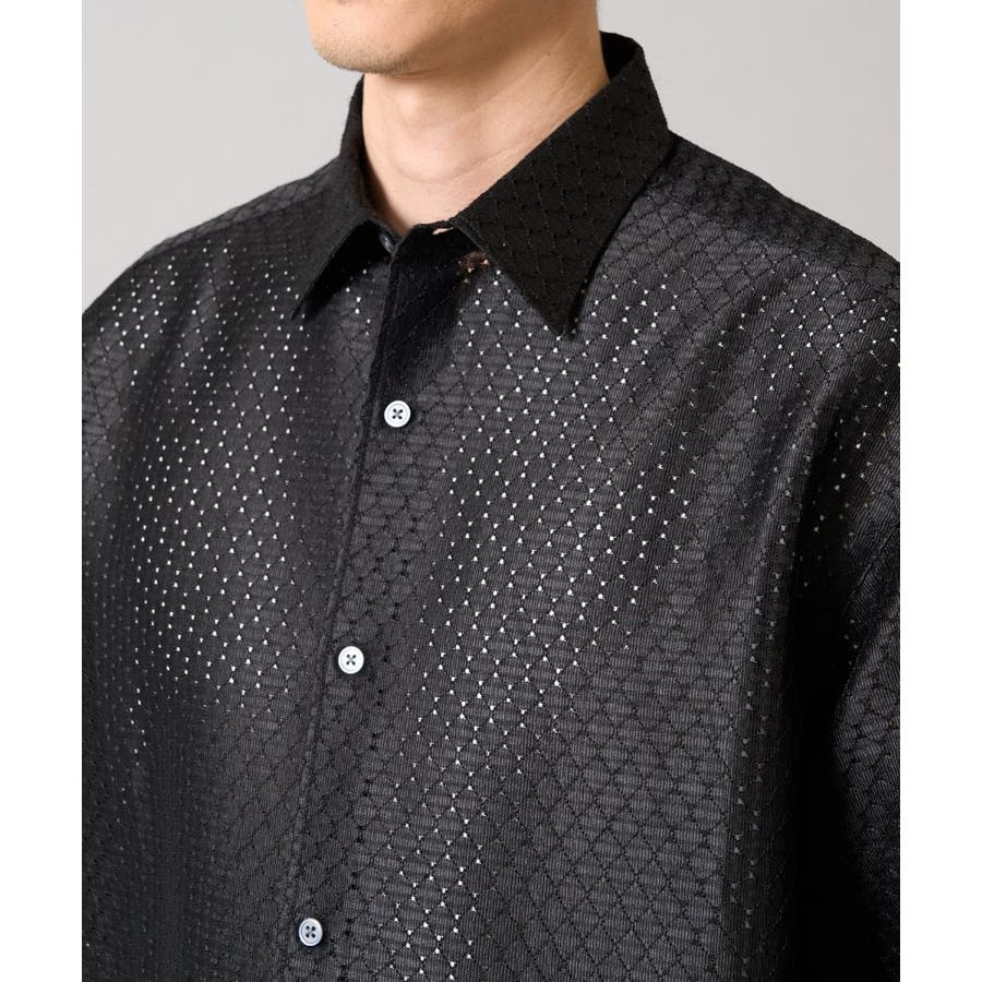 透け感のあるドットジャカード素材を使用した五分袖レギュラーカラ―シャツ◆