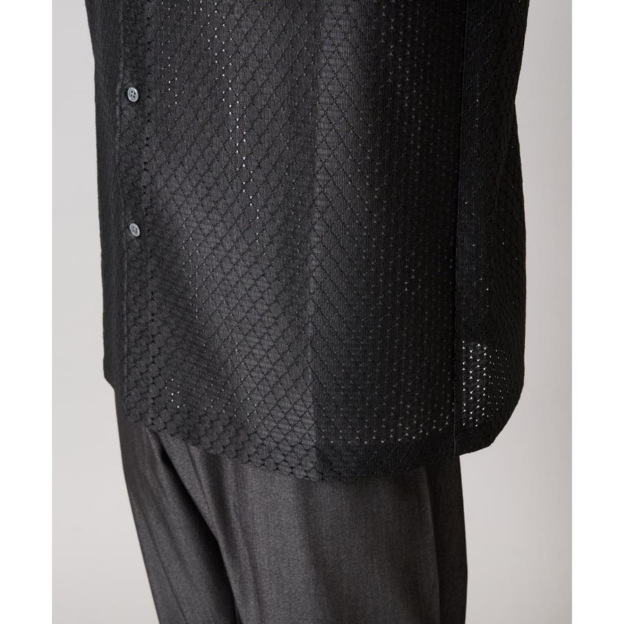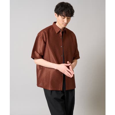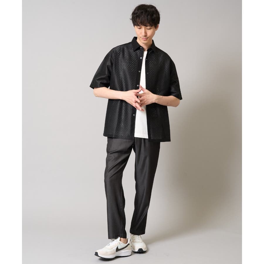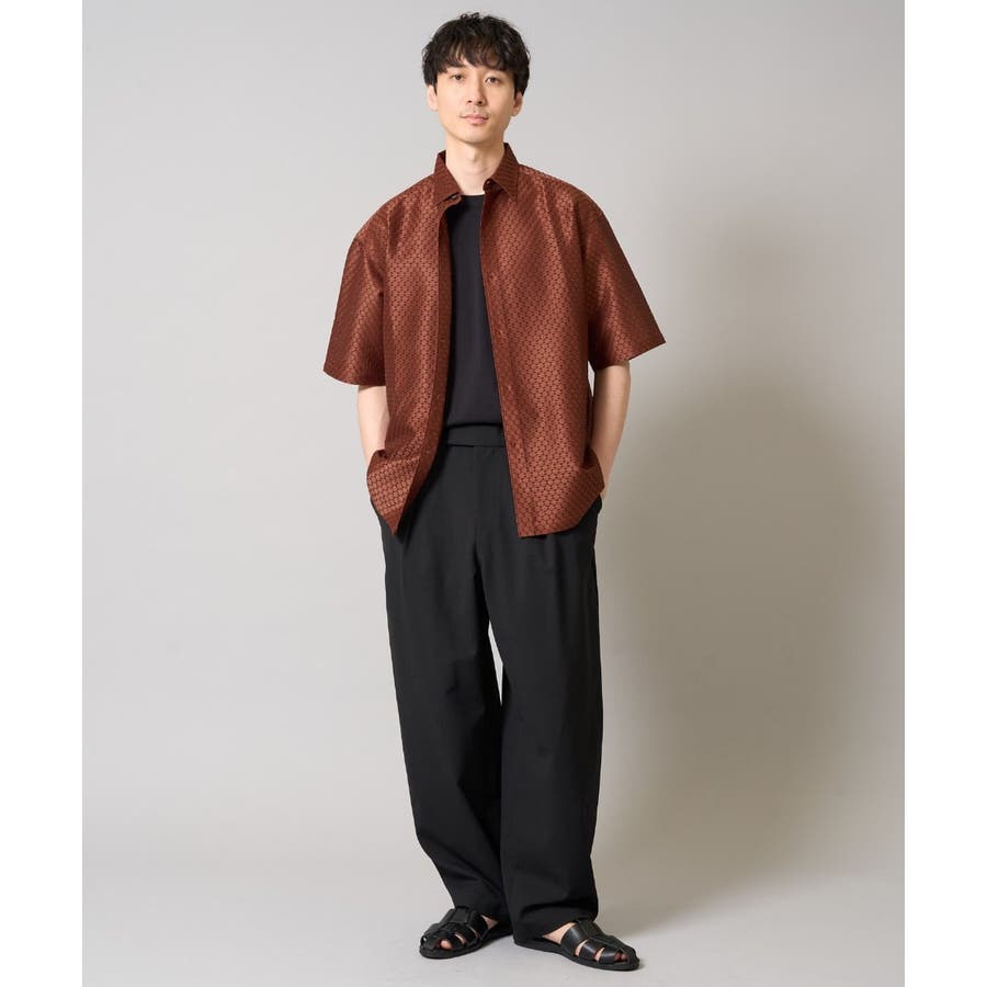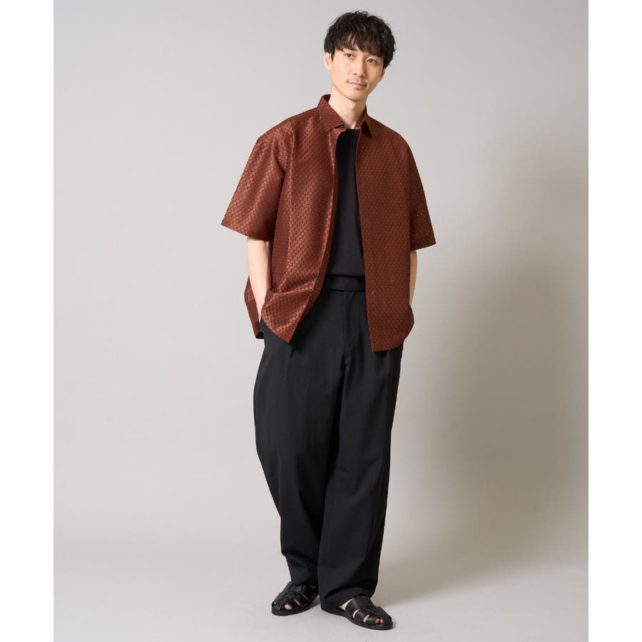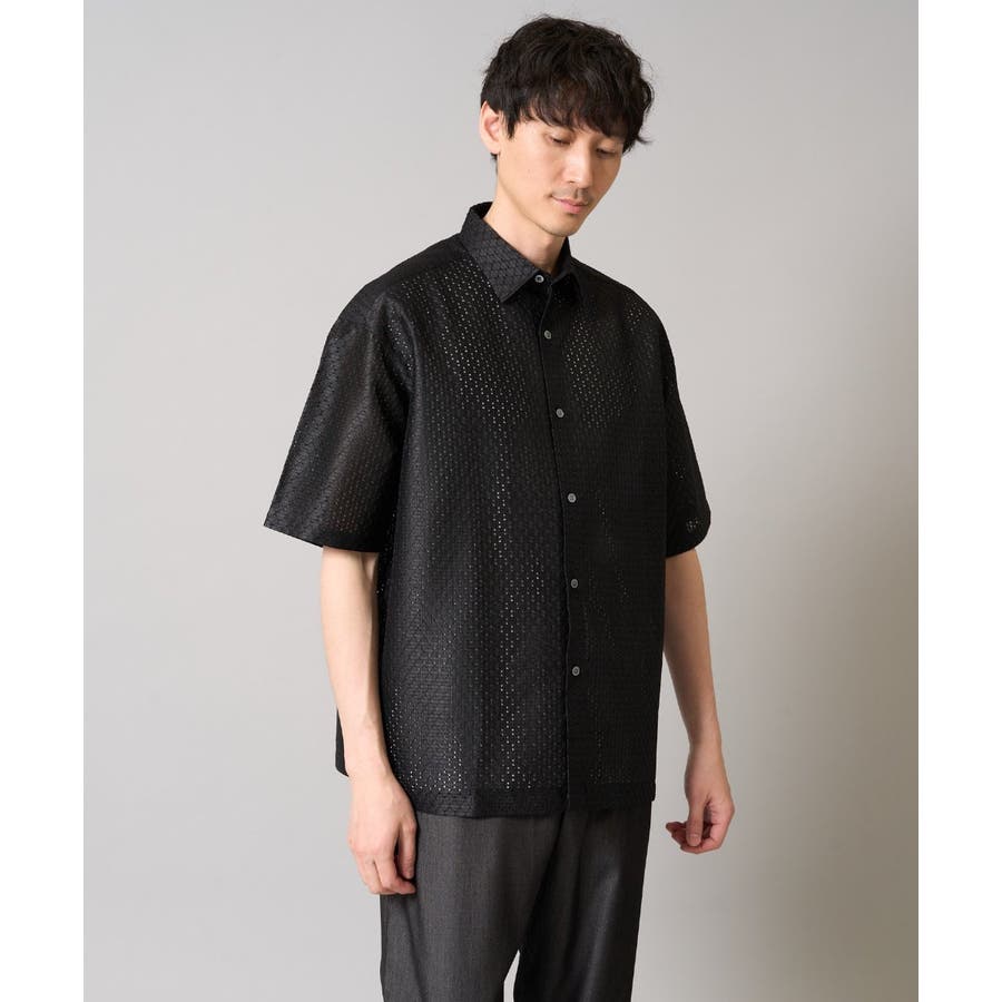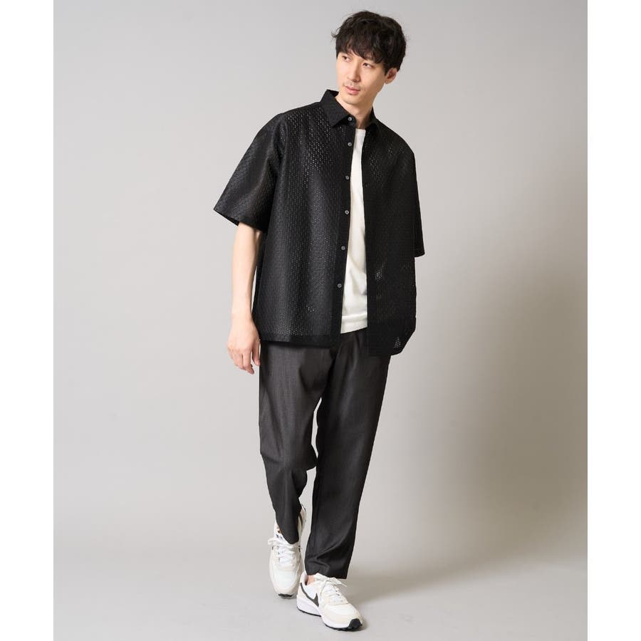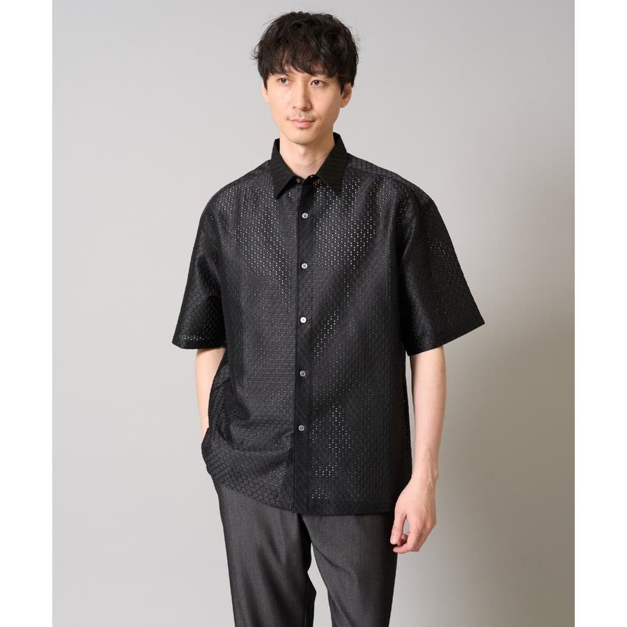 透け感のあるドットジャカード素材を使用した五分袖レギュラーカラ―シャツ◆