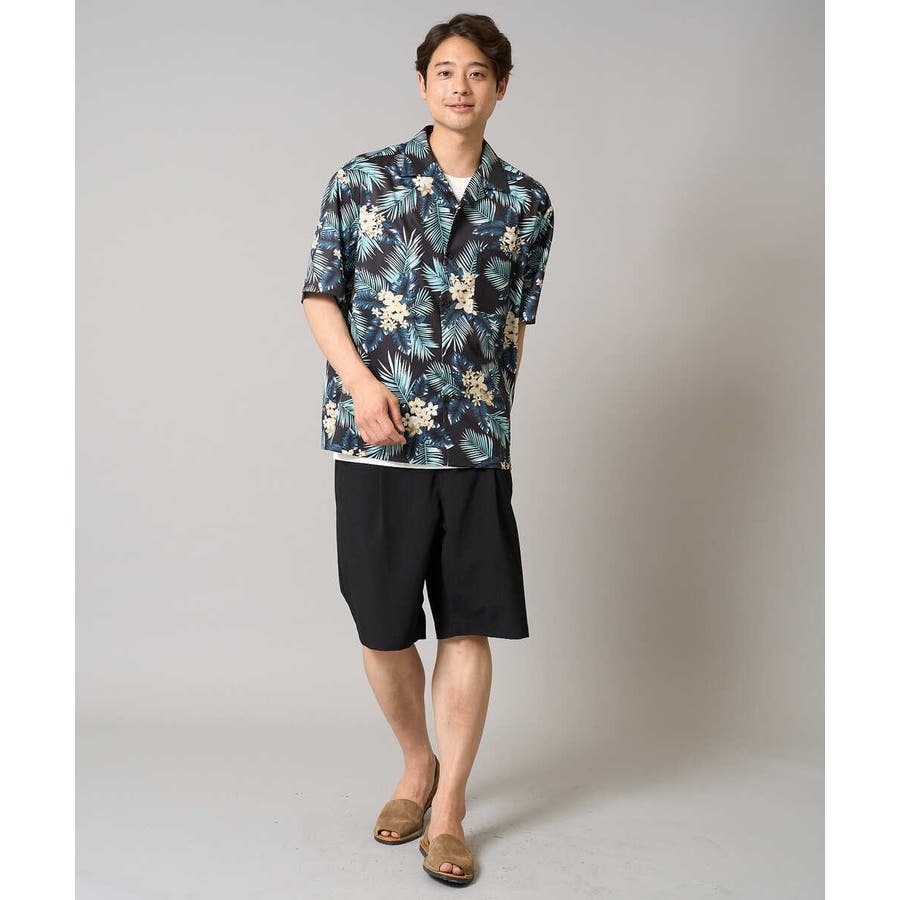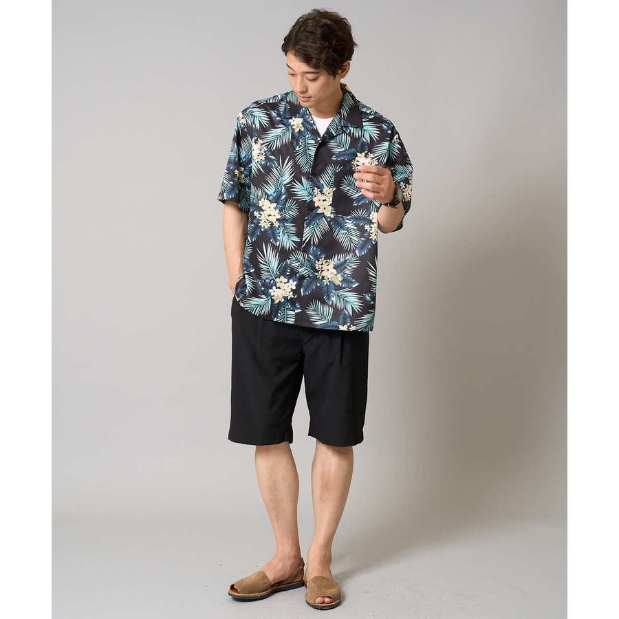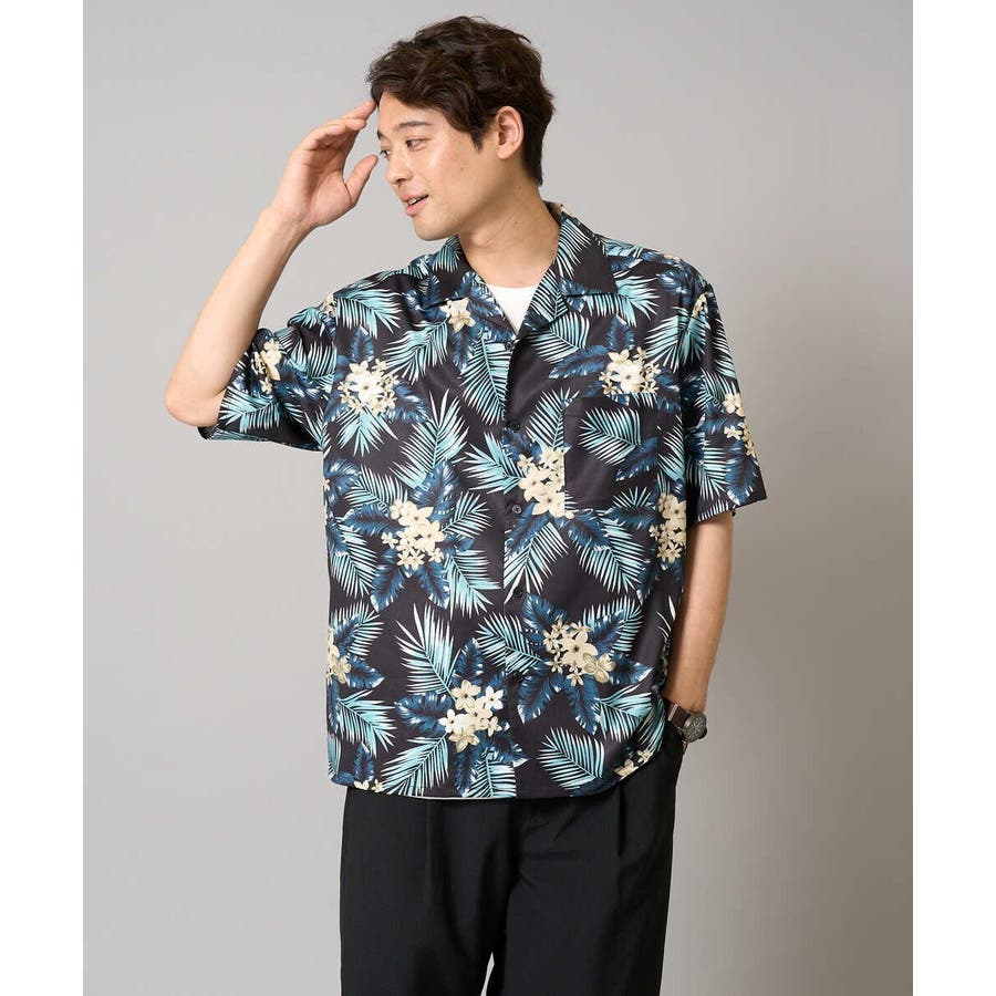 夏定番のアロハ柄プリントを施したオープンカラ―シャツ。