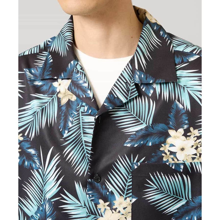 ◆夏に嬉しい多機能素材!リゾート感あふれるアロハ柄プリントを施したオープンカラ―シャツ◆