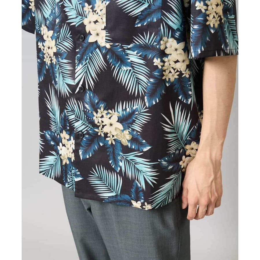 アロハ柄プリント五分袖オープンカラーシャツ