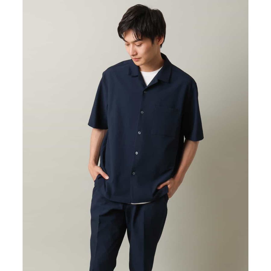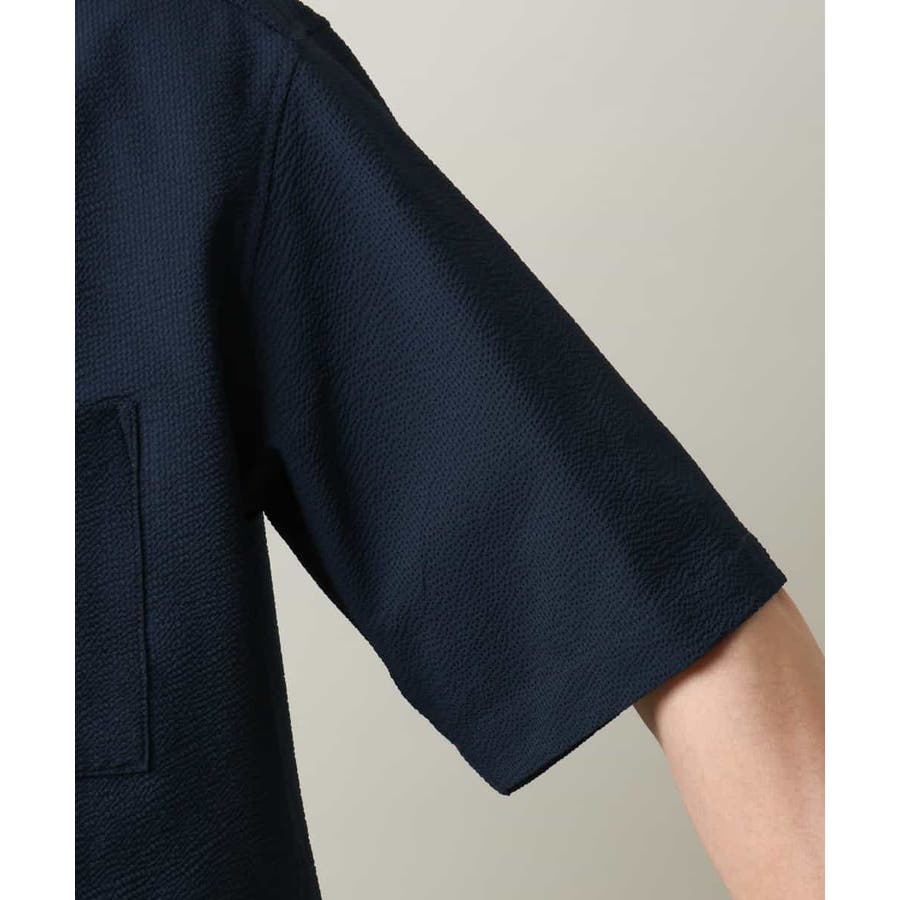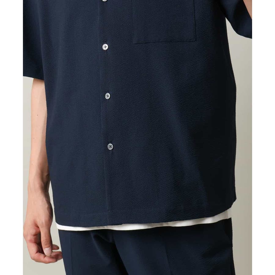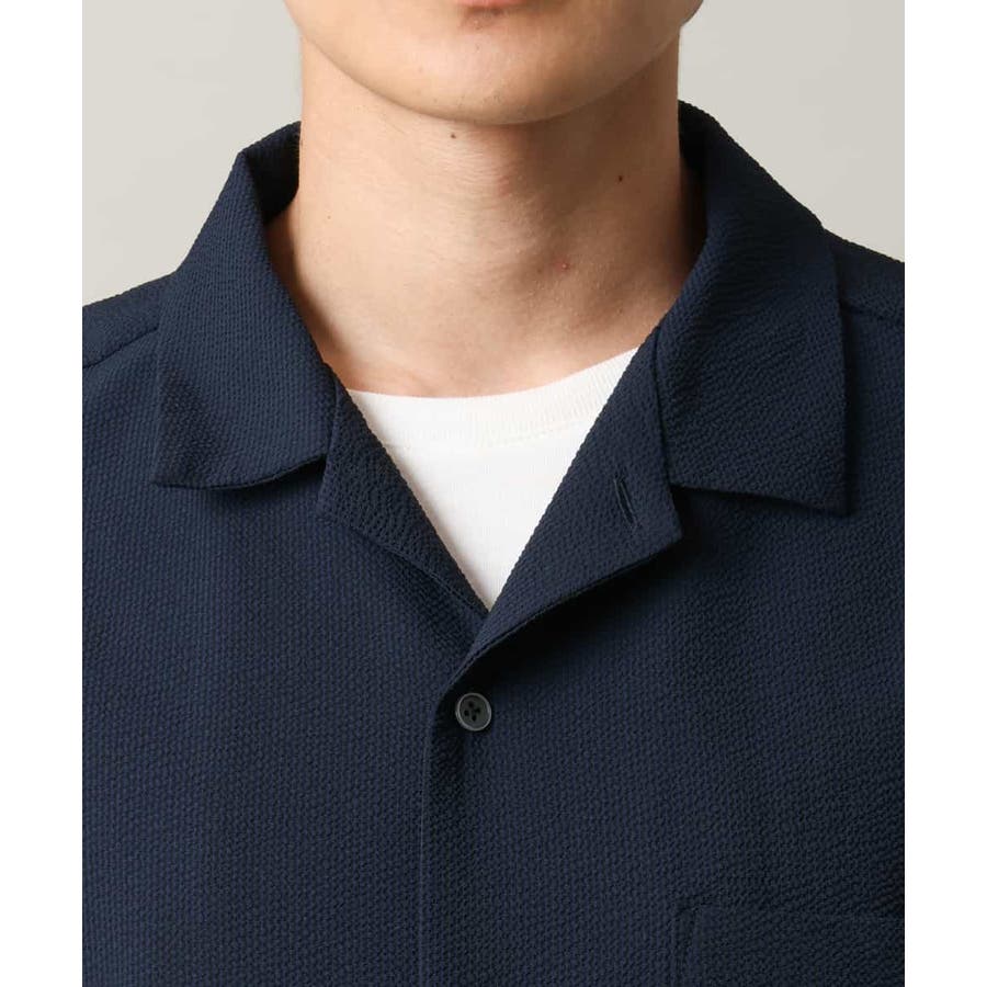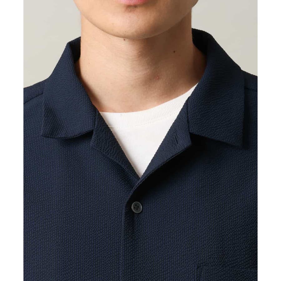 清涼感のあるシアサッカー素材を使用したオープンカラーシャツ。