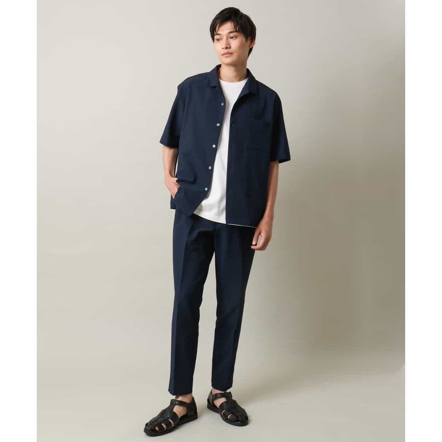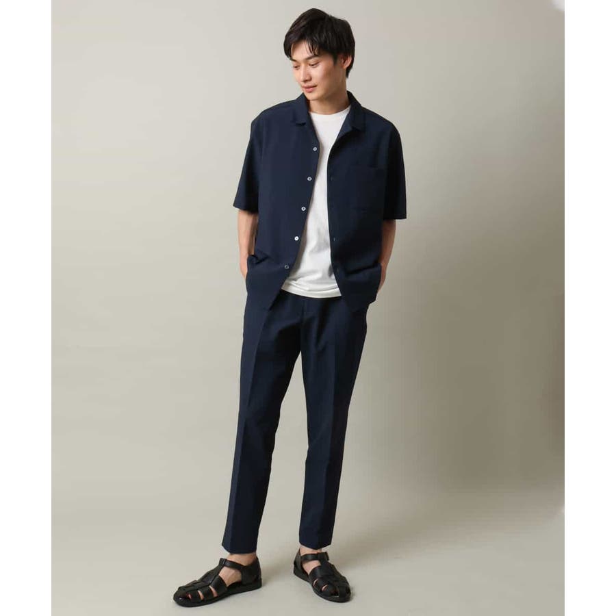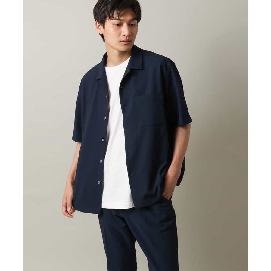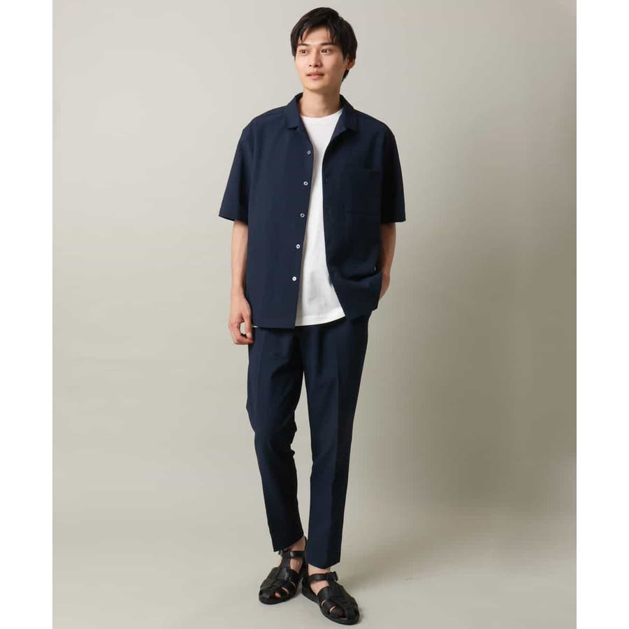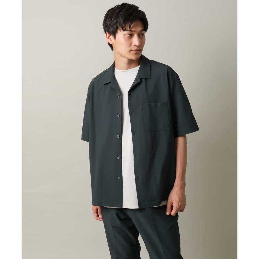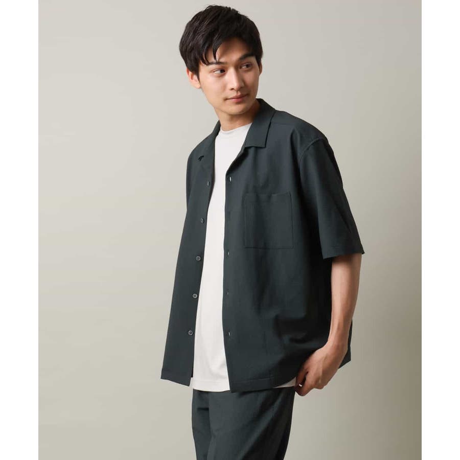 清涼感のあるシアサッカー素材を使用したオープンカラーシャツ。