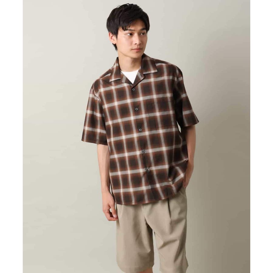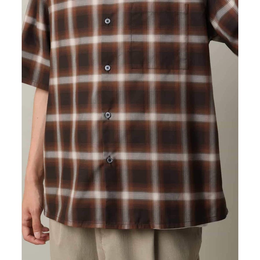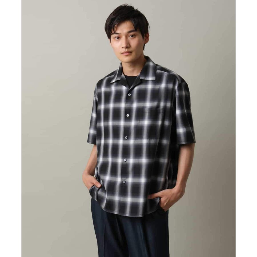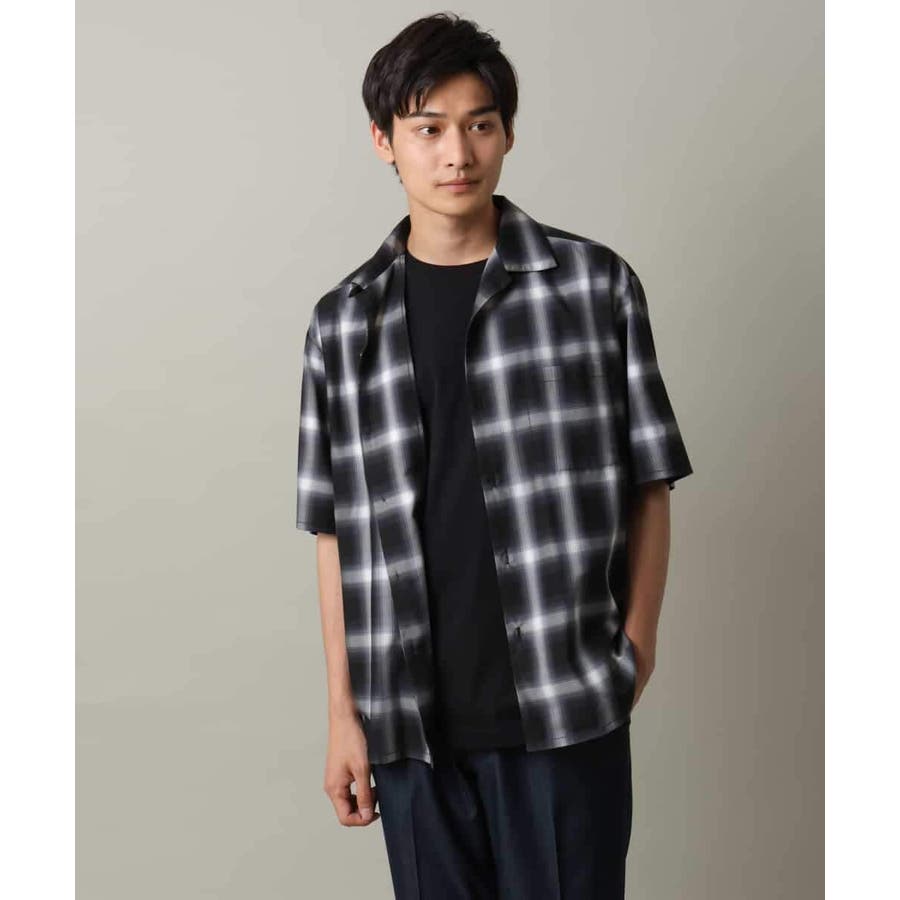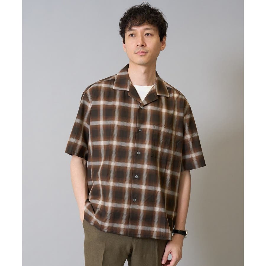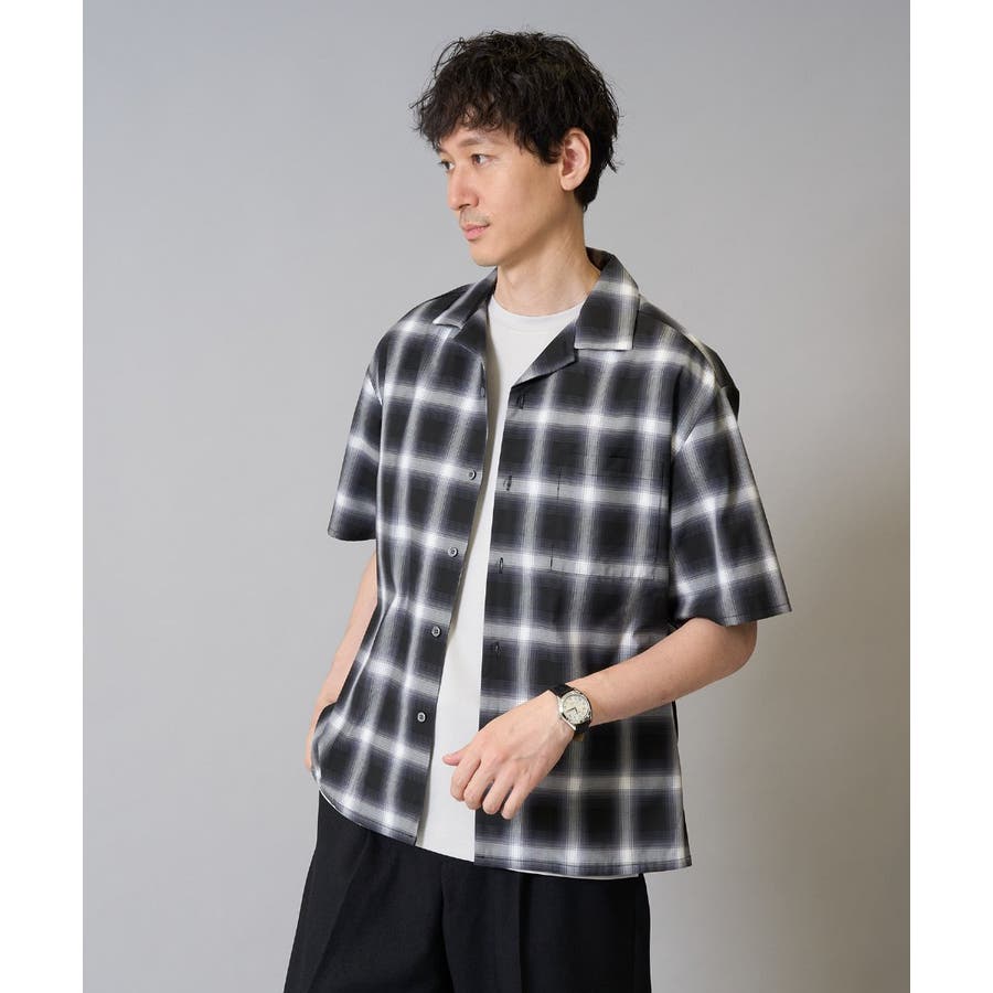 薄手のオンブレチェック素材を使用したオープンカラーシャツ。