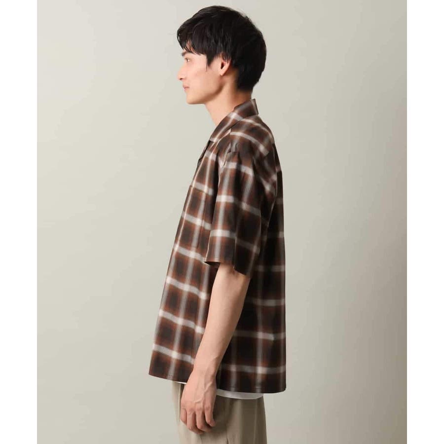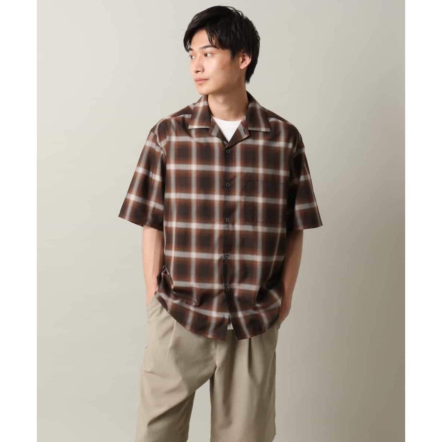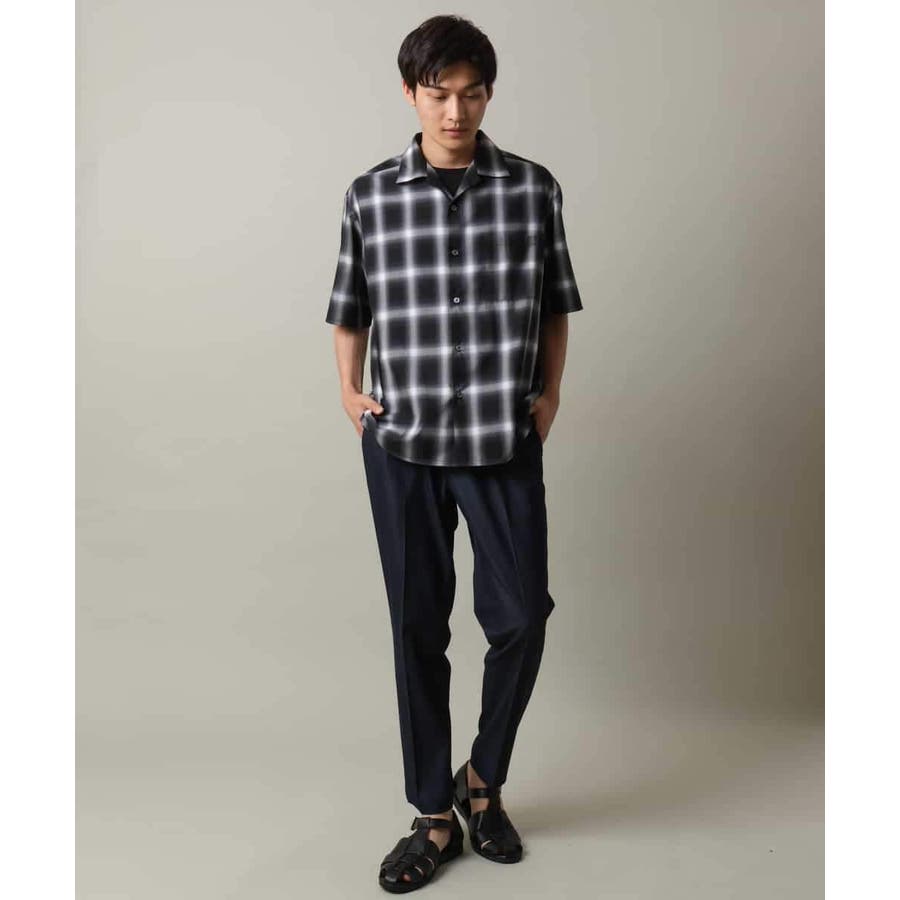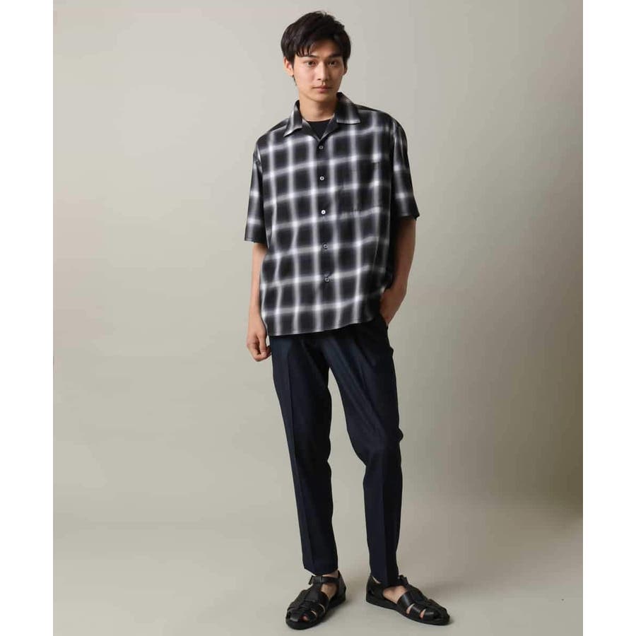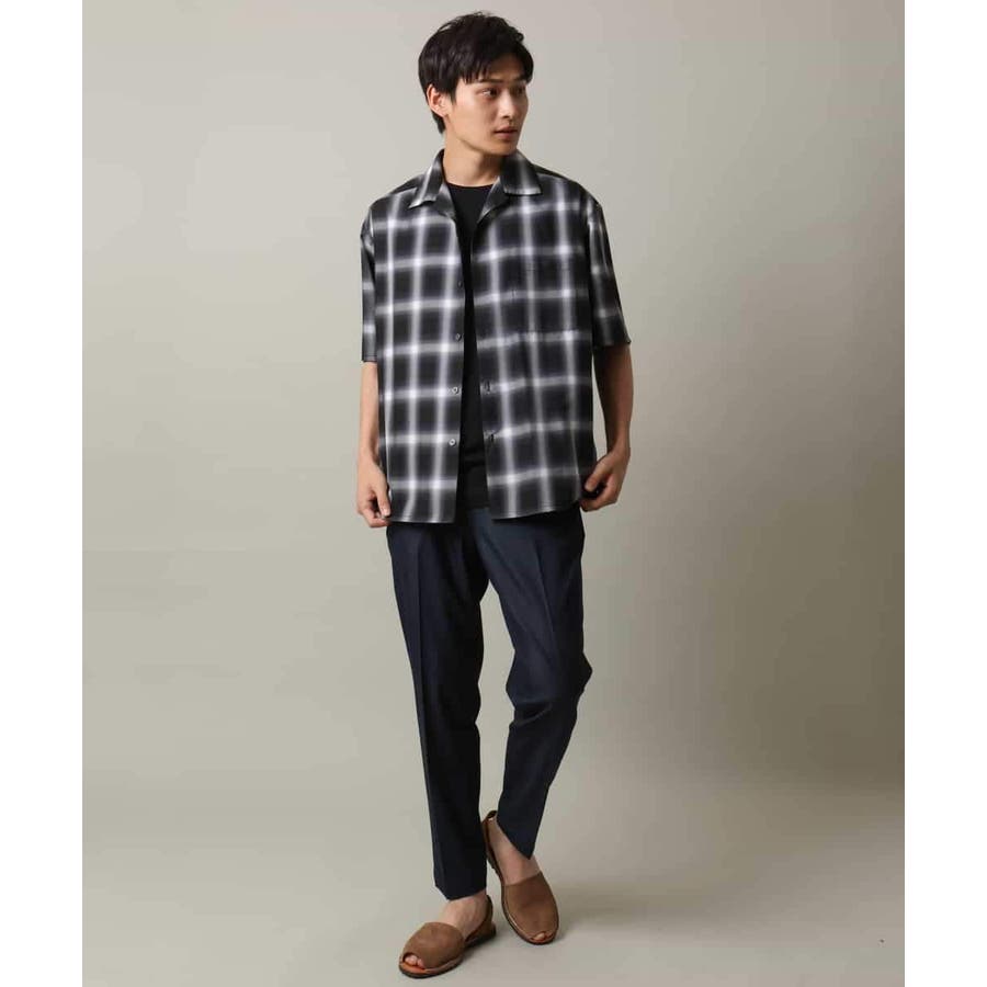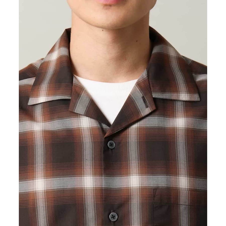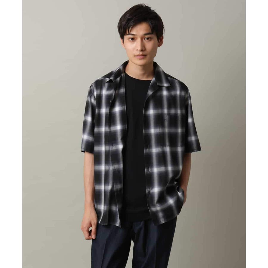 薄手のオンブレチェック素材を使用したオープンカラーシャツ。