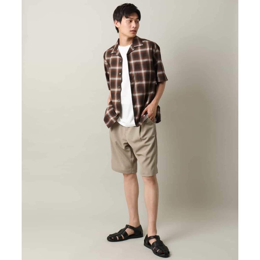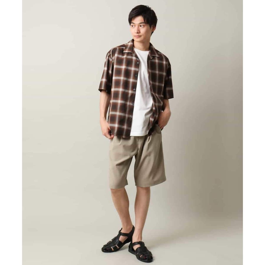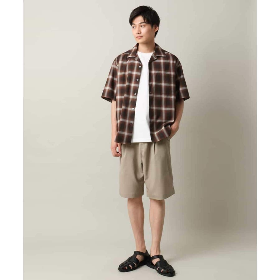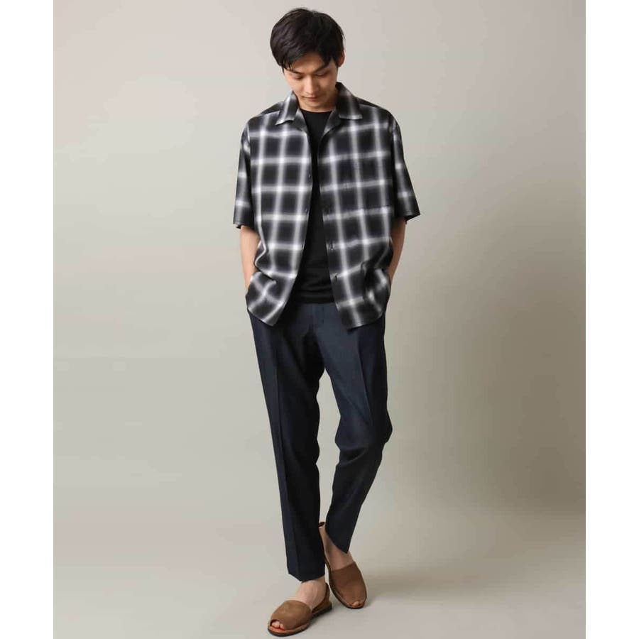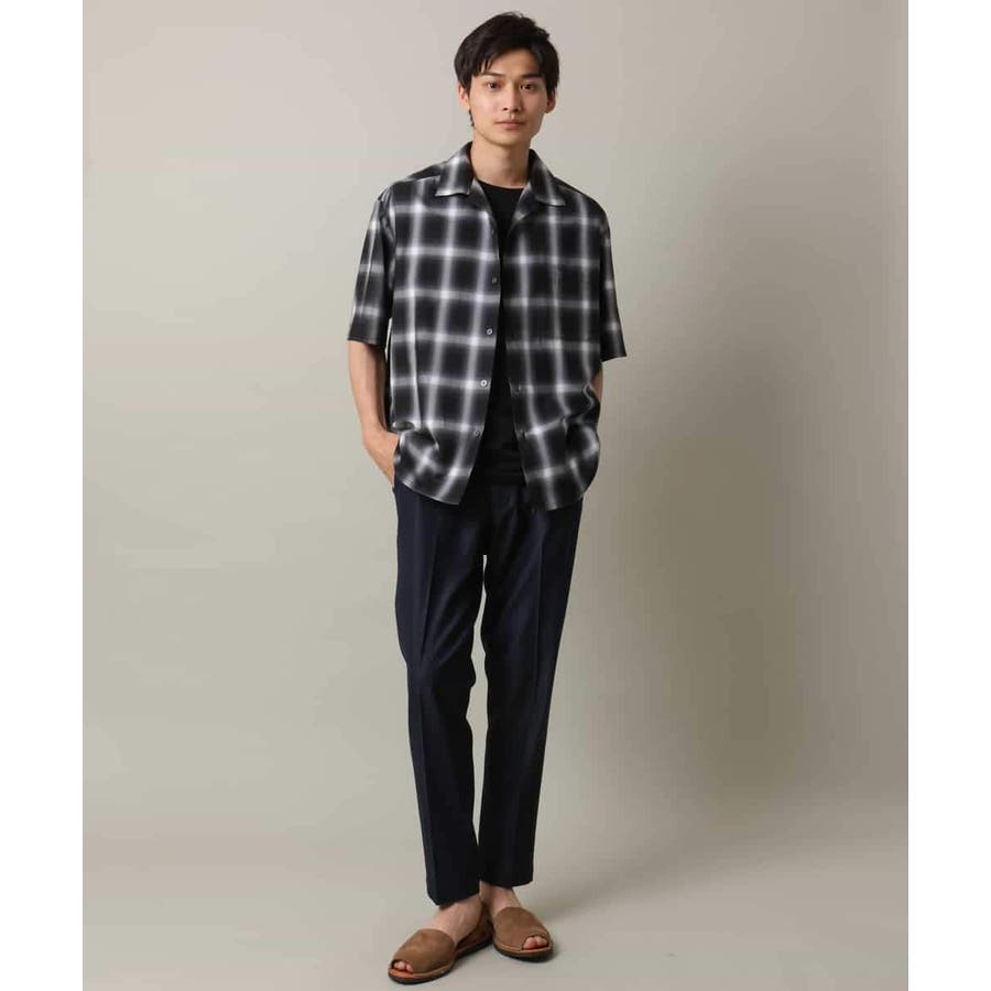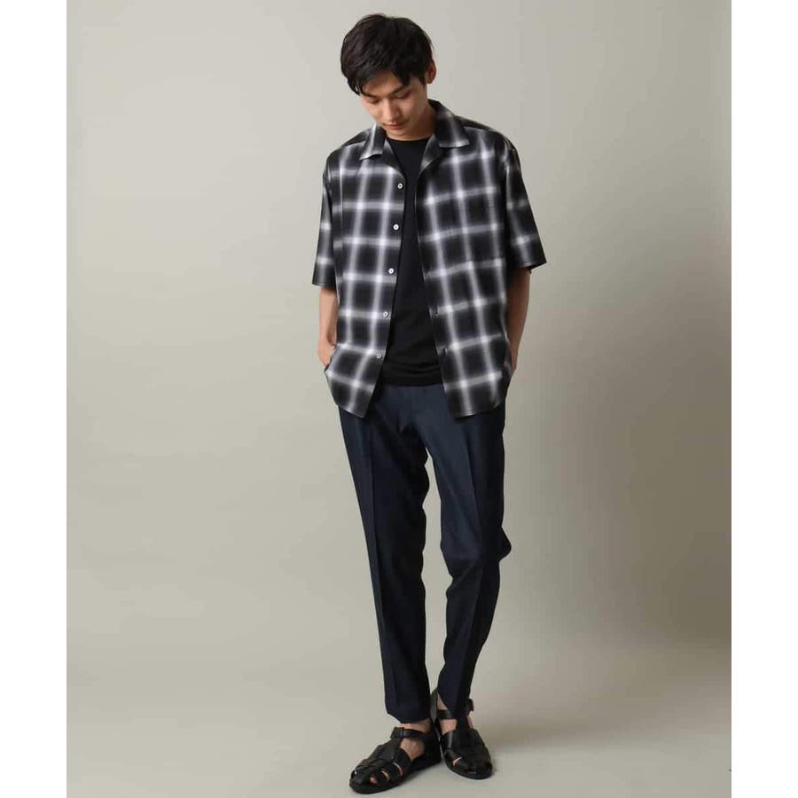 薄手のオンブレチェック素材を使用したオープンカラーシャツ。