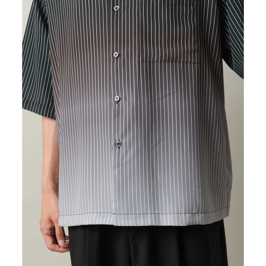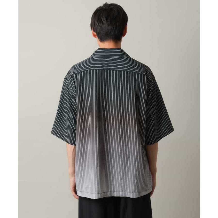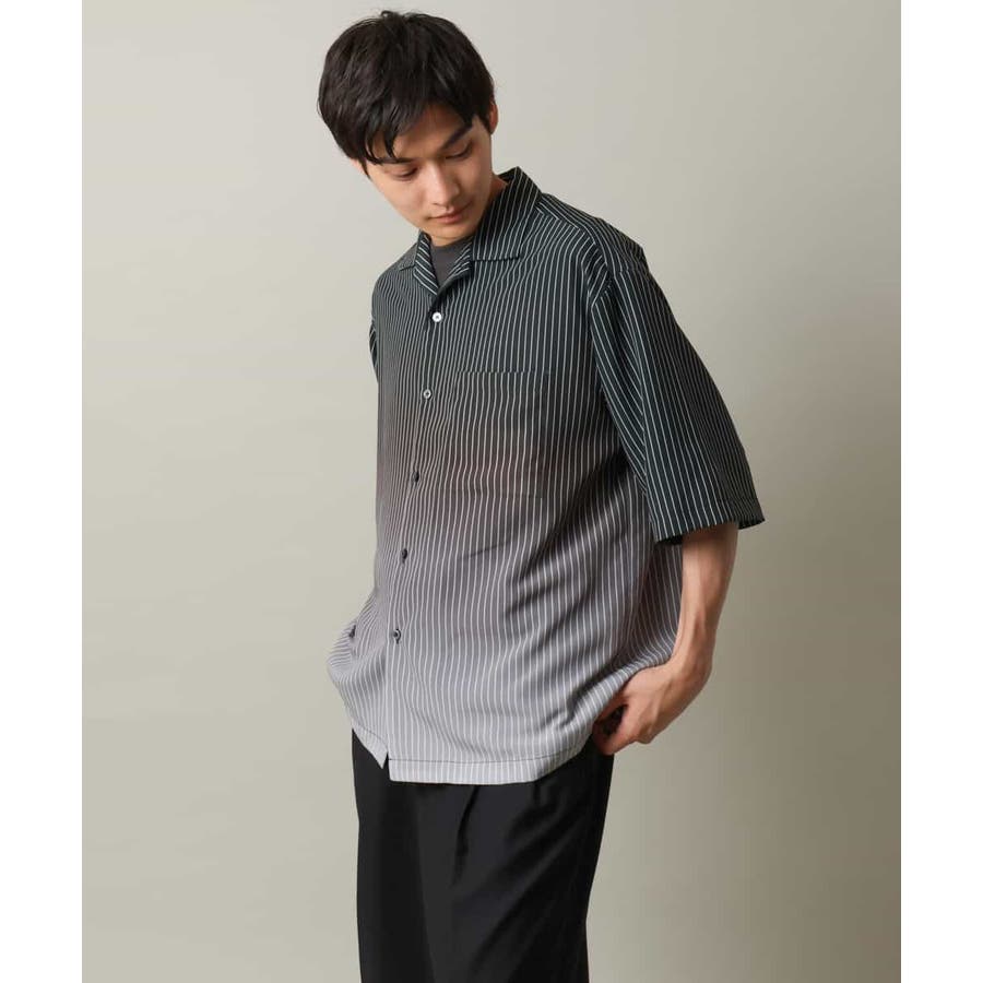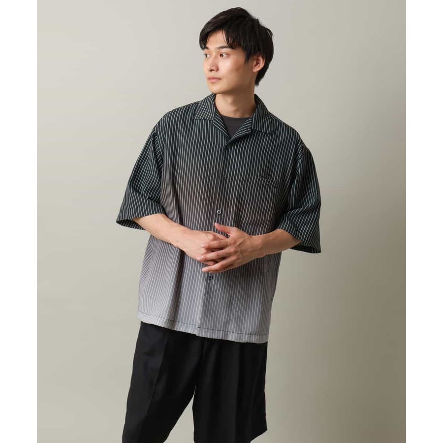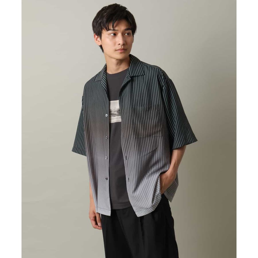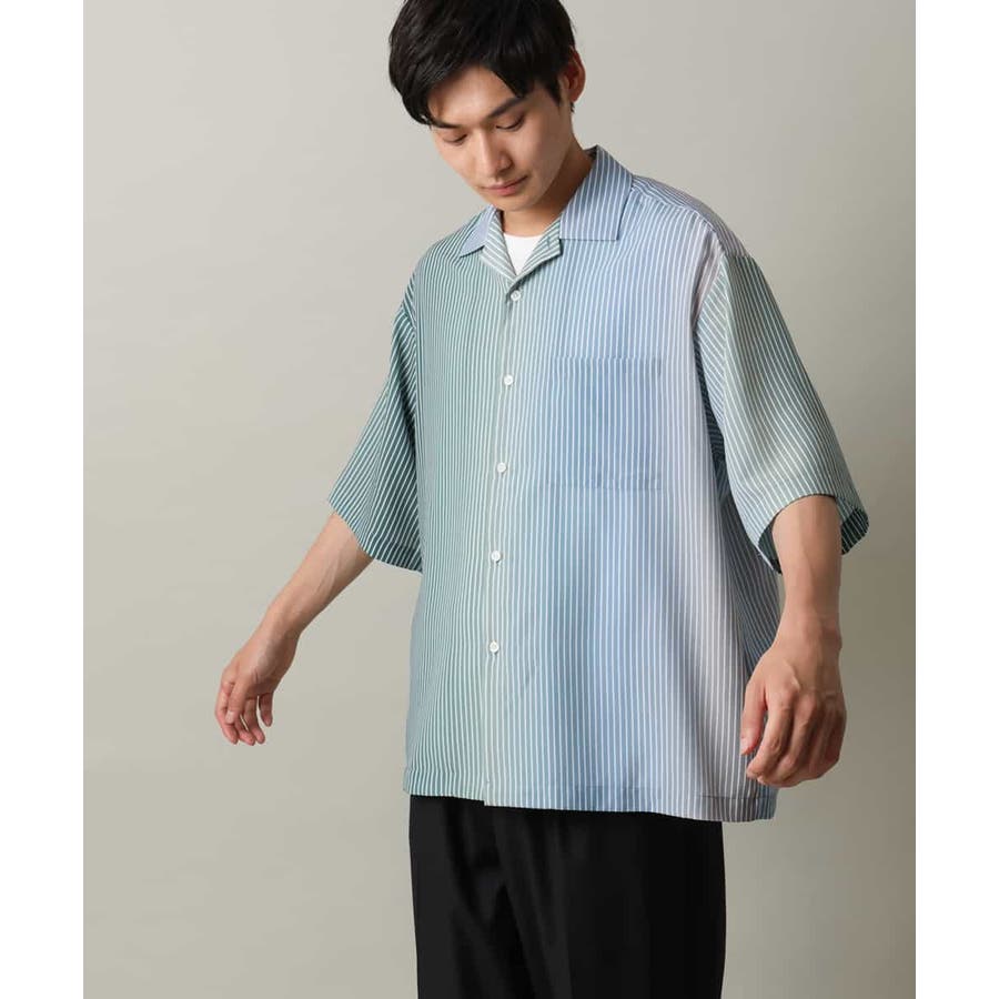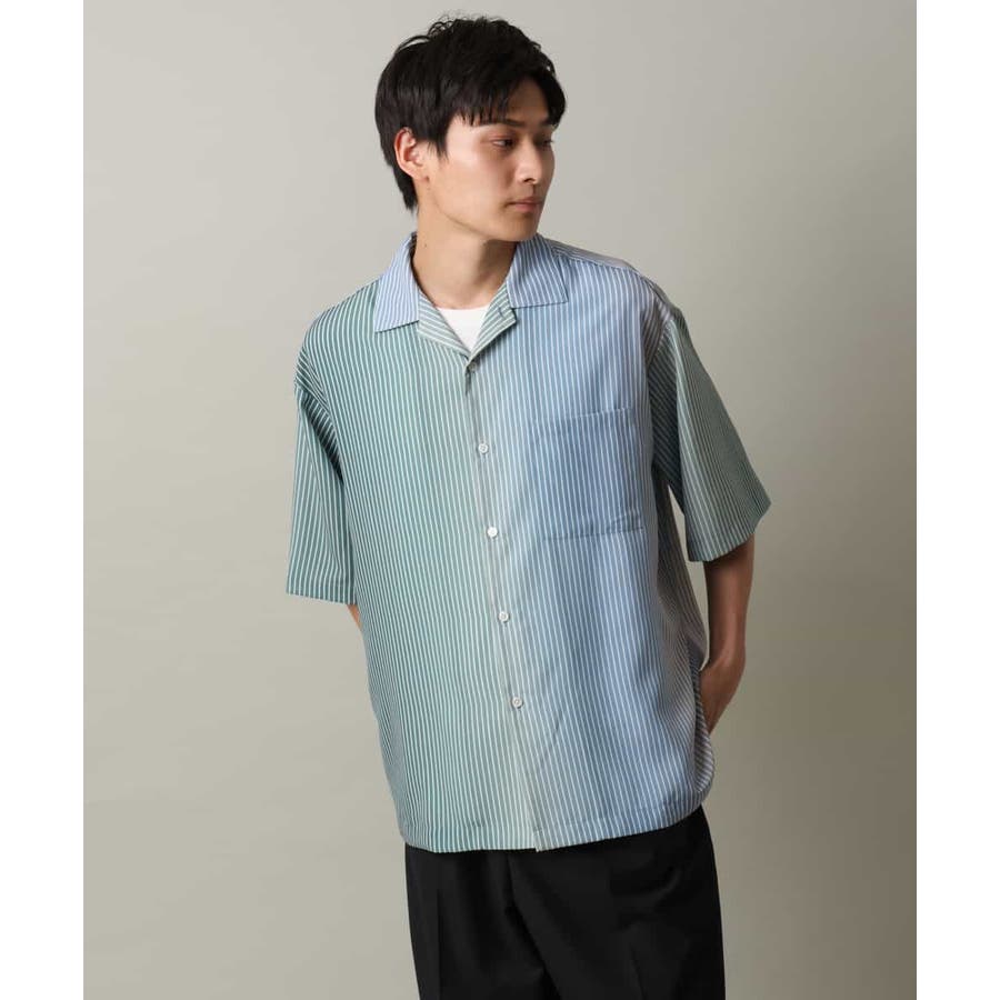 【接触冷感】グラデーションストライプオープンカラーシャツ