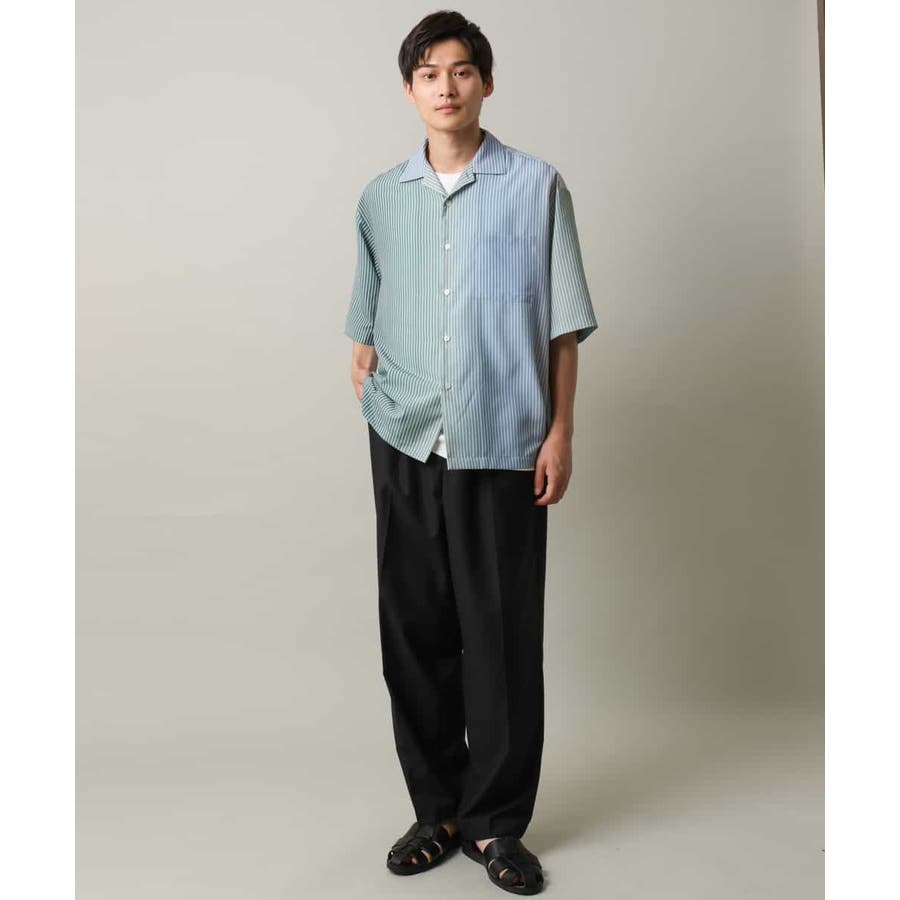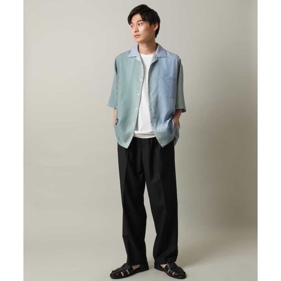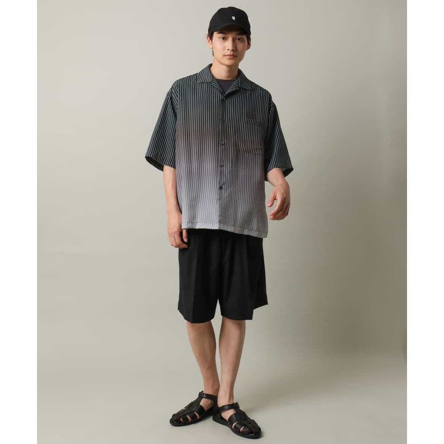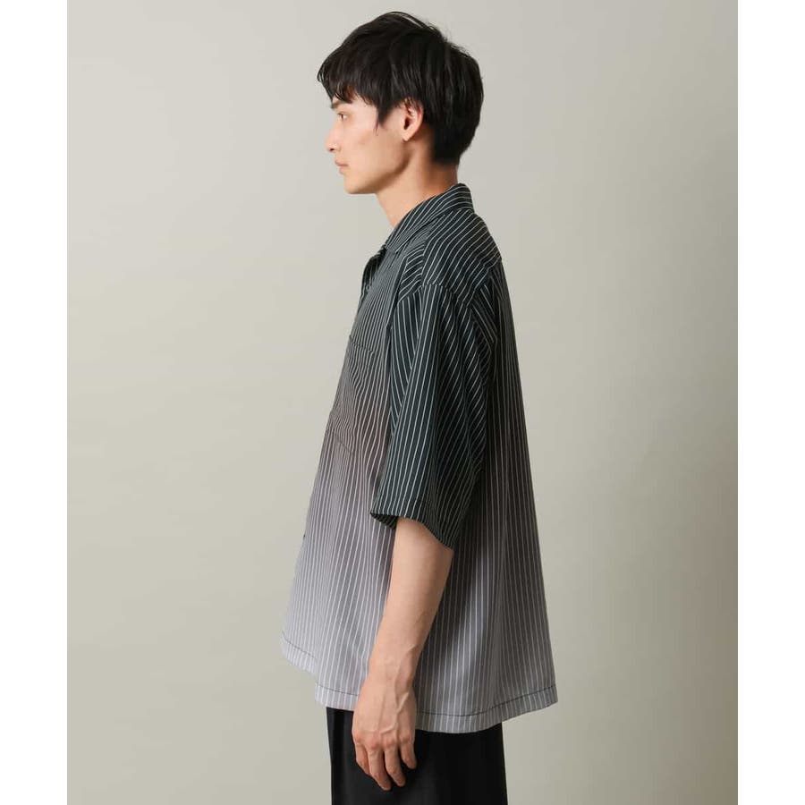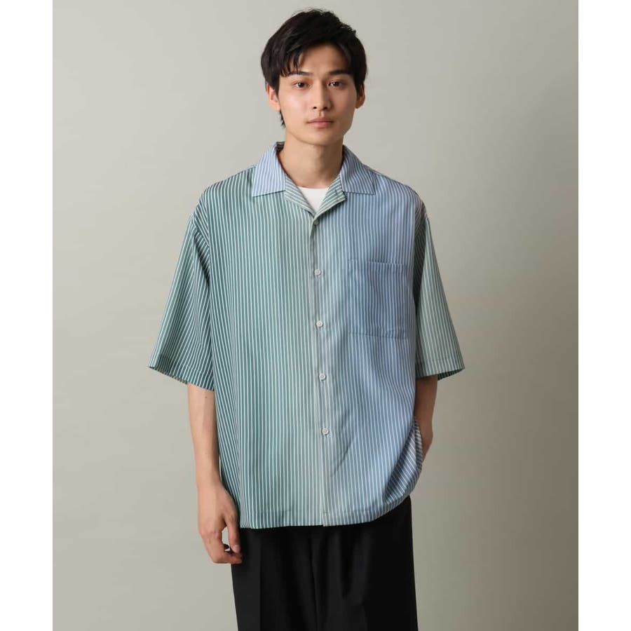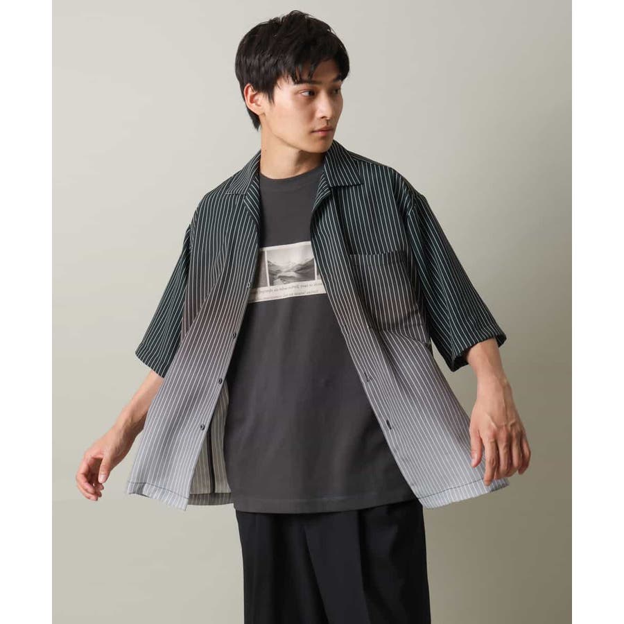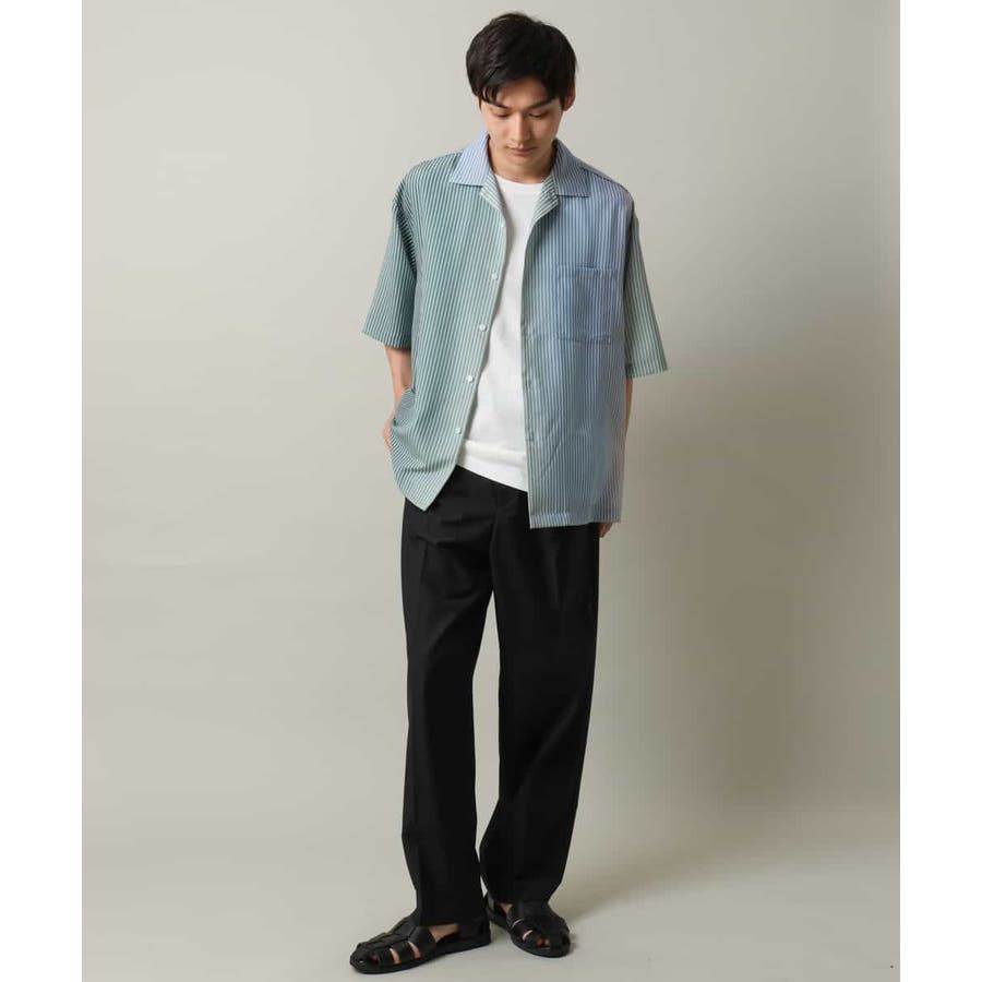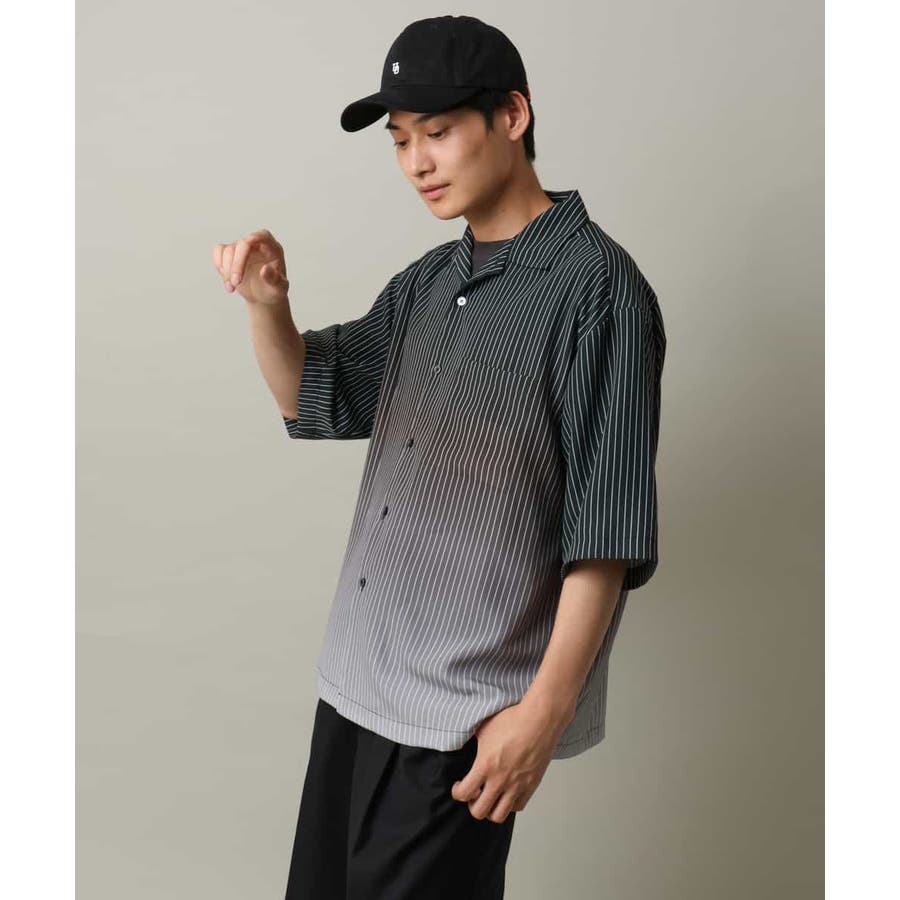 【接触冷感】グラデーションストライプオープンカラーシャツ