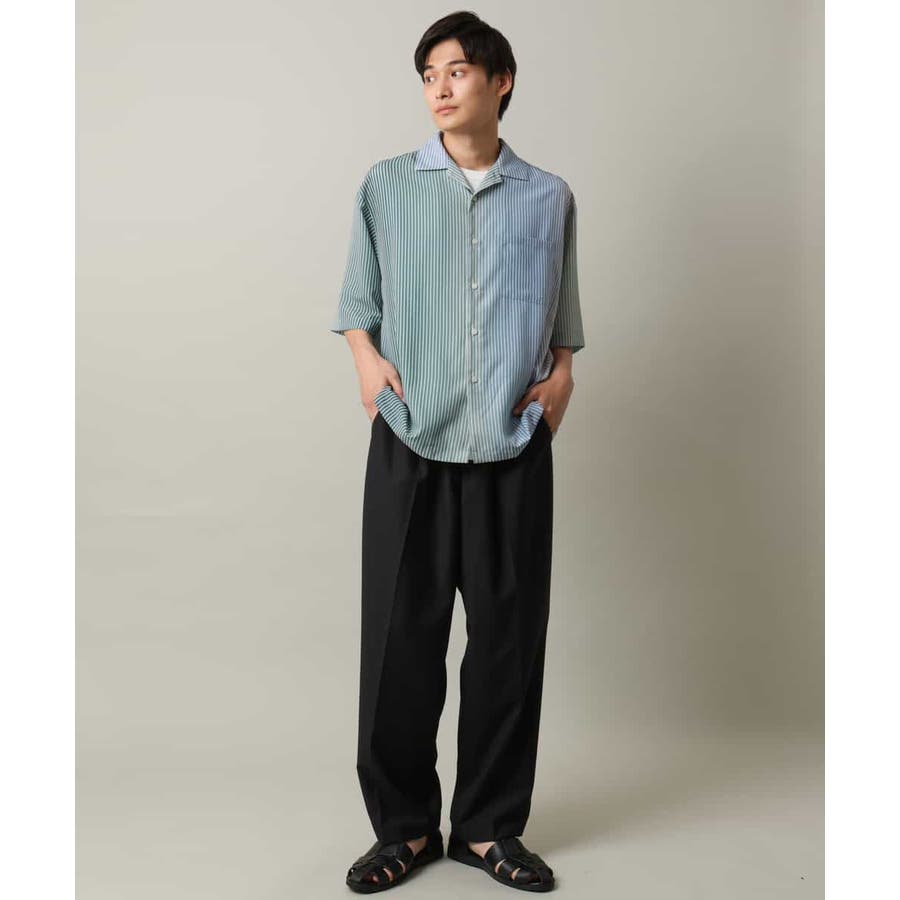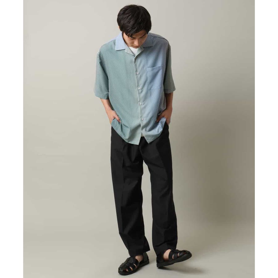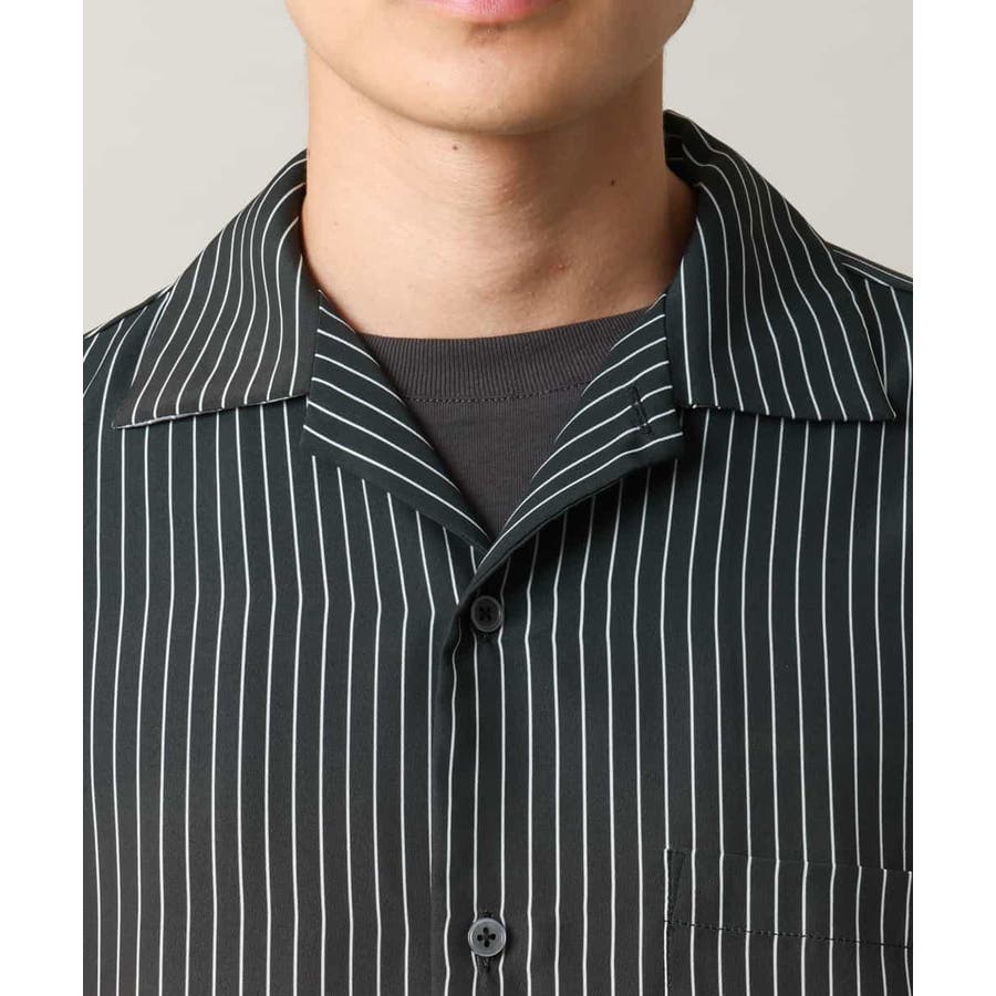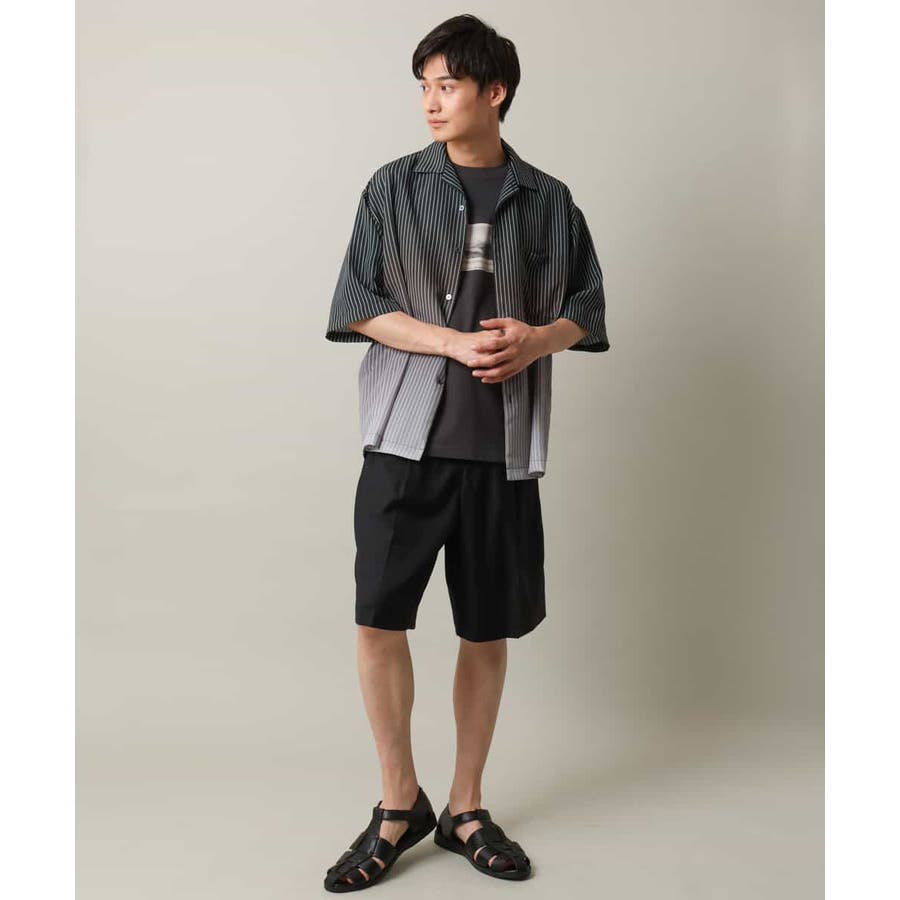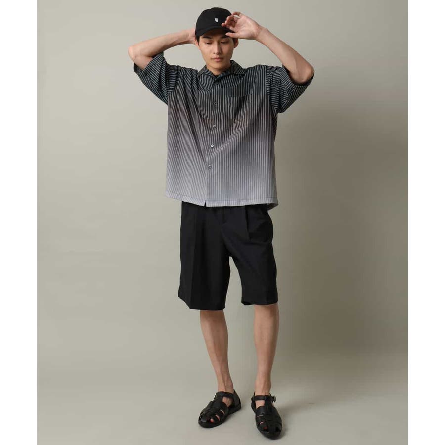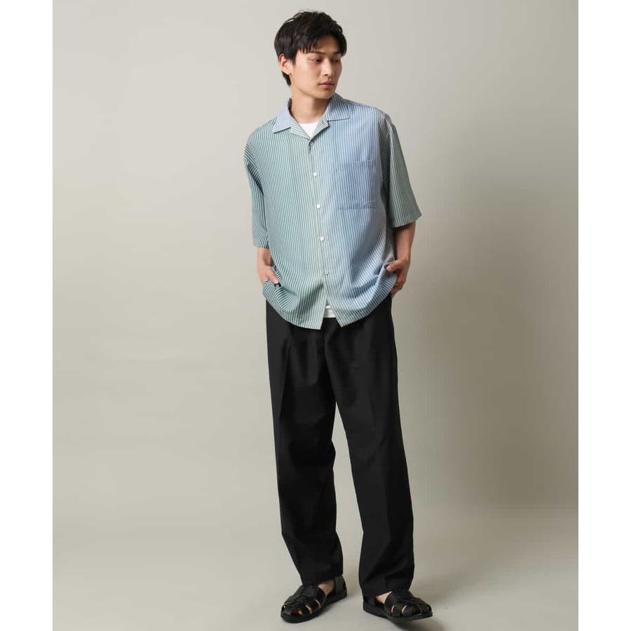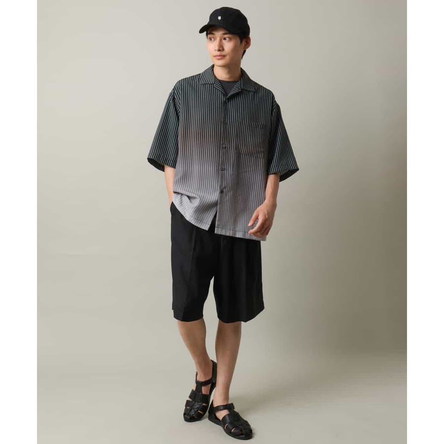 【接触冷感】グラデーションストライプオープンカラーシャツ