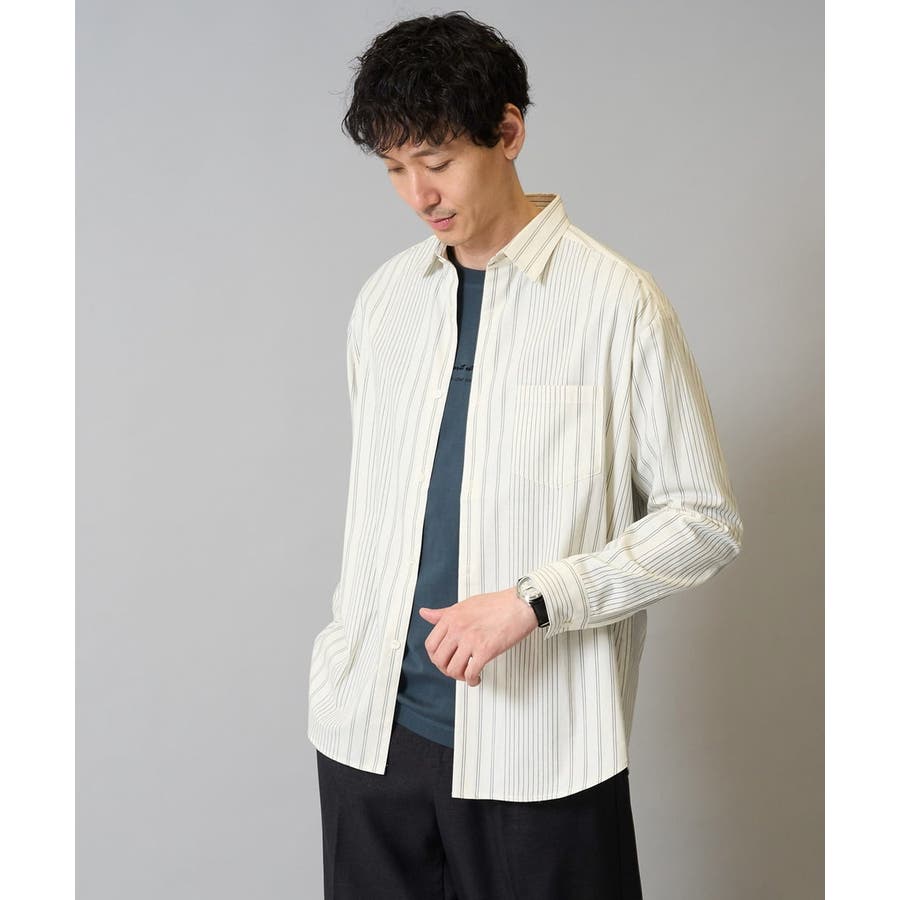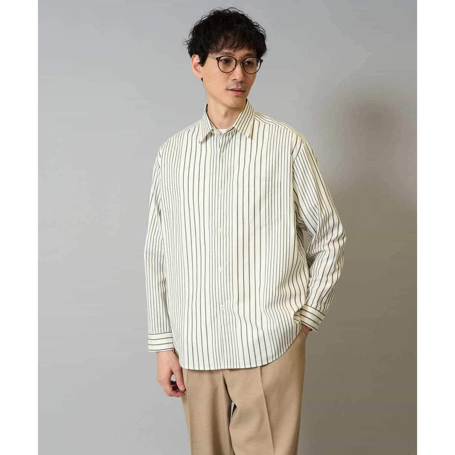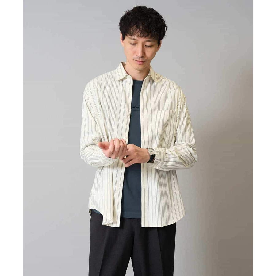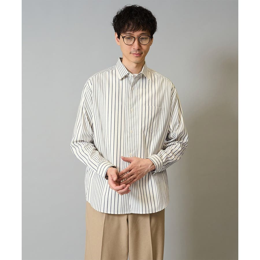 【洗濯機で洗える】ランダムストライプツイルワイドシルエットシャツ