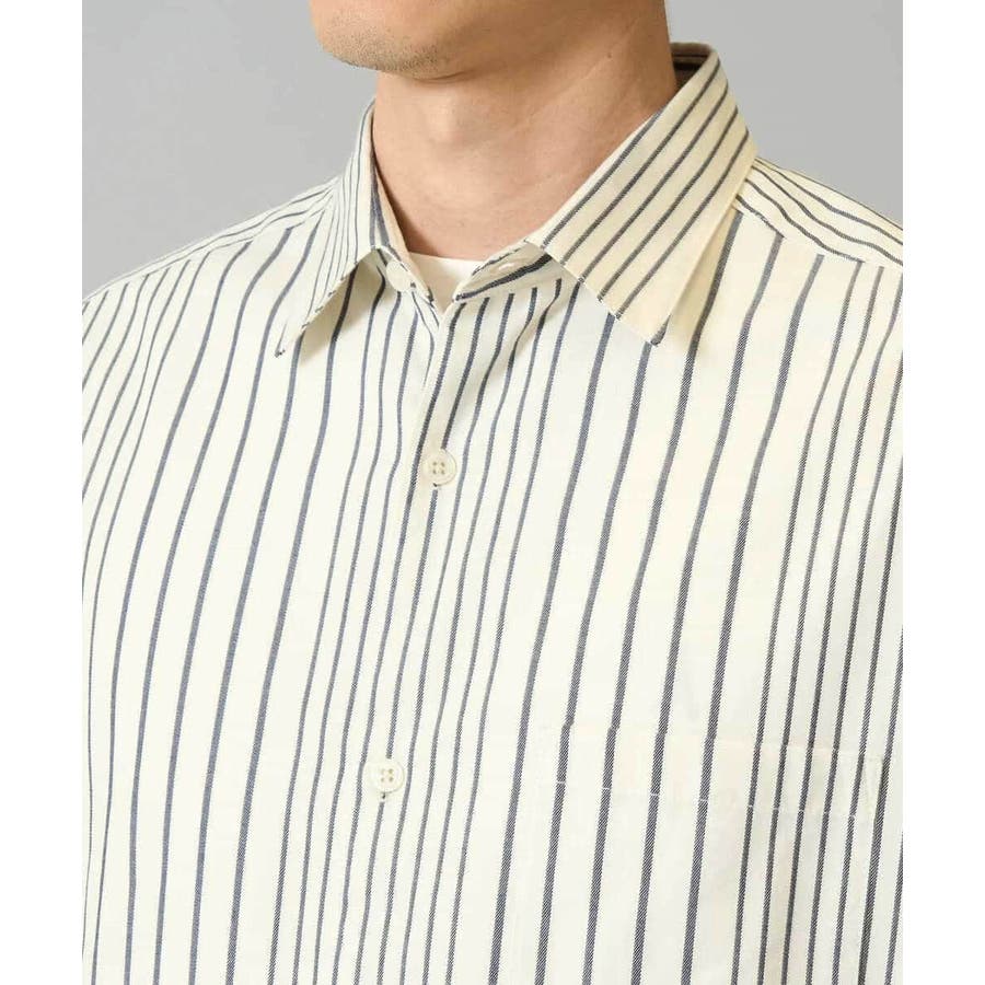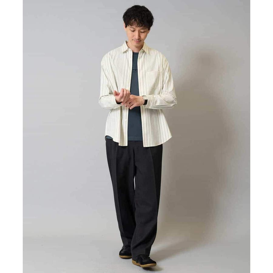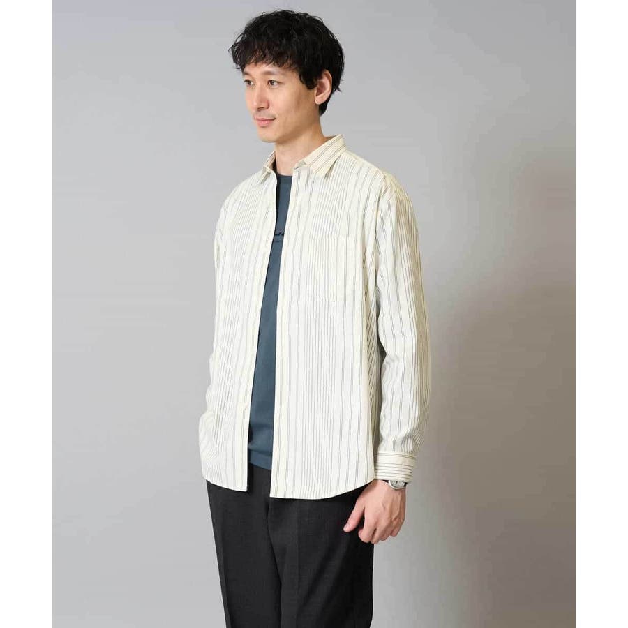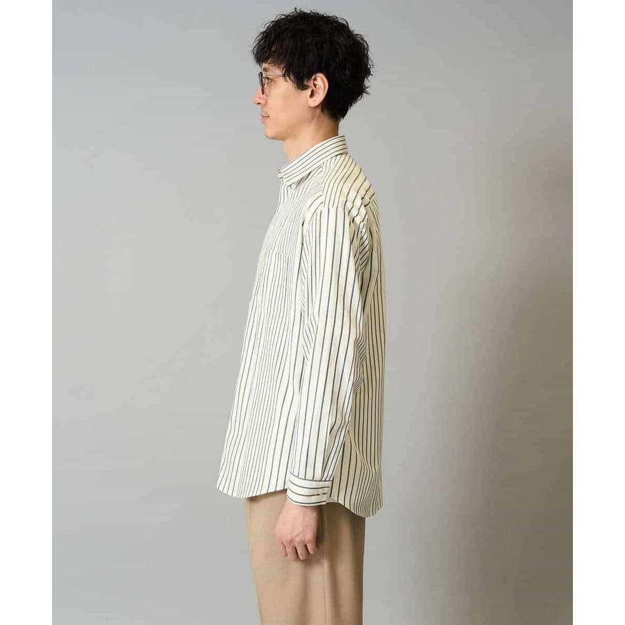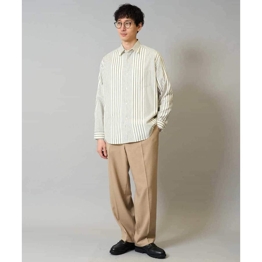 【洗濯機で洗える】ランダムストライプツイルワイドシルエットシャツ