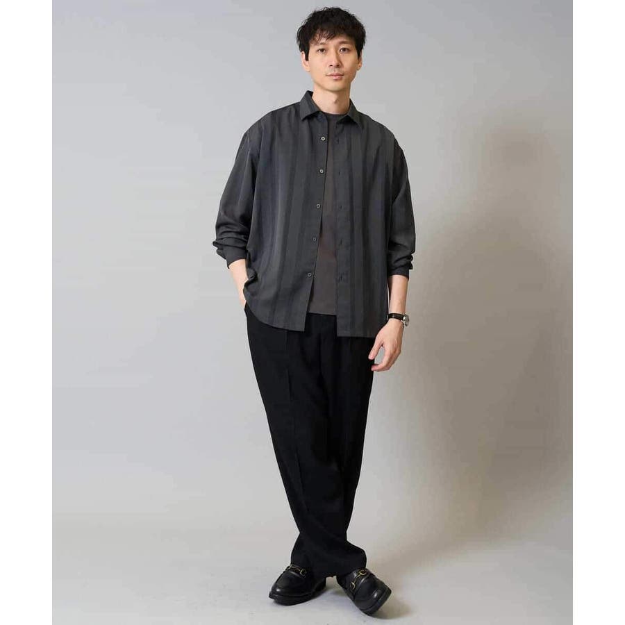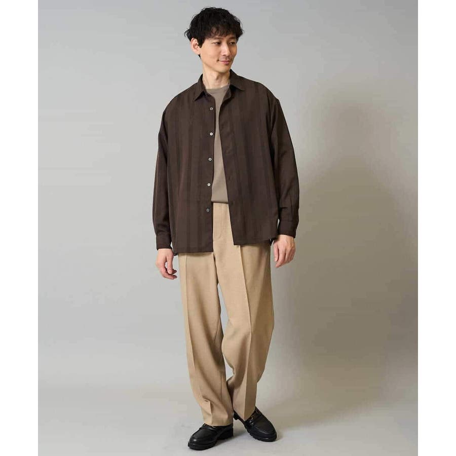 【イージーケア/速乾】カラミストライプワイドシルエットシャツ【洗濯機で洗える】