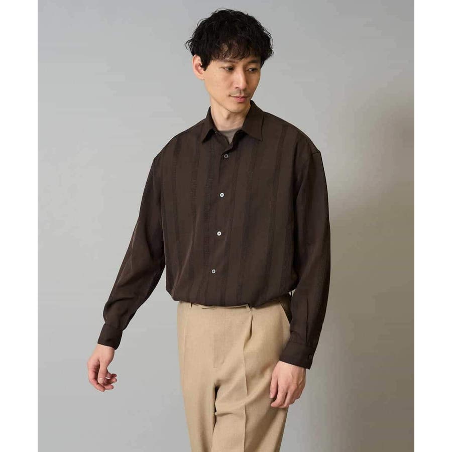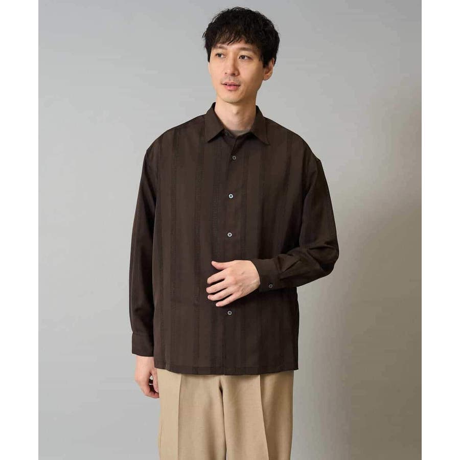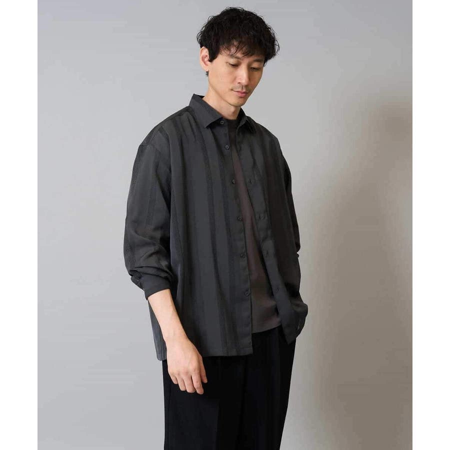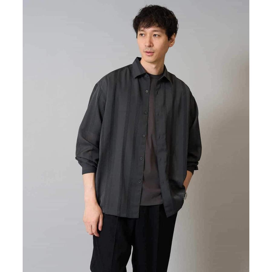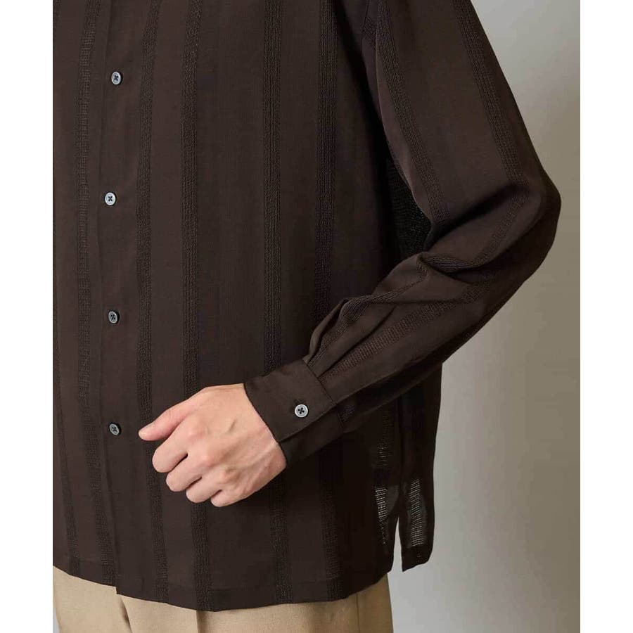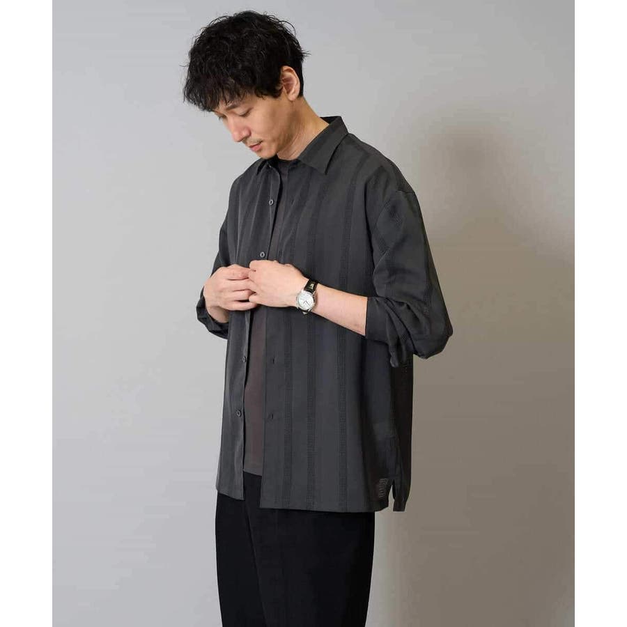カラミ織り素材にランダムストライプを表現したワイドシルエットシャツ◆